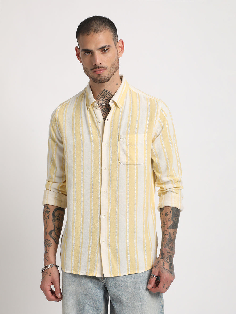 Premium cotton, cotton blends, linen, denim, and performance fabrics are chosen for Indian climate conditions. Breathability, durability, and comfort guide all material selections.