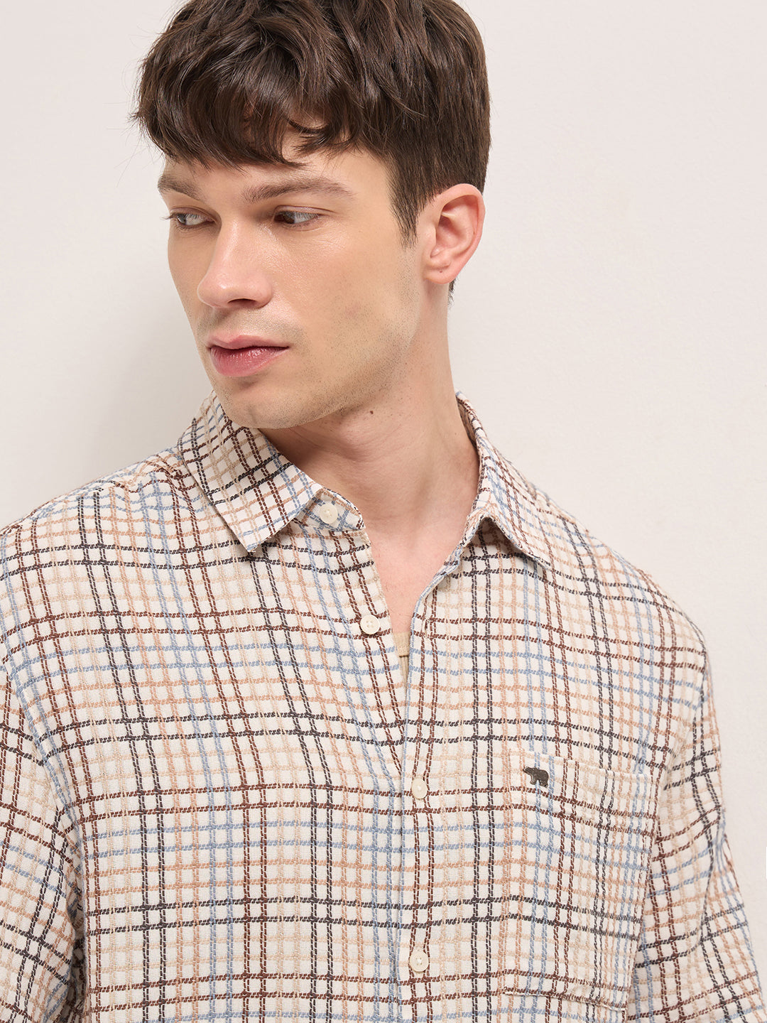 Multicolor Woven Checkered Relaxed Fit Cotton Casual Shirt