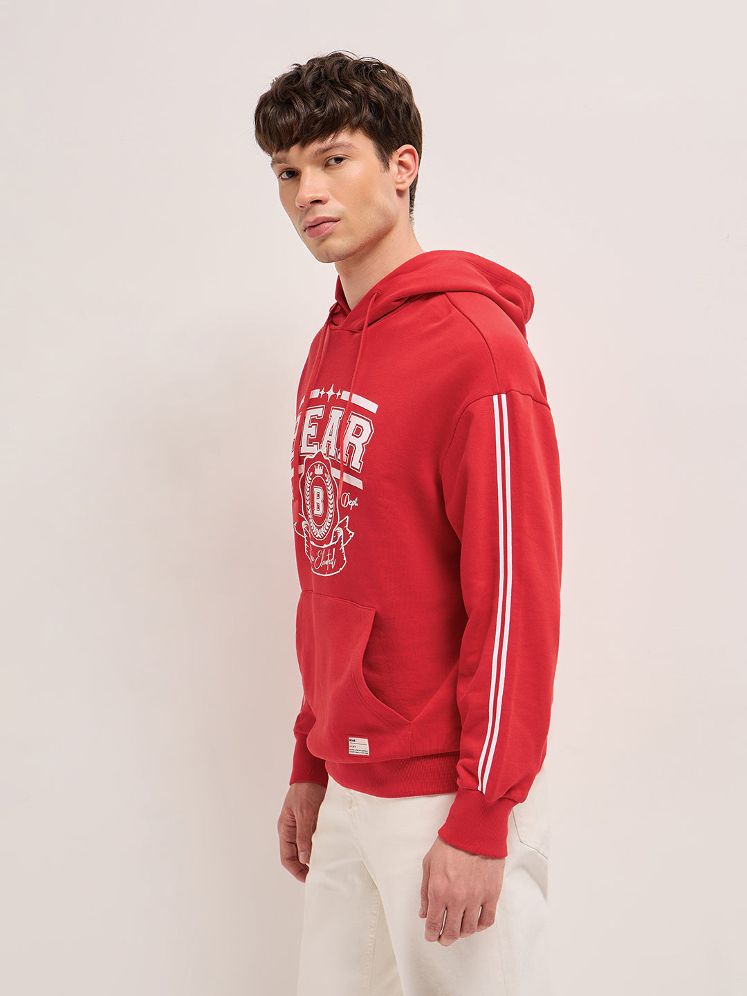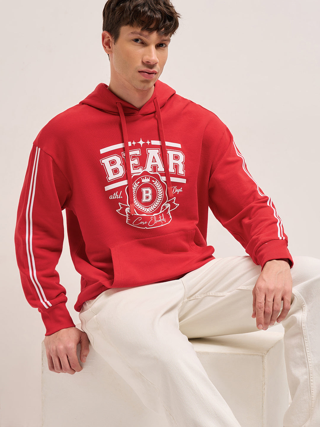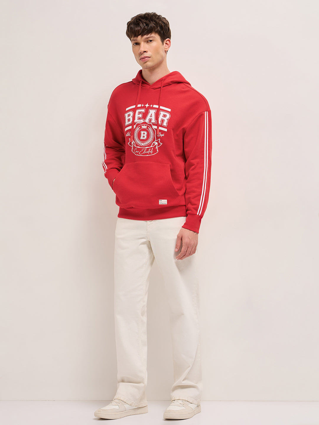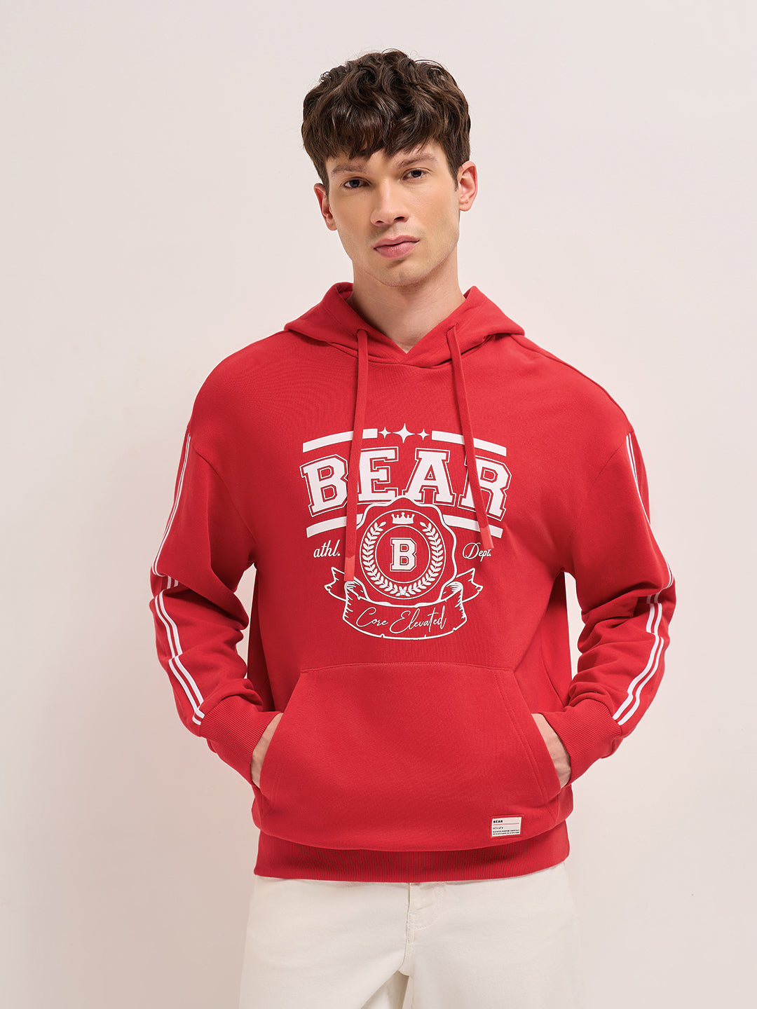 Red Relaxed Fit Hoodie with Bold Athletic Crest and BEAR Print