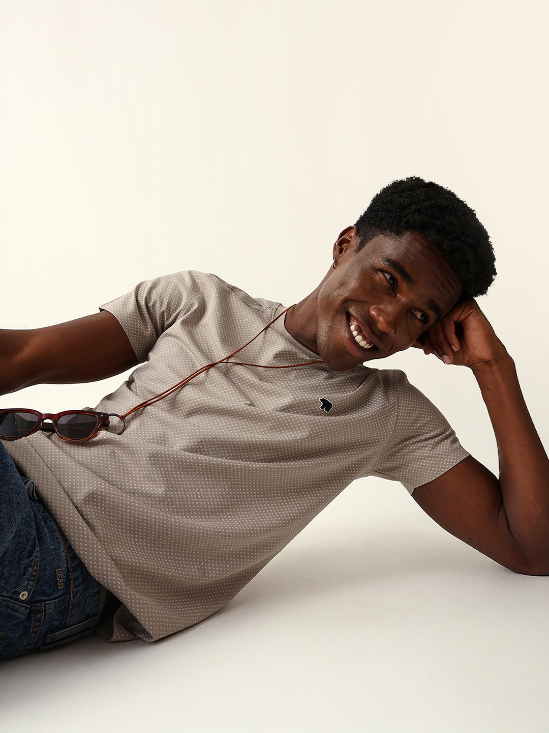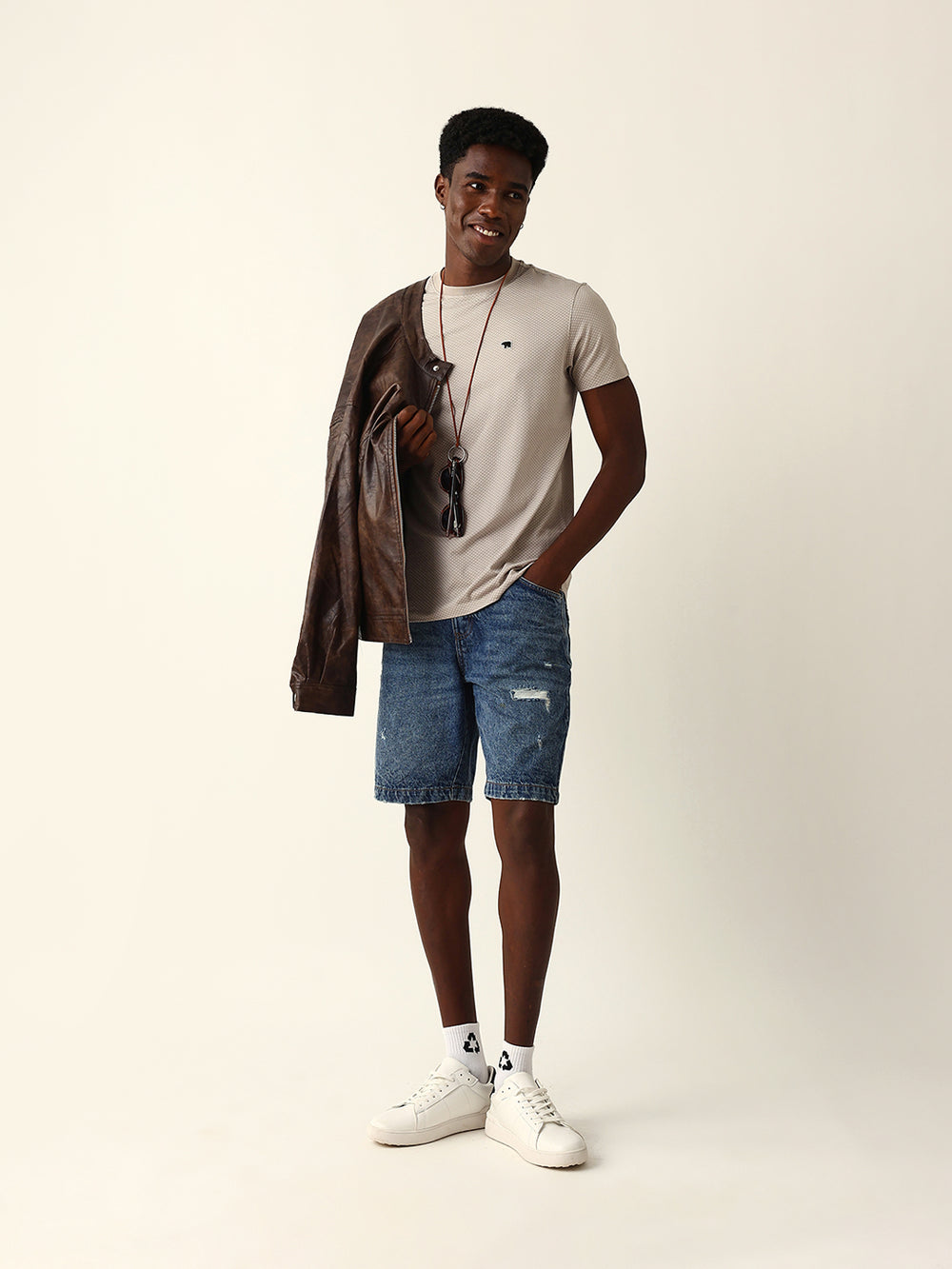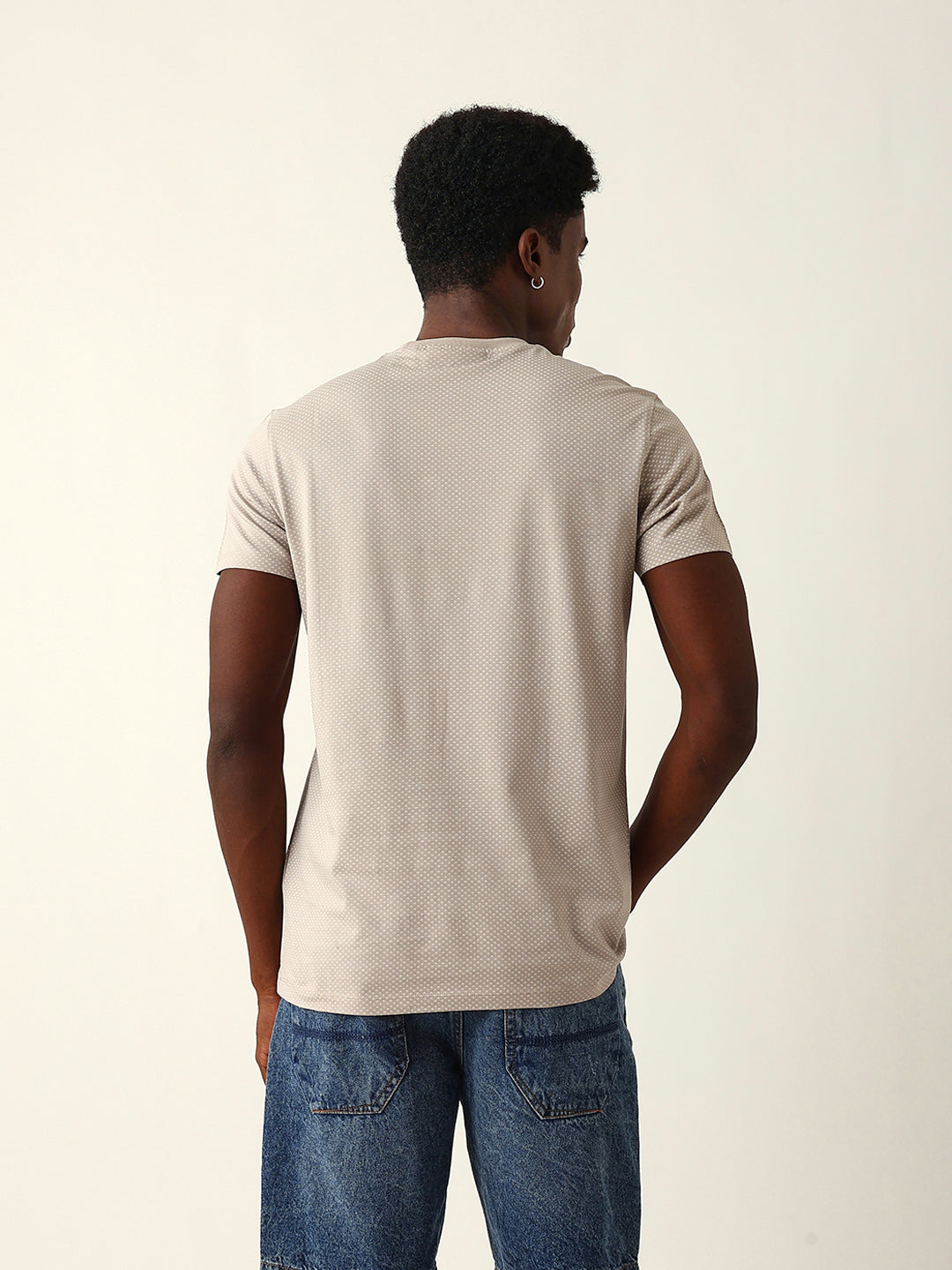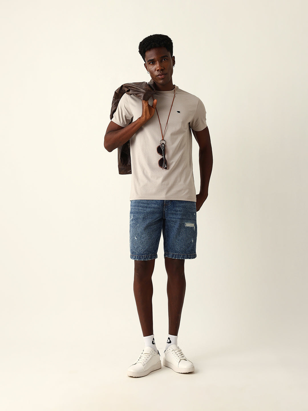 Beige Crew Neck Slim Fit T-Shirt with Bear Logo Embroidery