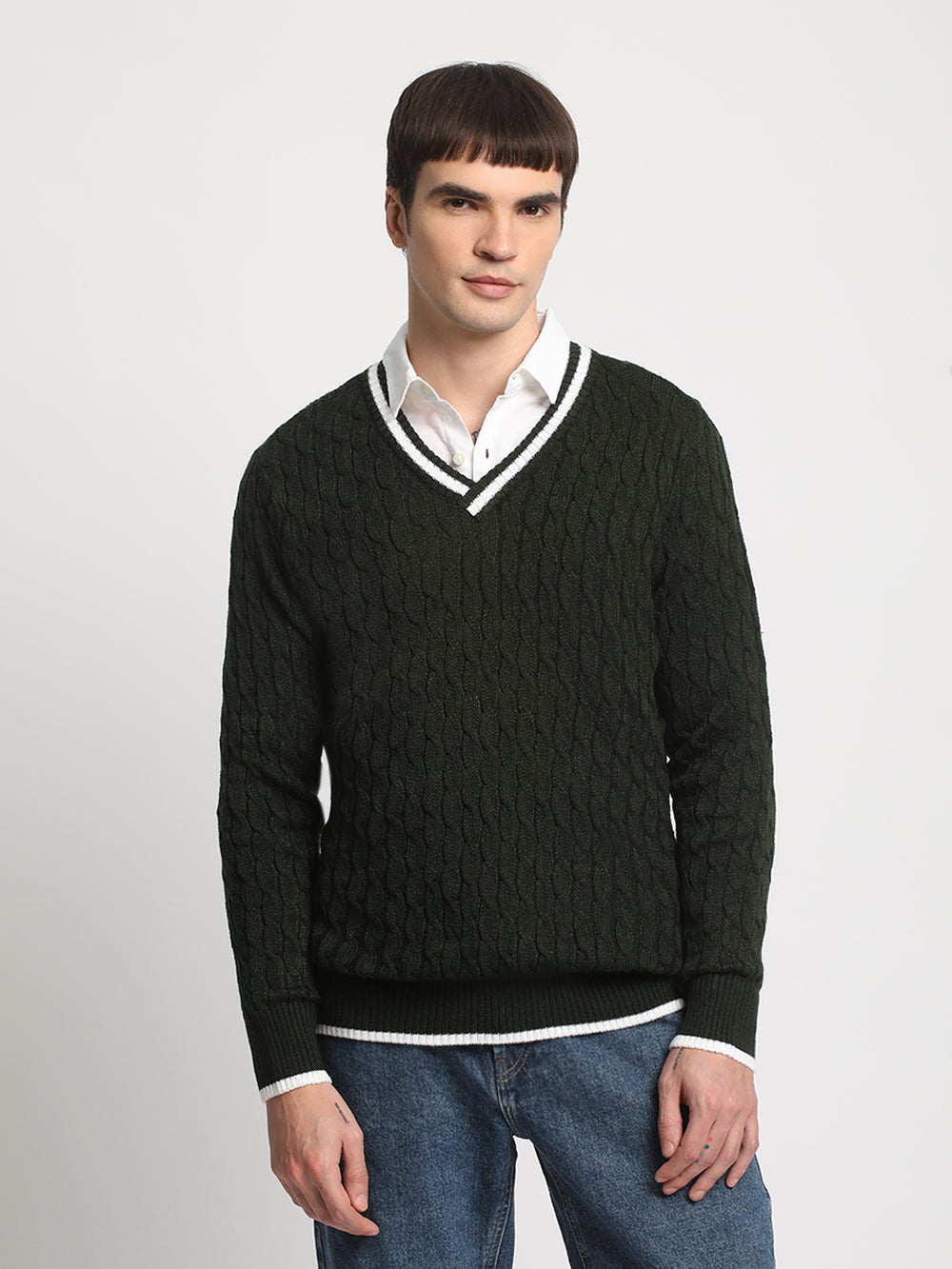 Shop Men Green Self-Design Relaxed Fit Pullovers Online