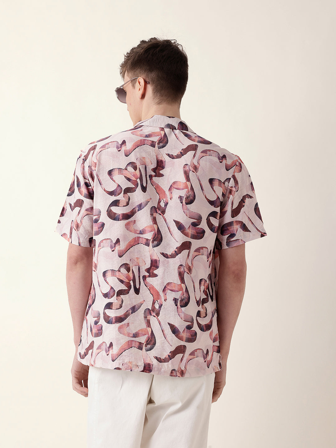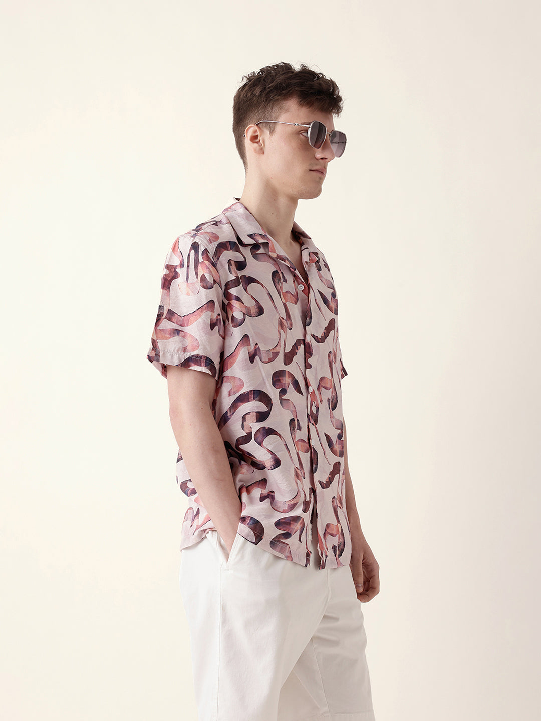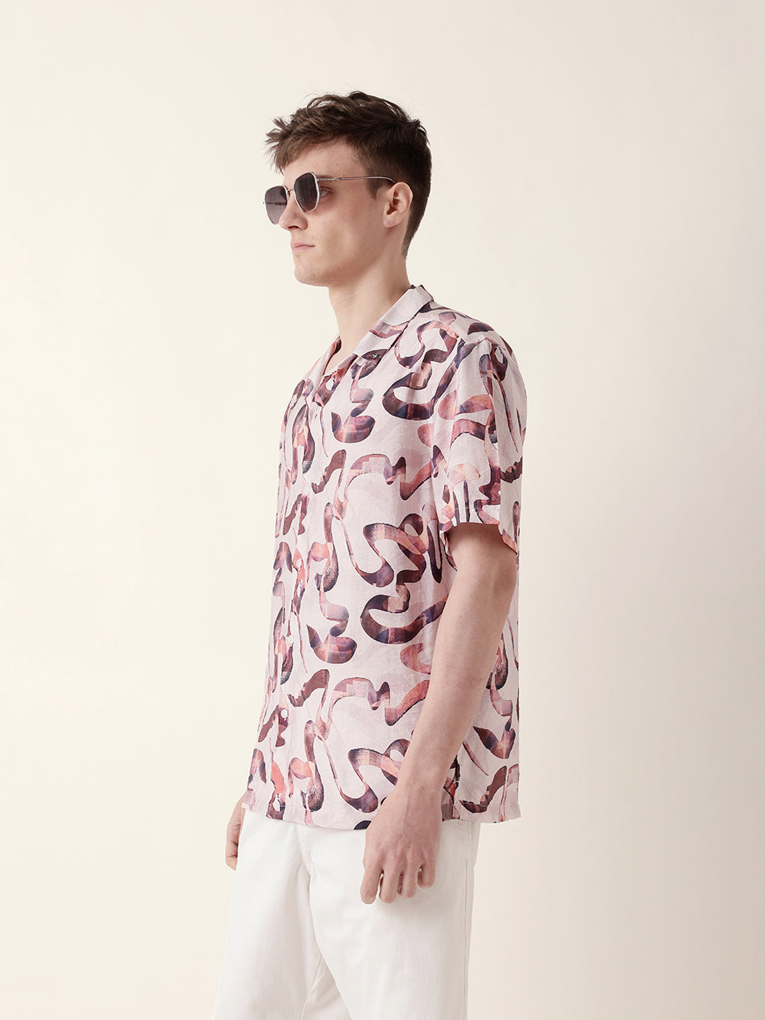 Shop Multicolor Abstract Scribble Print Relaxed Fit Cuban Collar Casual Shirt Online.