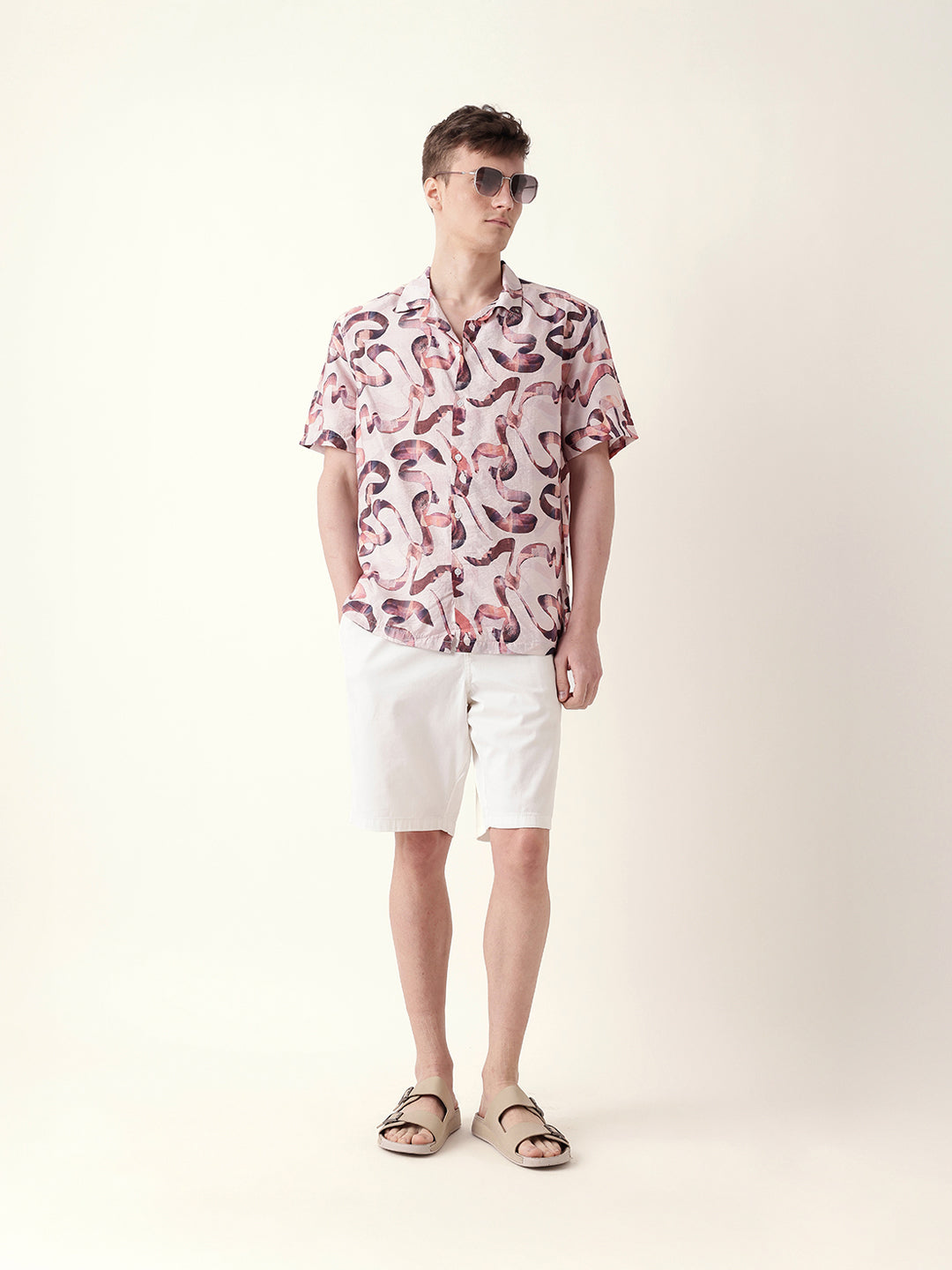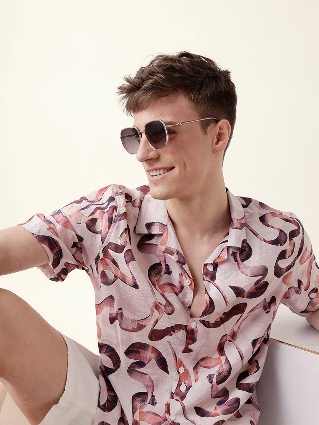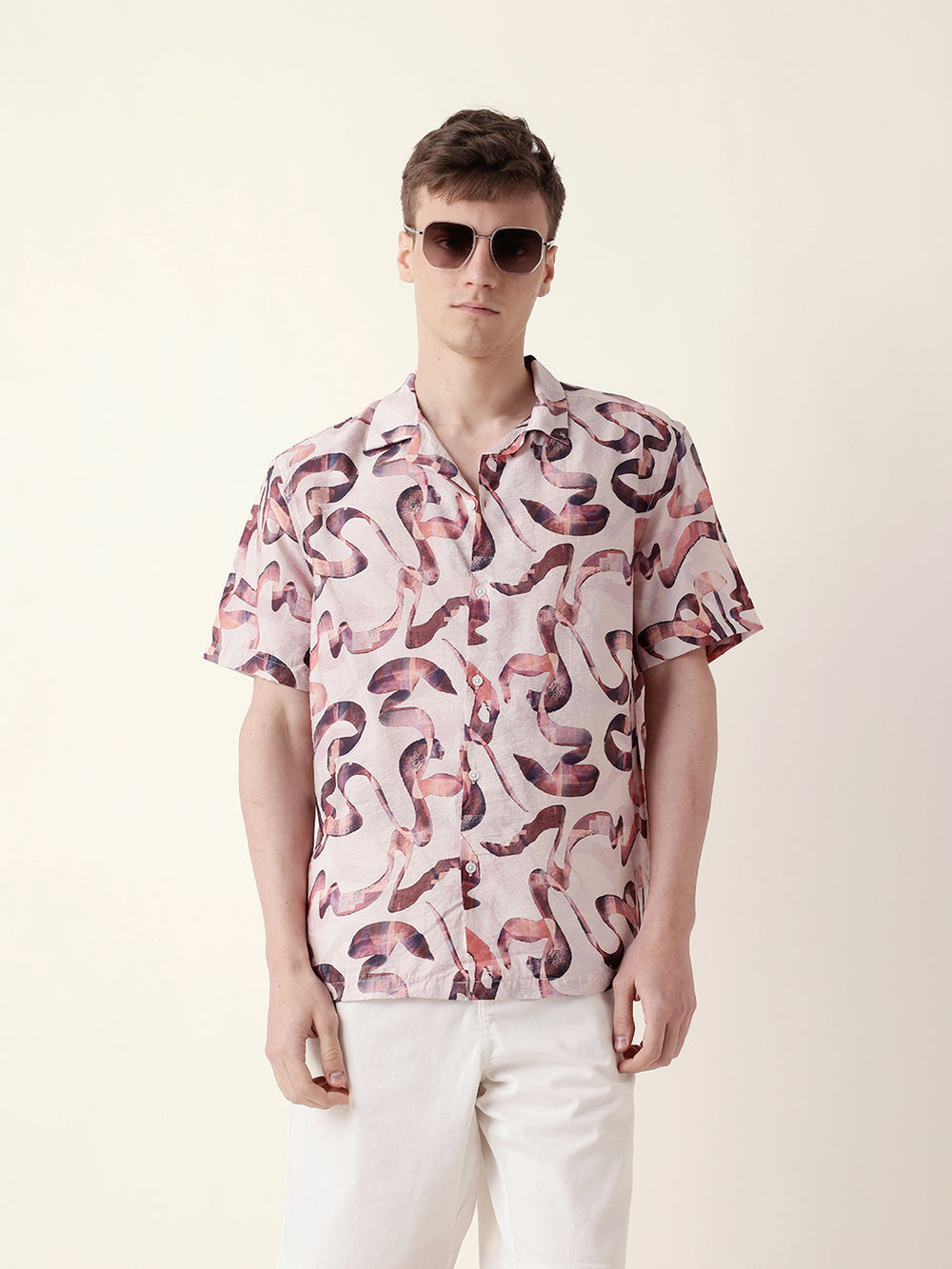 Shop Multicolor Abstract Scribble Print Relaxed Fit Cuban Collar Casual Shirt Online.