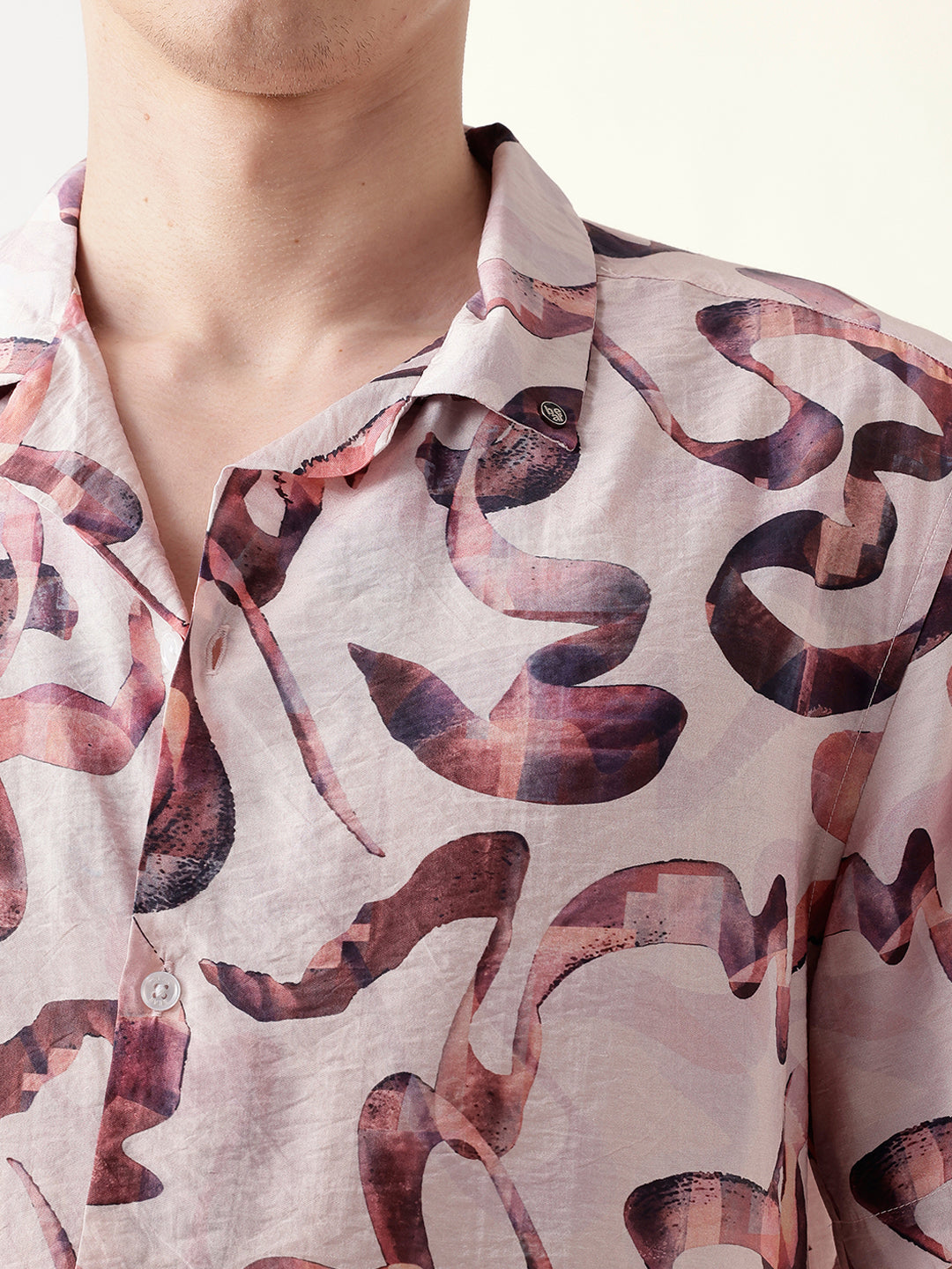Multicolor Abstract Scribble Print Relaxed Fit Cuban Collar Casual Shirt