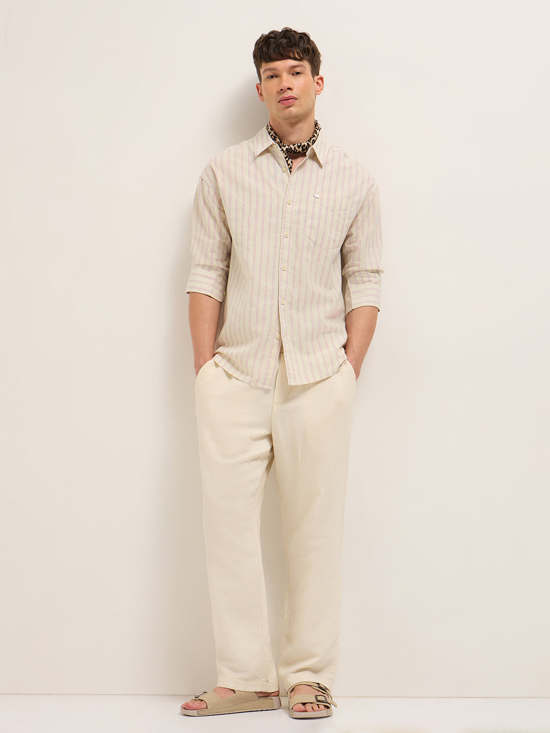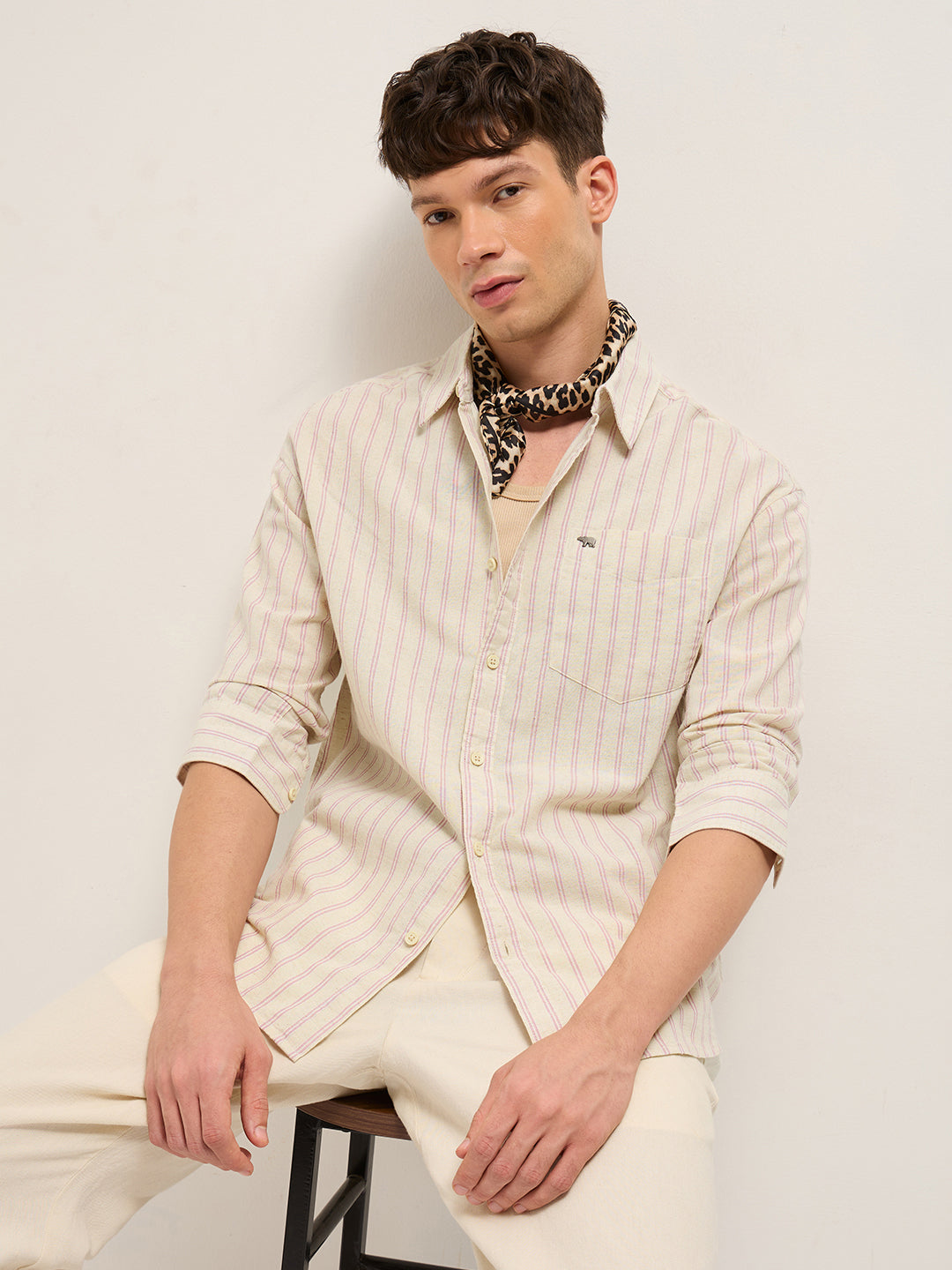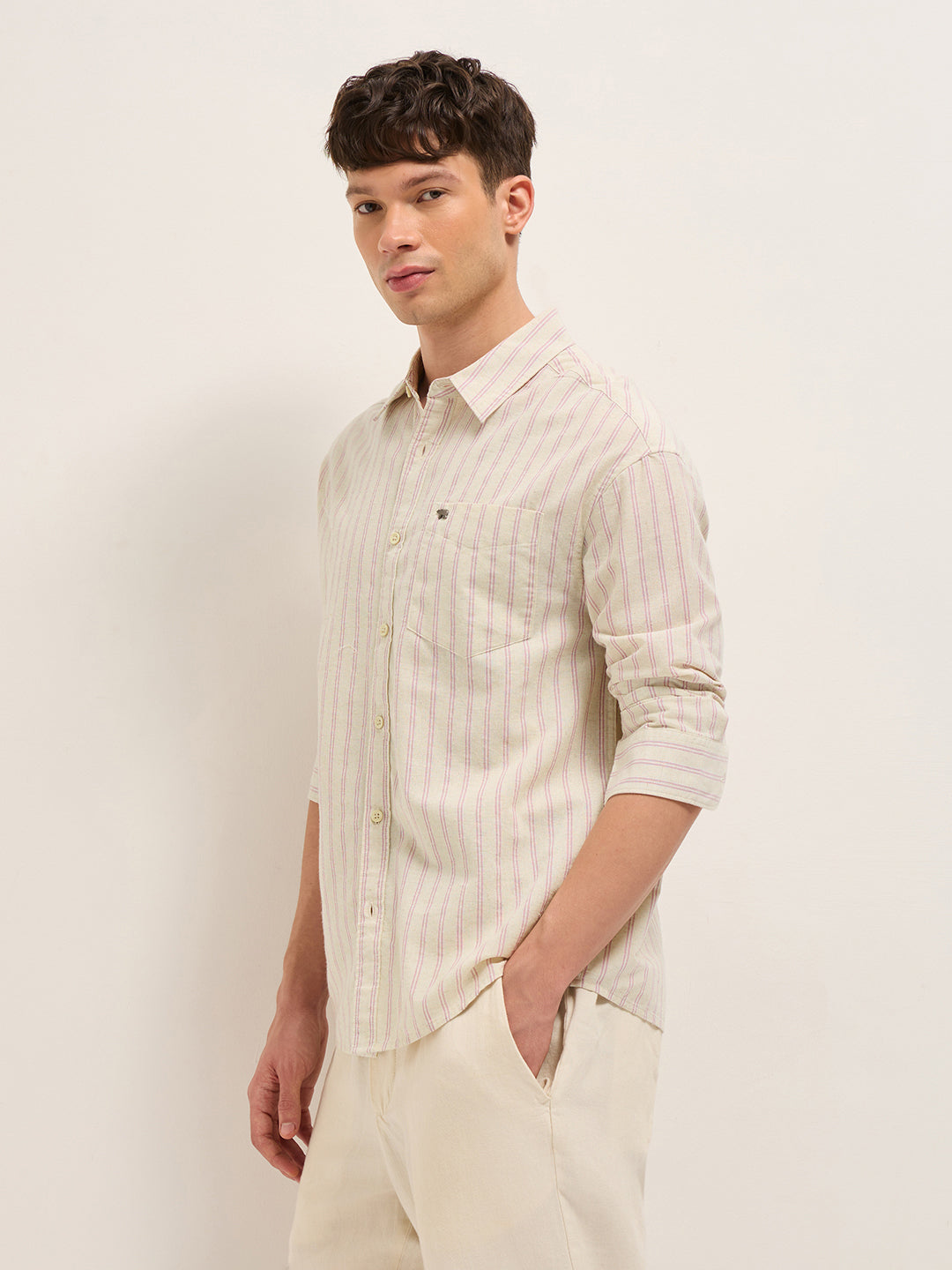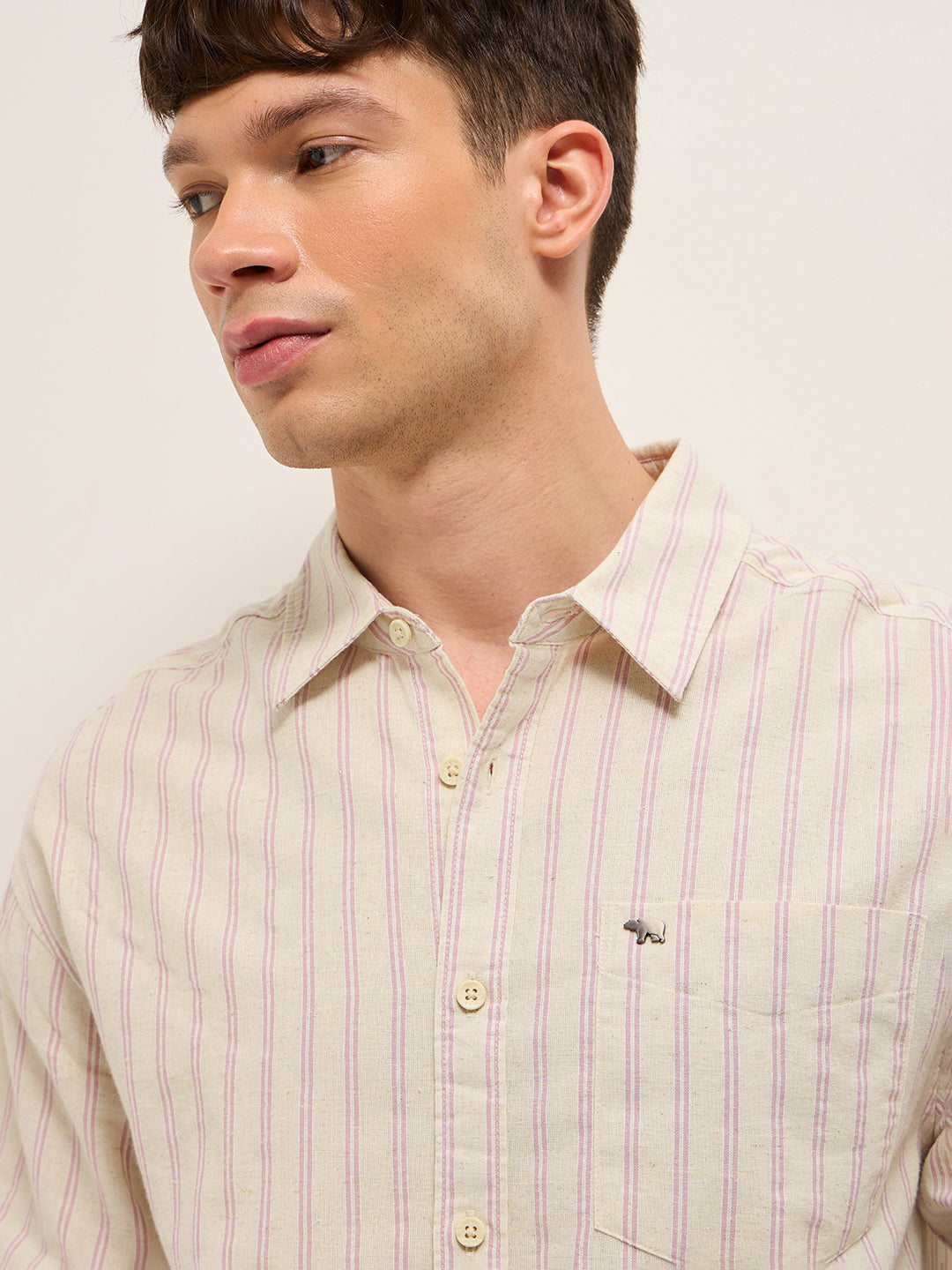 Pink Vertical Stripes Relaxed Fit Casual Shirt