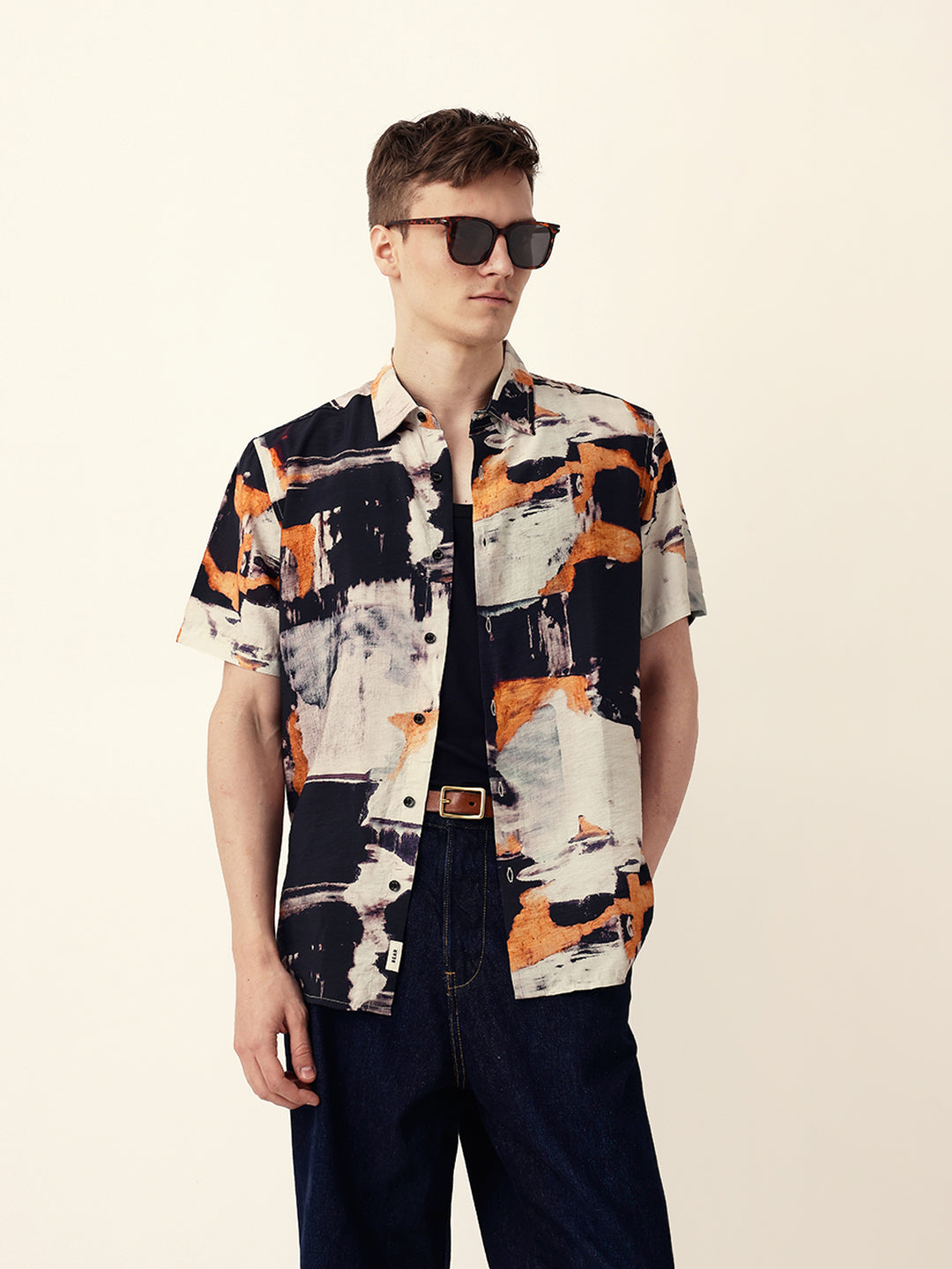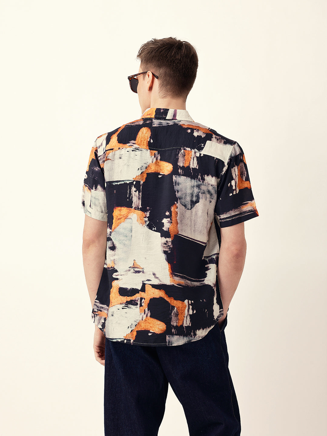 Shop Multicolor Artistic Brushstroke Printed Regular Fit Casual Shirt Online.