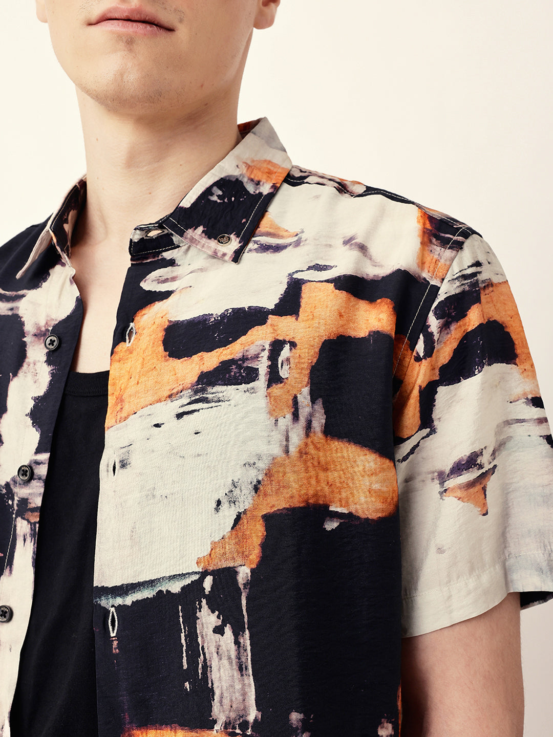 Multicolor Artistic Brushstroke Printed Regular Fit Casual Shirt