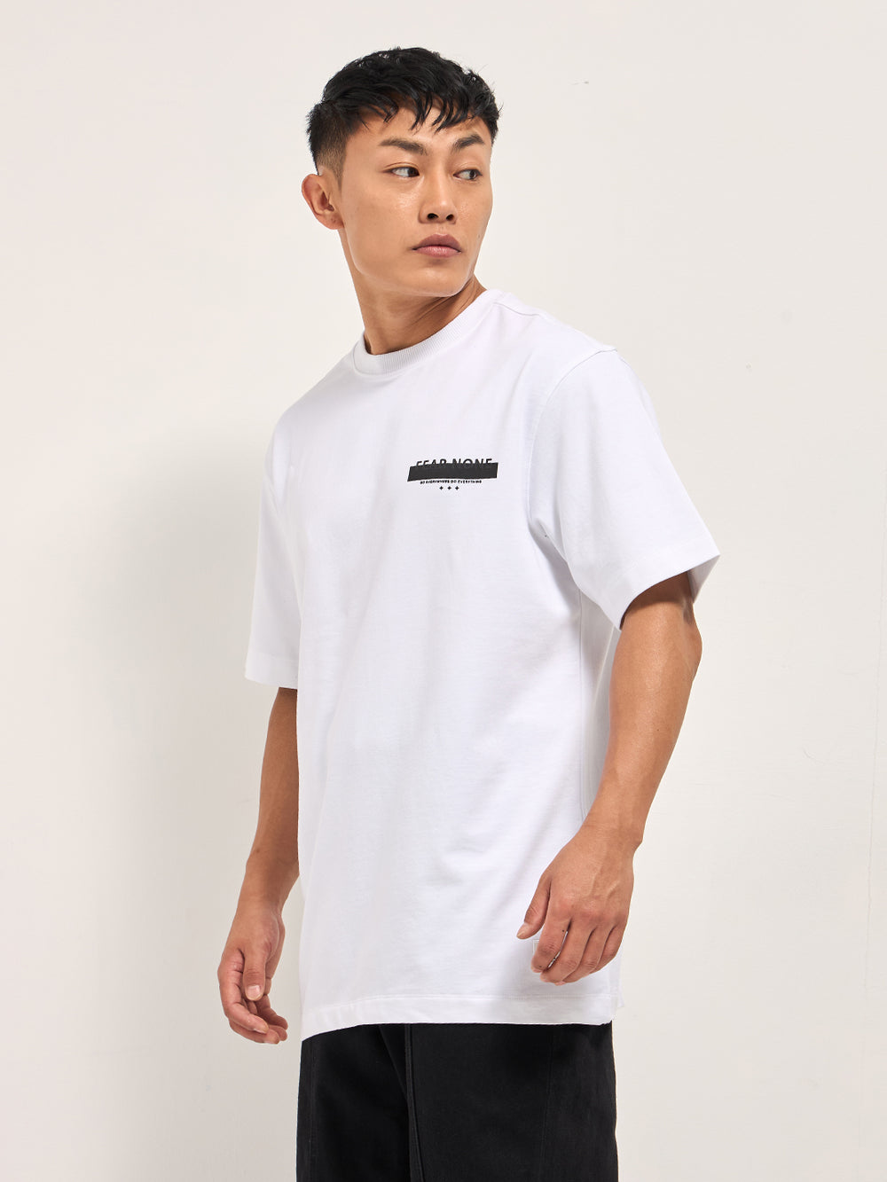 White Oversize T-Shirt with Bold “Fear None” Graphic Front & Back Print
