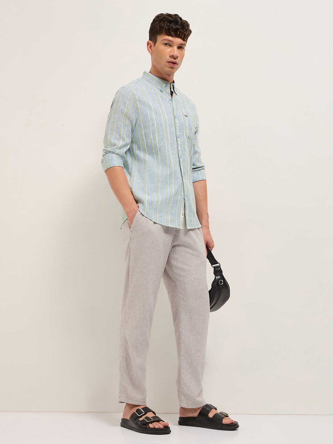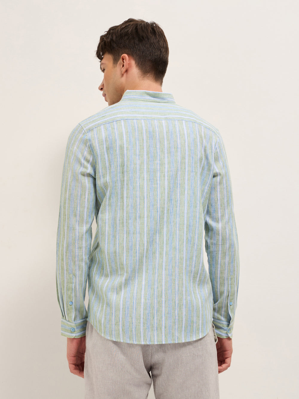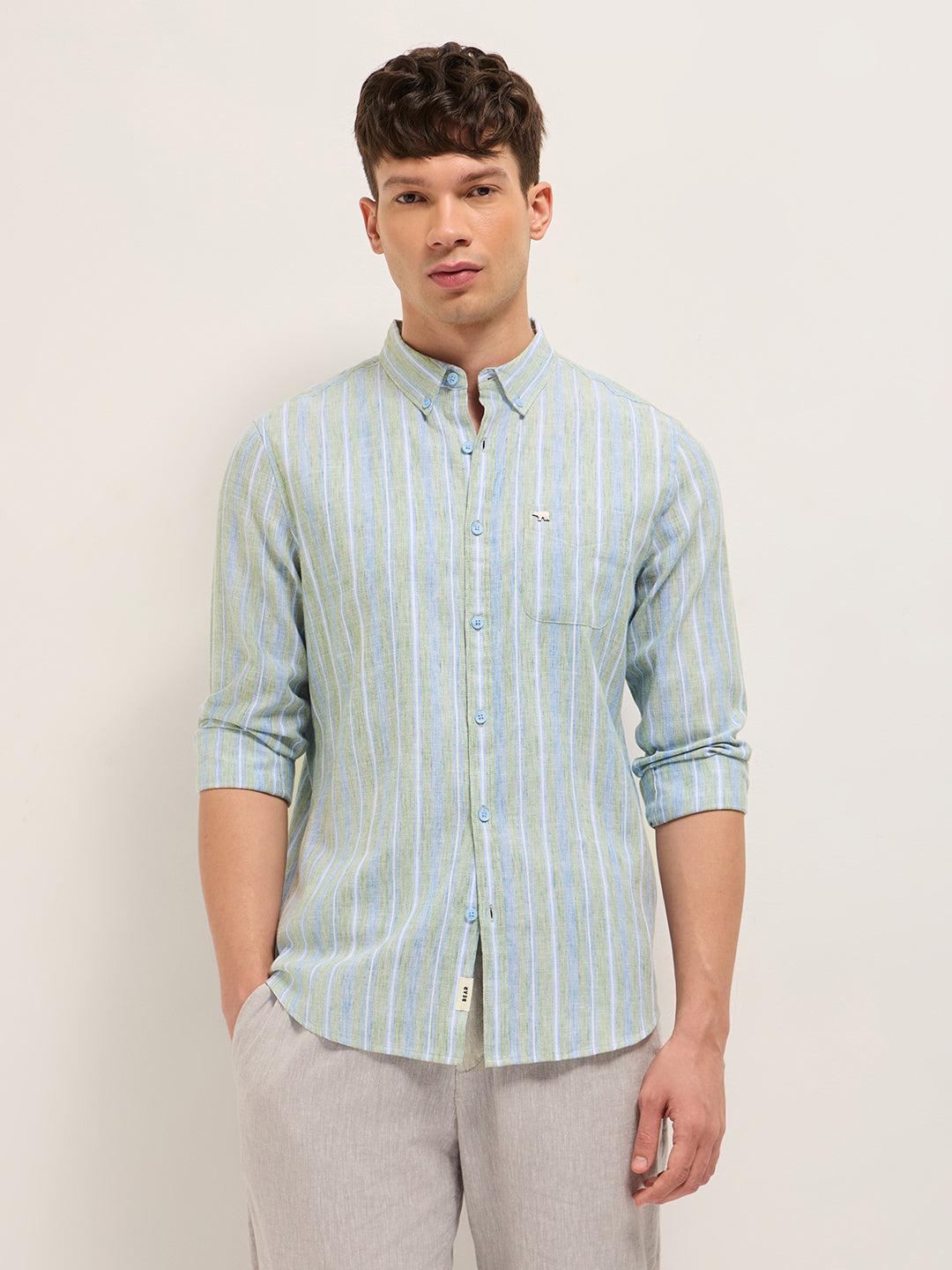Blue & Green Slim Fit Vertical Striped Cotton Casual Shirt