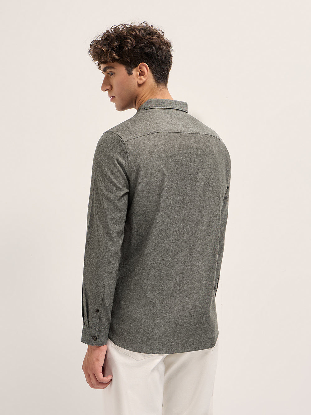 Olive Slim Fit Solid Cotton Blend Casual Shirt