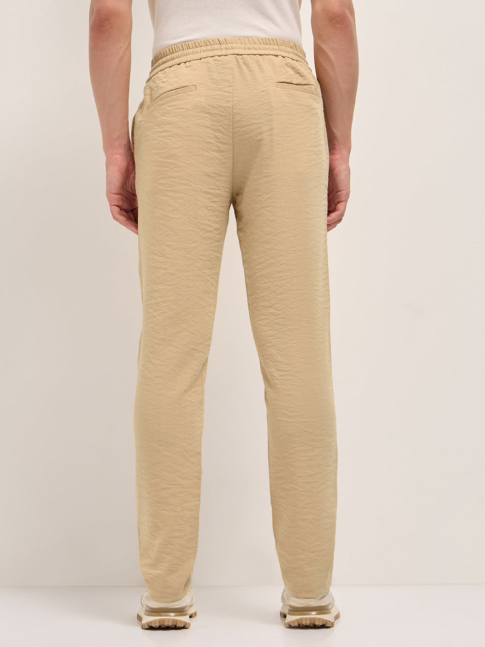 Cream Slim Fit Casual Trouser with Elastic Waistband