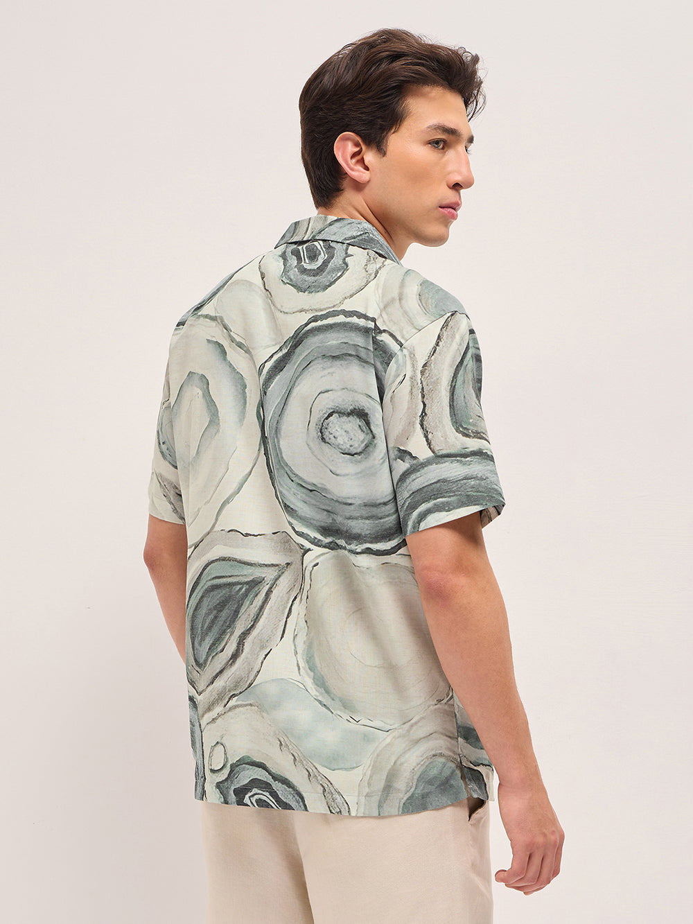Multicolor Relaxed Fit Cuban Collar Shirt with Abstract Agate Stone Print