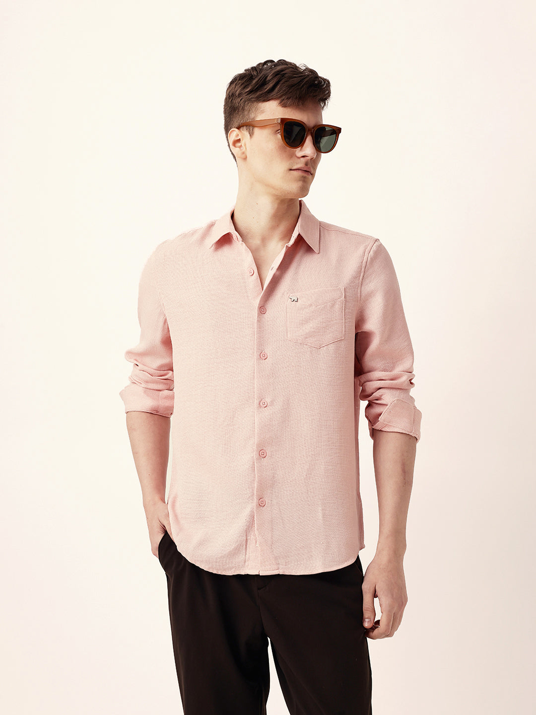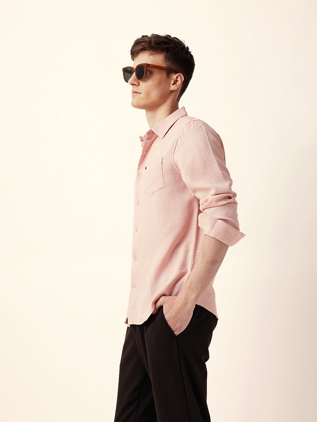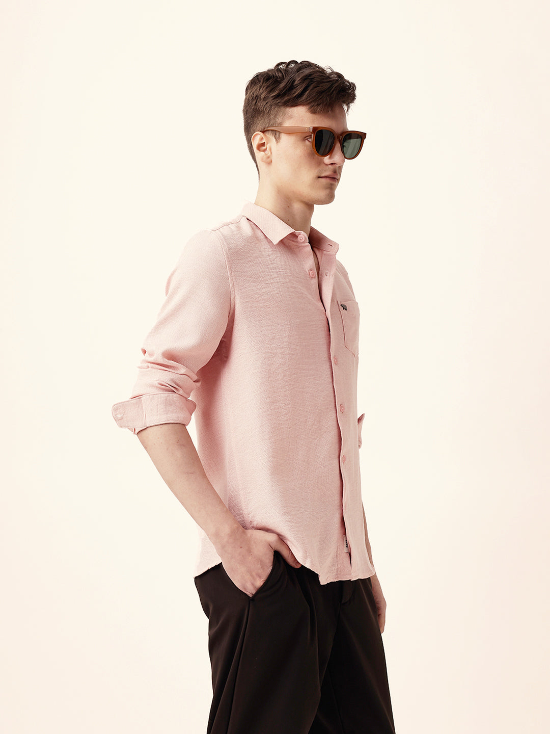 Shop Pink Woven Solid Slim Fit Casual Shirt Online.