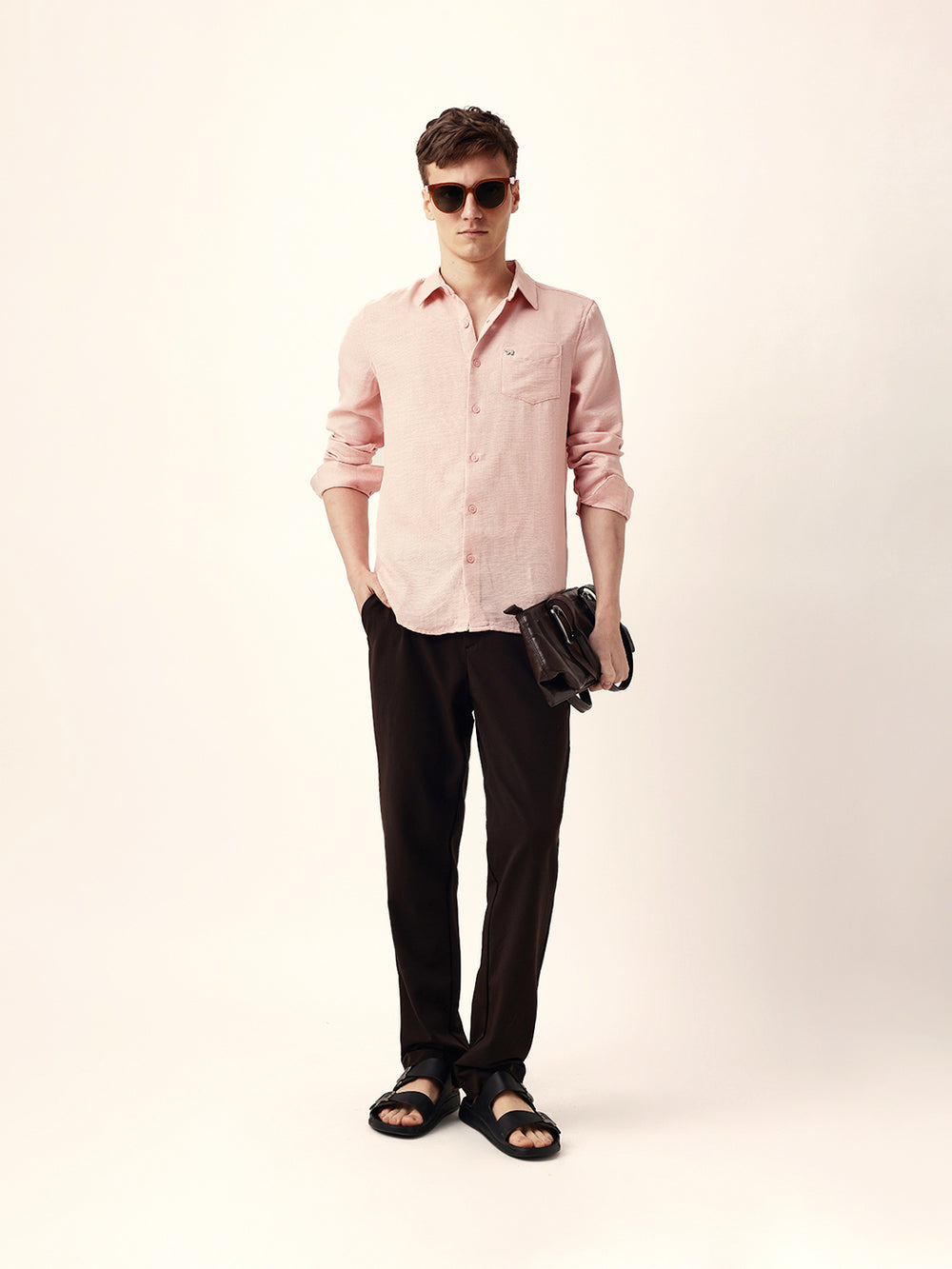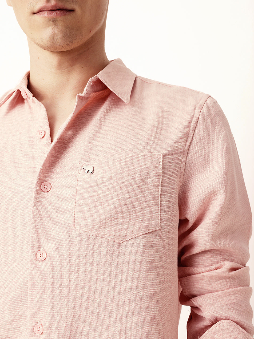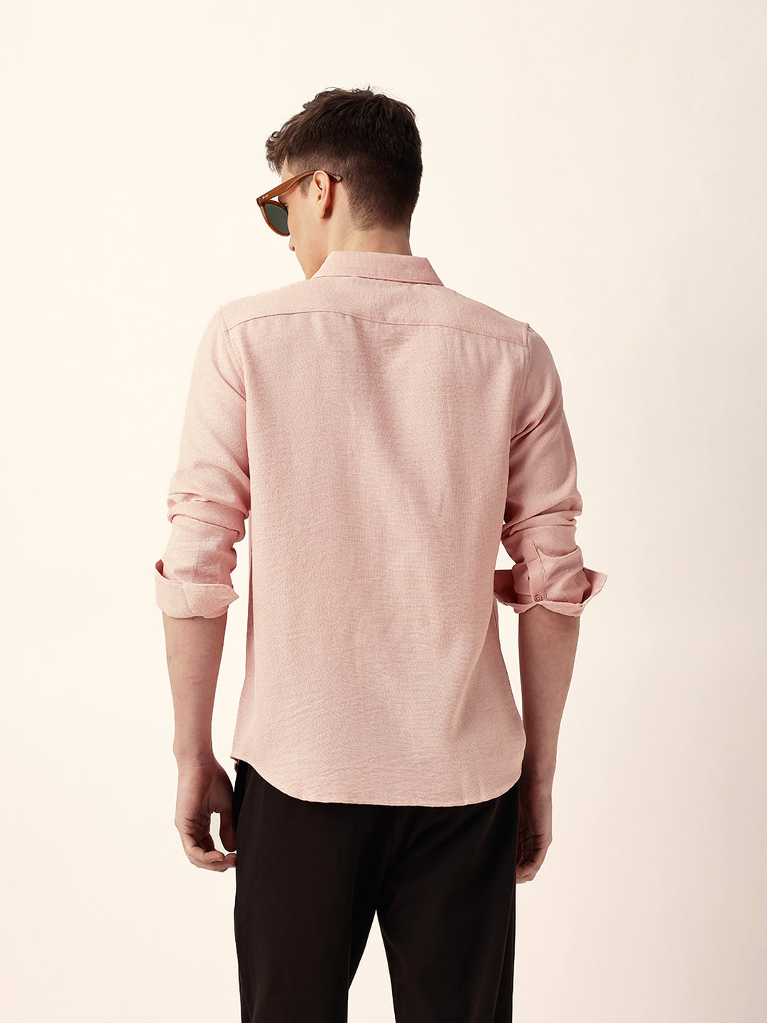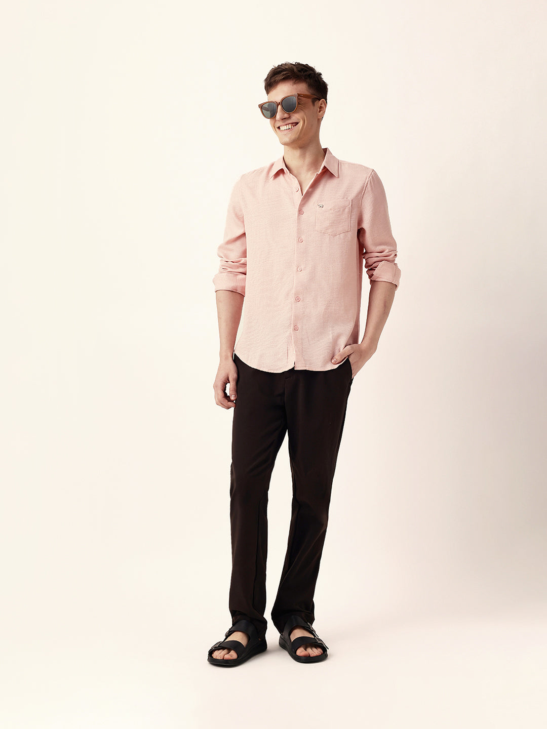 Shop Pink Woven Solid Slim Fit Casual Shirt Online.