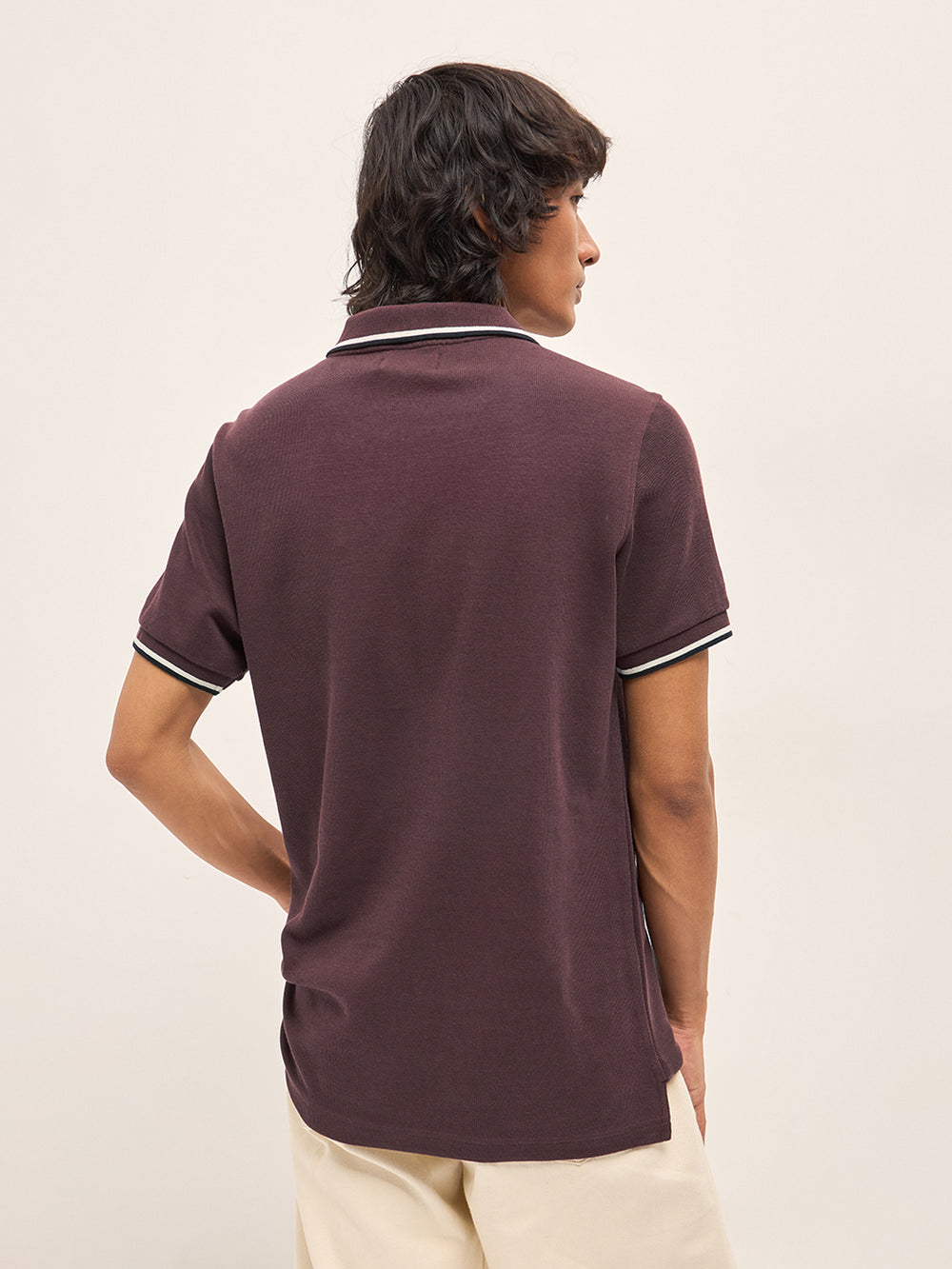 Brown Solid Slim Fit Polo with Contrast Tipping Detail
