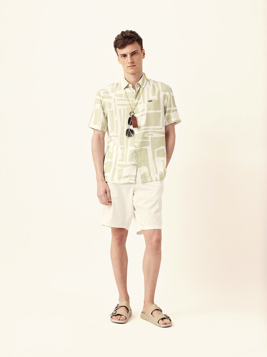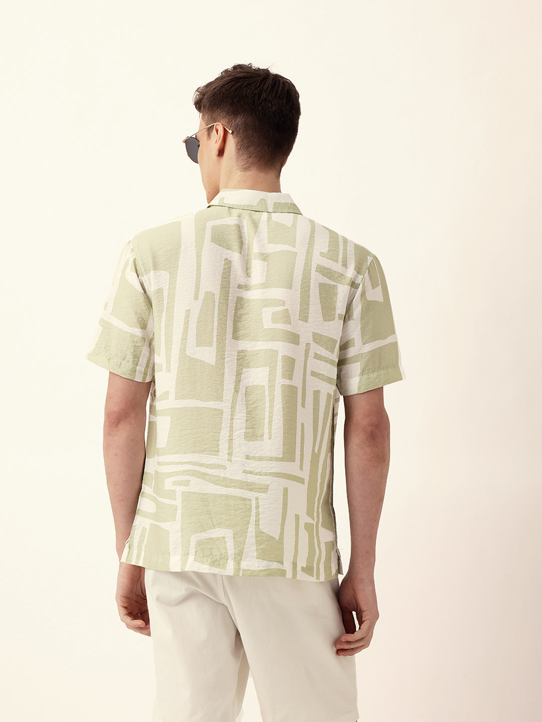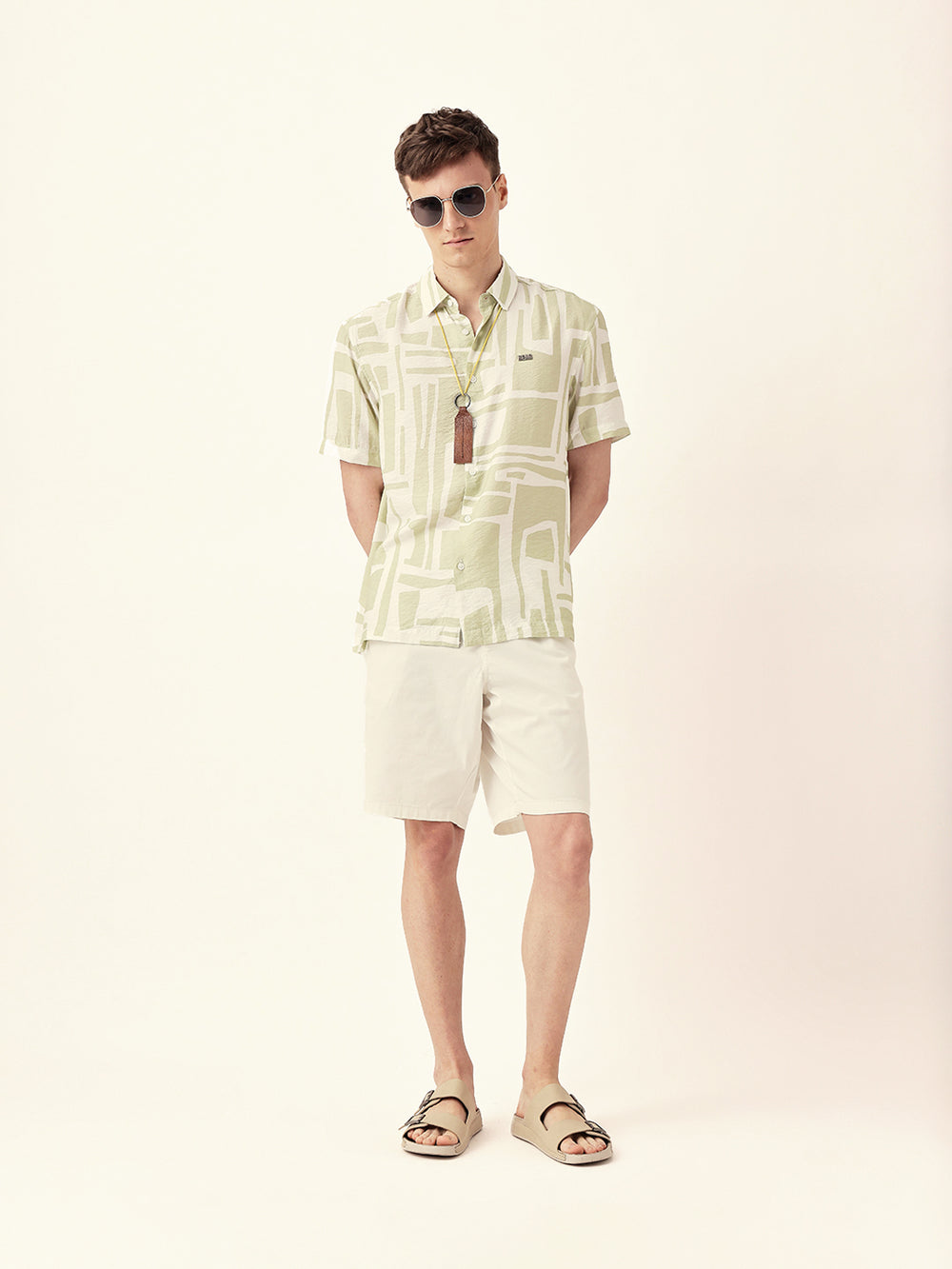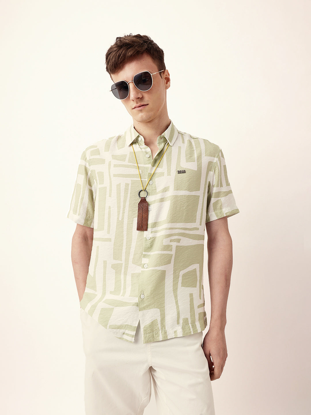 Shop White & Green Relaxed Fit Abstract Stroke Print Half Sleeve Casual Shirt Online.