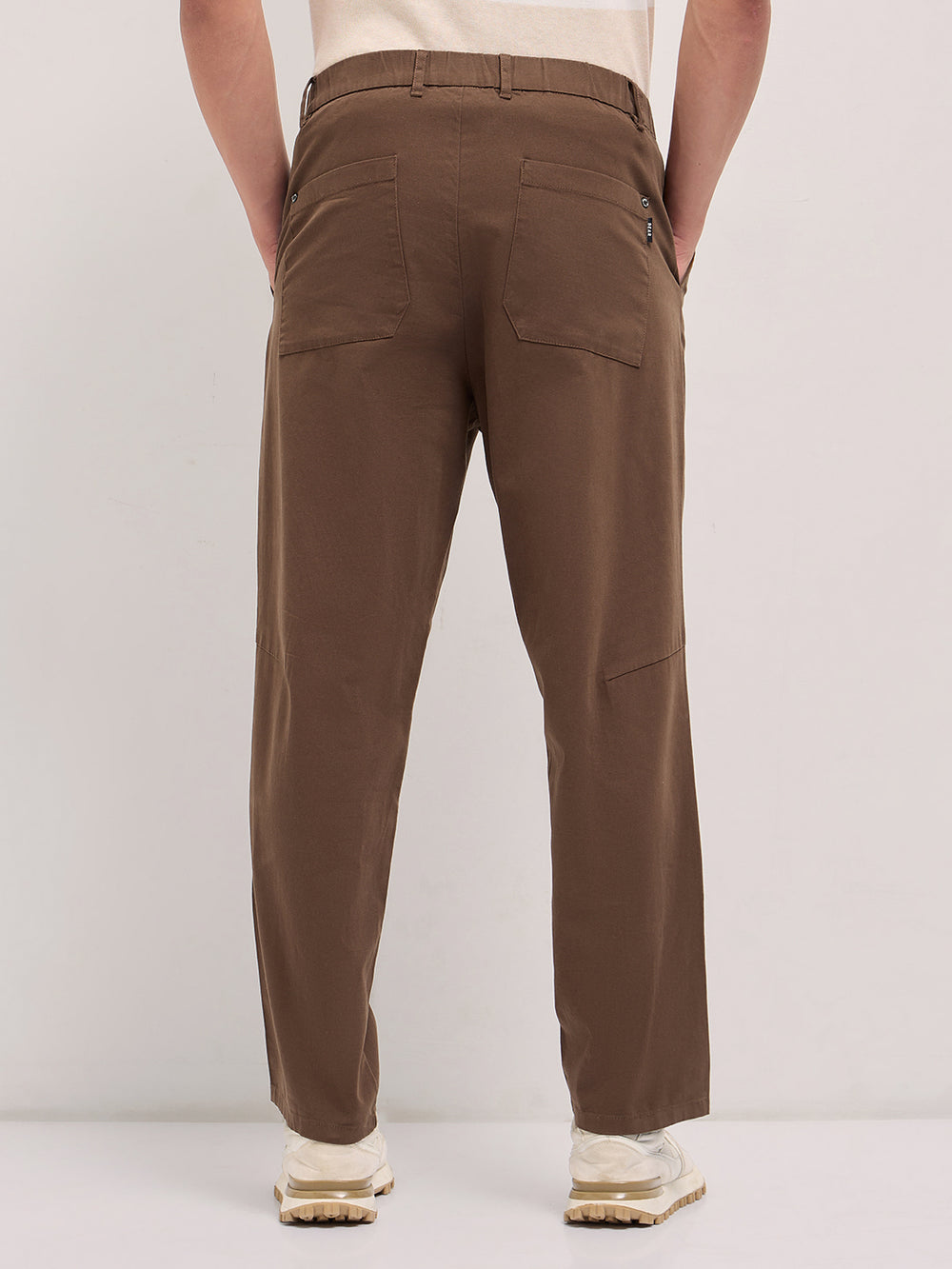 Brown Solid Baggy Fit Casual Trouser with Centre line Detail