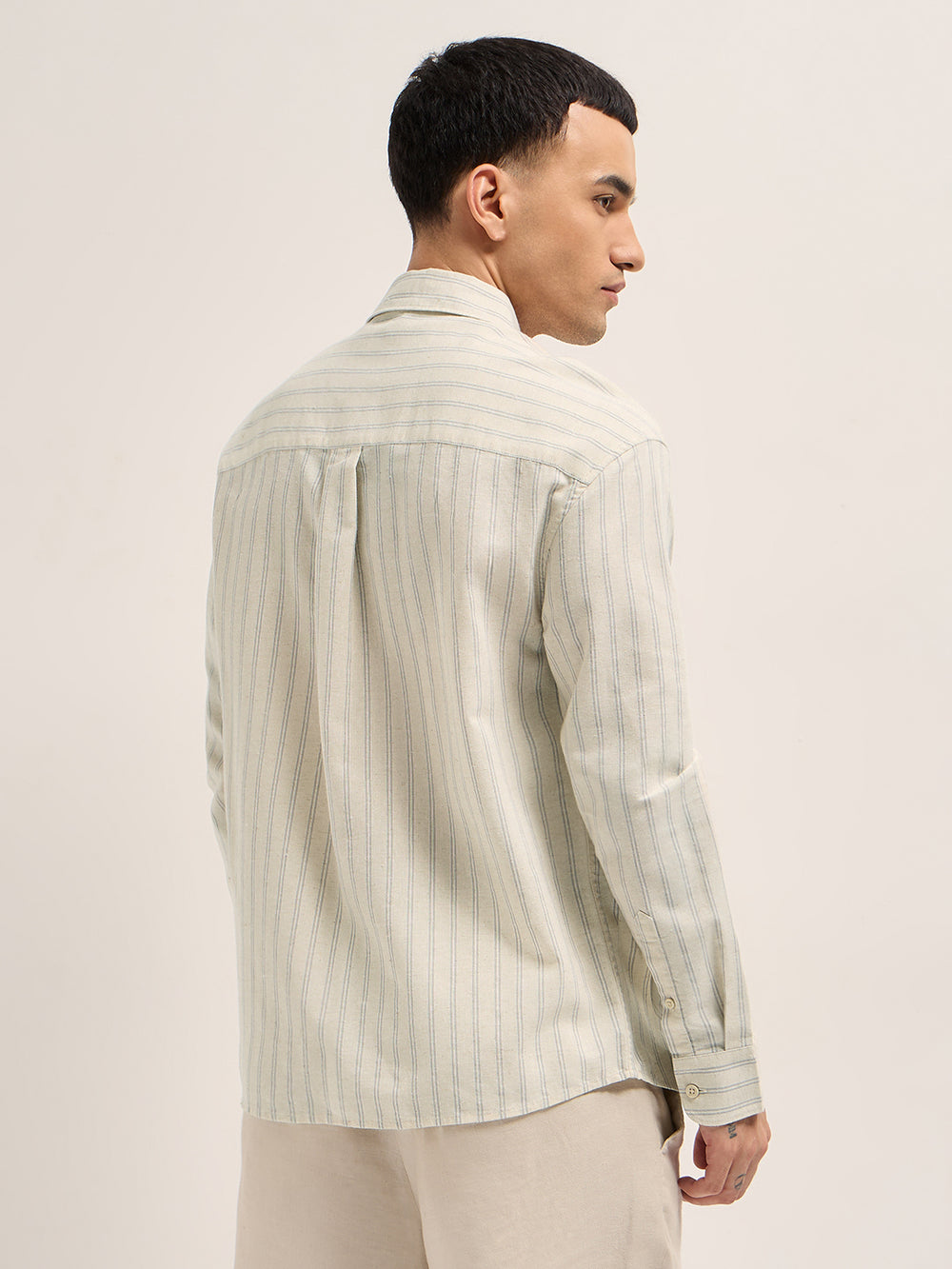 Light Grey Vertical Striped Relaxed Fit Casual Shirt