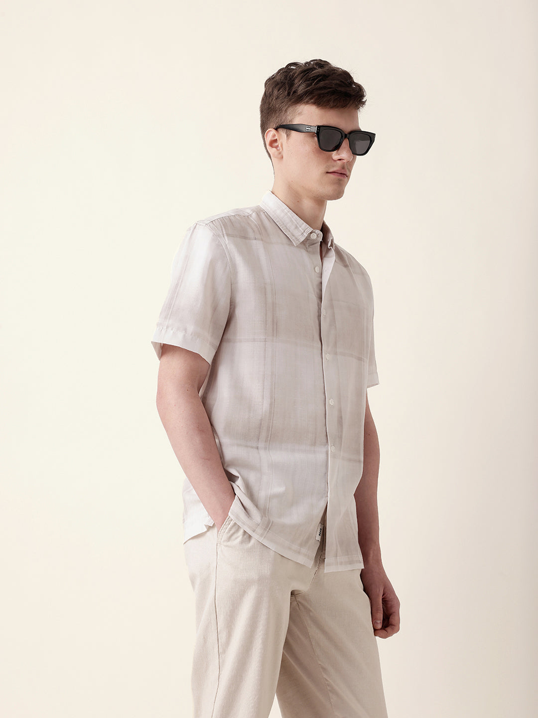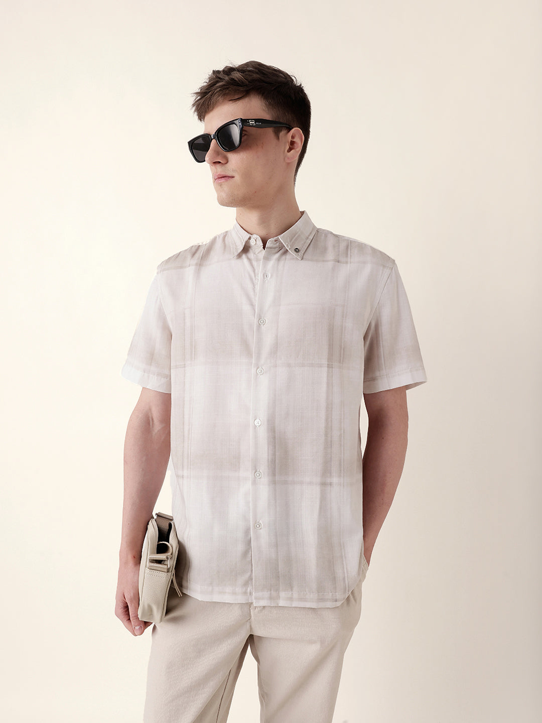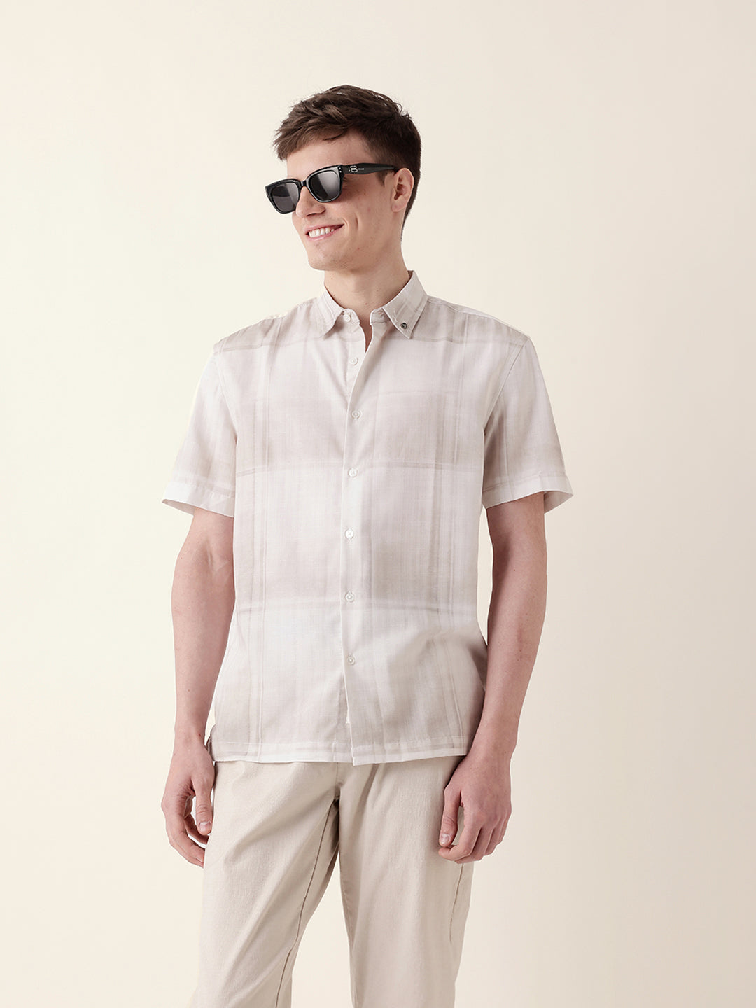 Shop Cream Geometric Check Print Relaxed Fit Casual Shirt Online.
