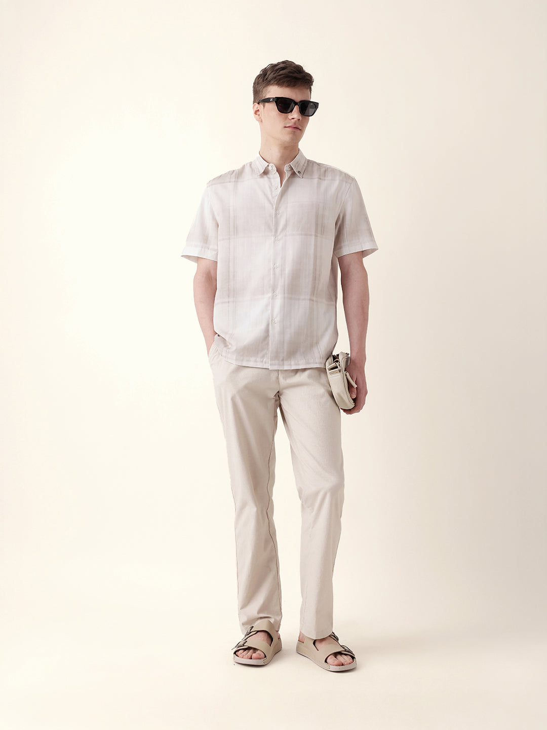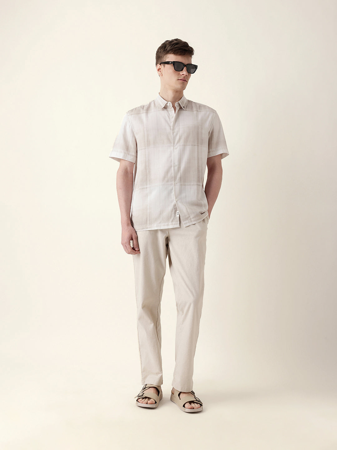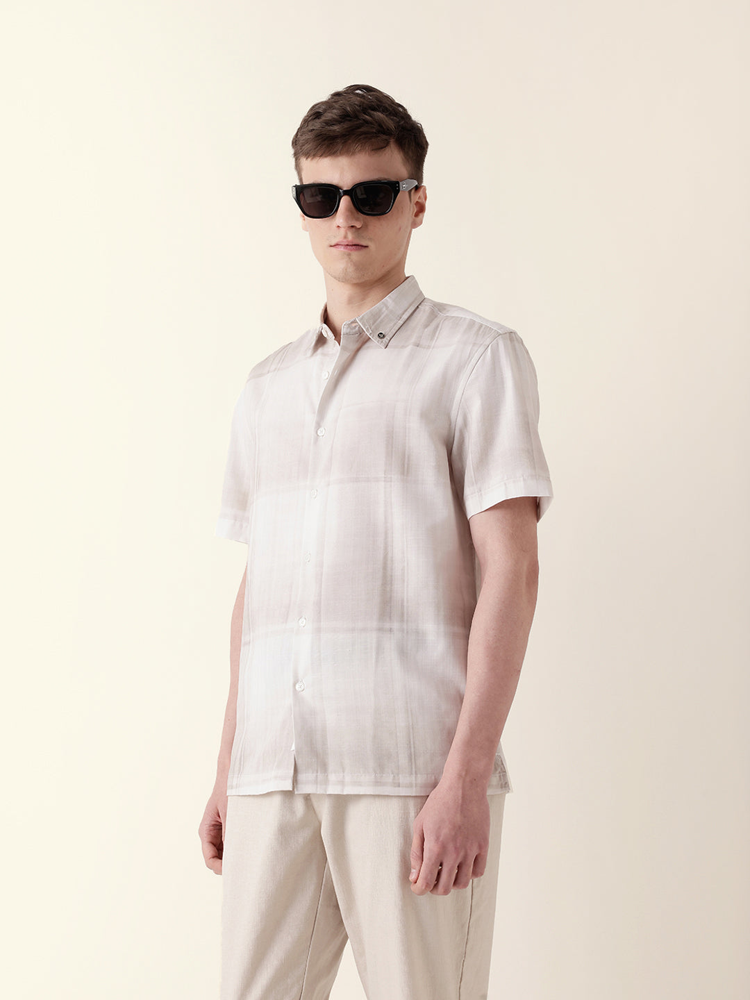 Shop Cream Geometric Check Print Relaxed Fit Casual Shirt Online.
