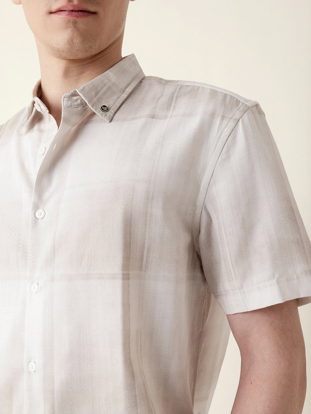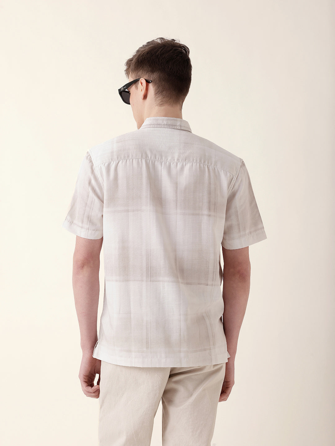 Cream Geometric Check Print Relaxed Fit Casual Shirt