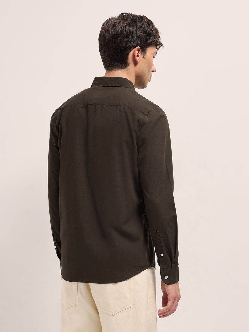 Shop Brown Cotton Solid Slim Fit Casual Shirt Online.