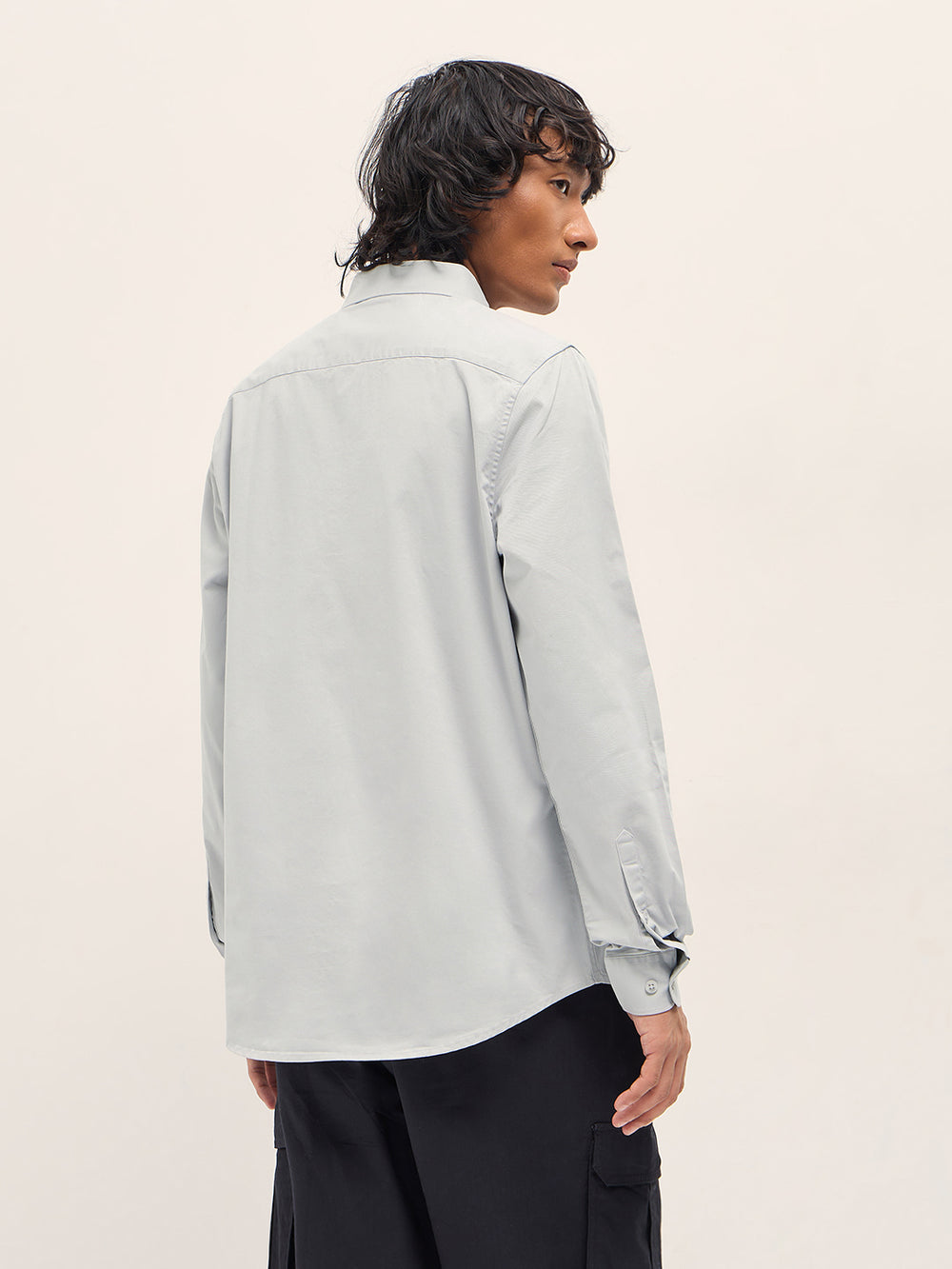 Shop Light Grey Cotton Blend Solid Slim Fit Casual Shirt Online.