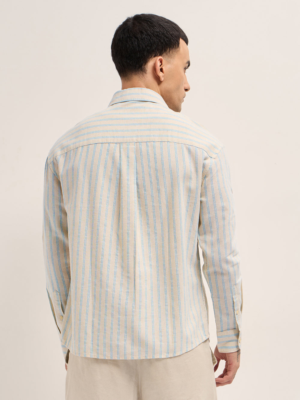 Teal Vertical Striped Relaxed Fit Casual Shirt