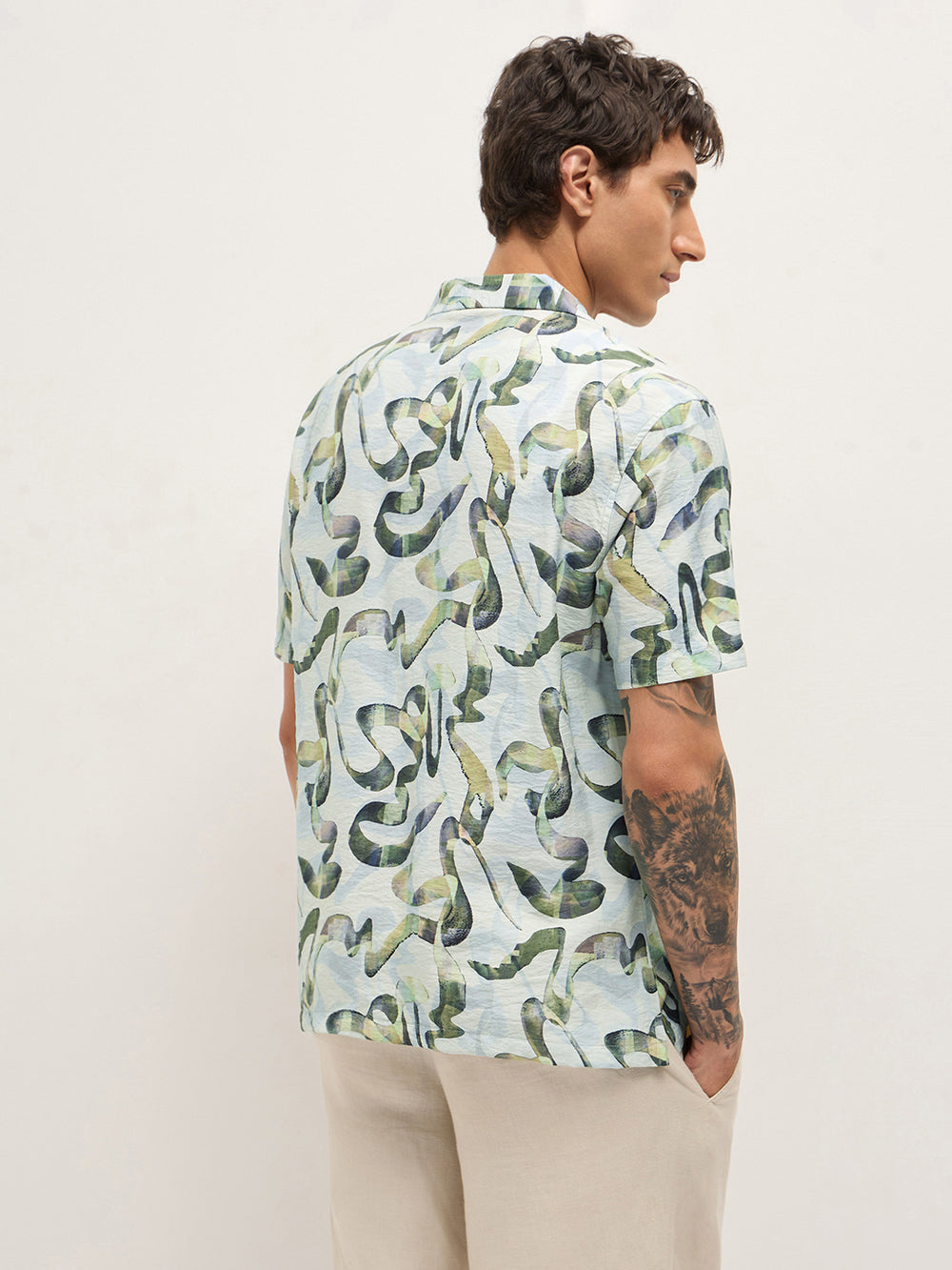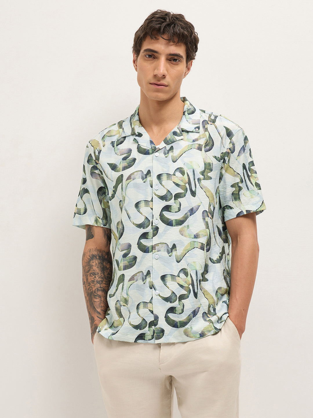 Shop Multicolor Abstract Scribble Print Relaxed Fit Cuban Collar Casual Shirt Online.