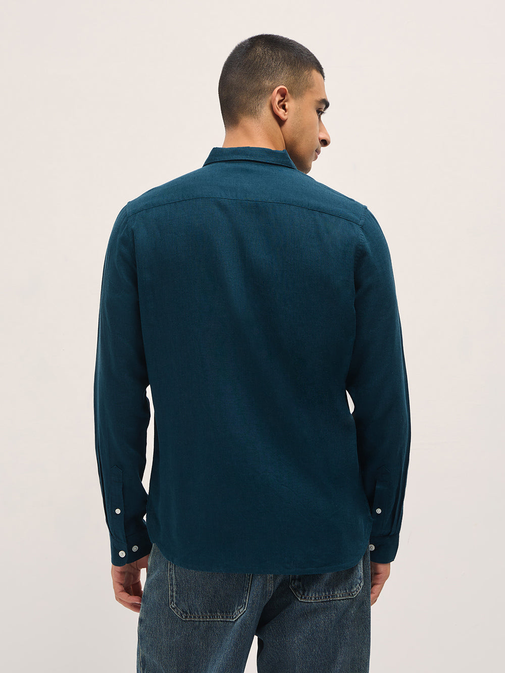 Teal Solid Lyocell Slim Fit Casual Shirt