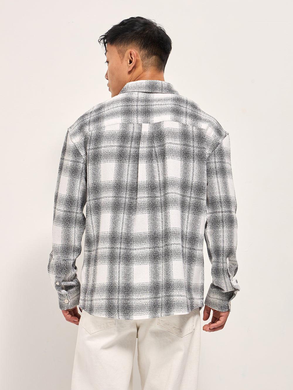 White with Black Checked Relax Fit Casual Shirt