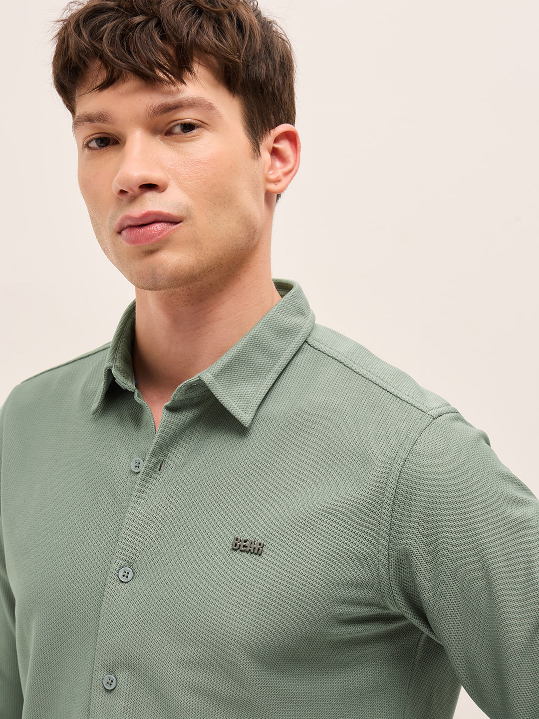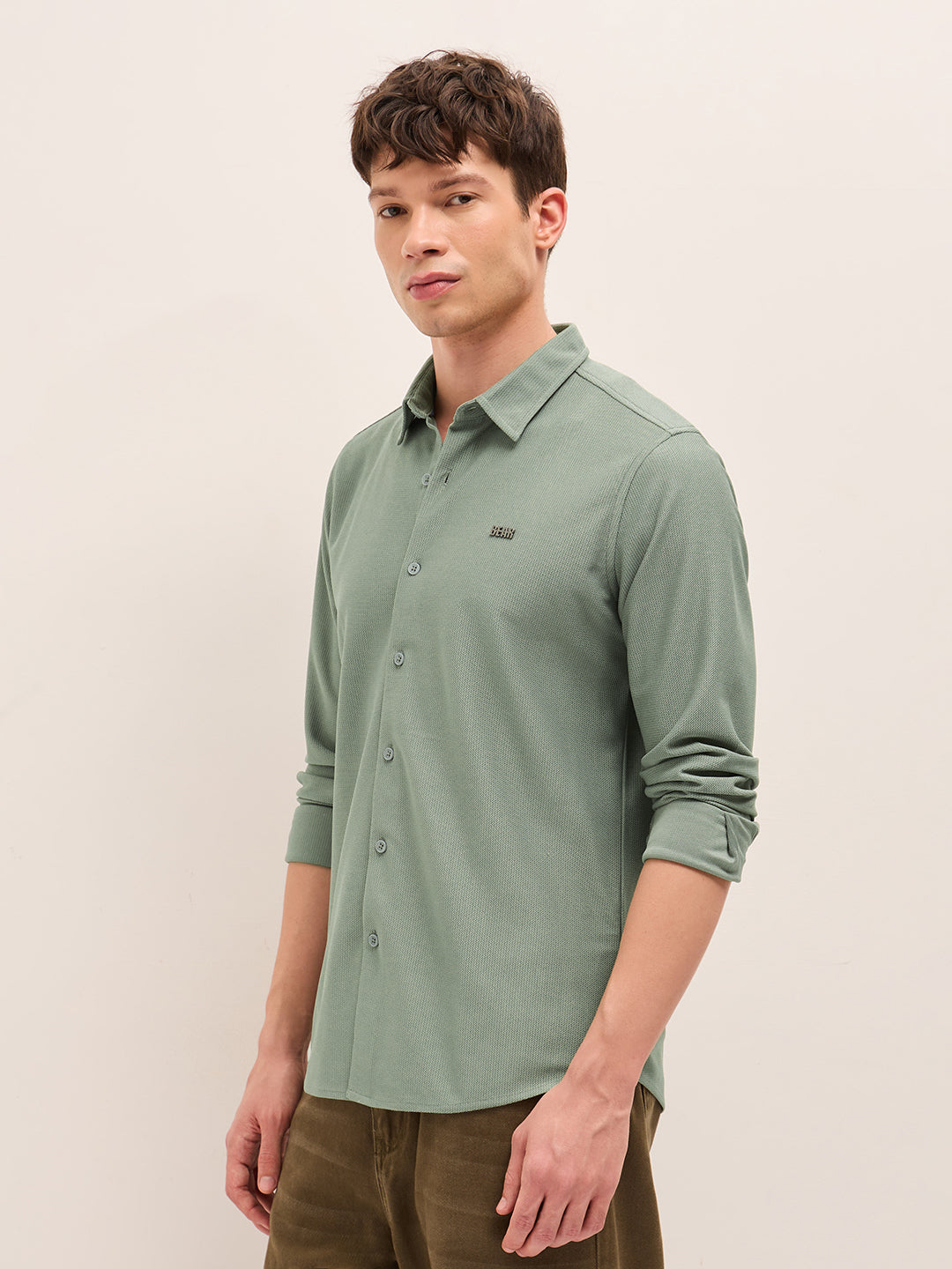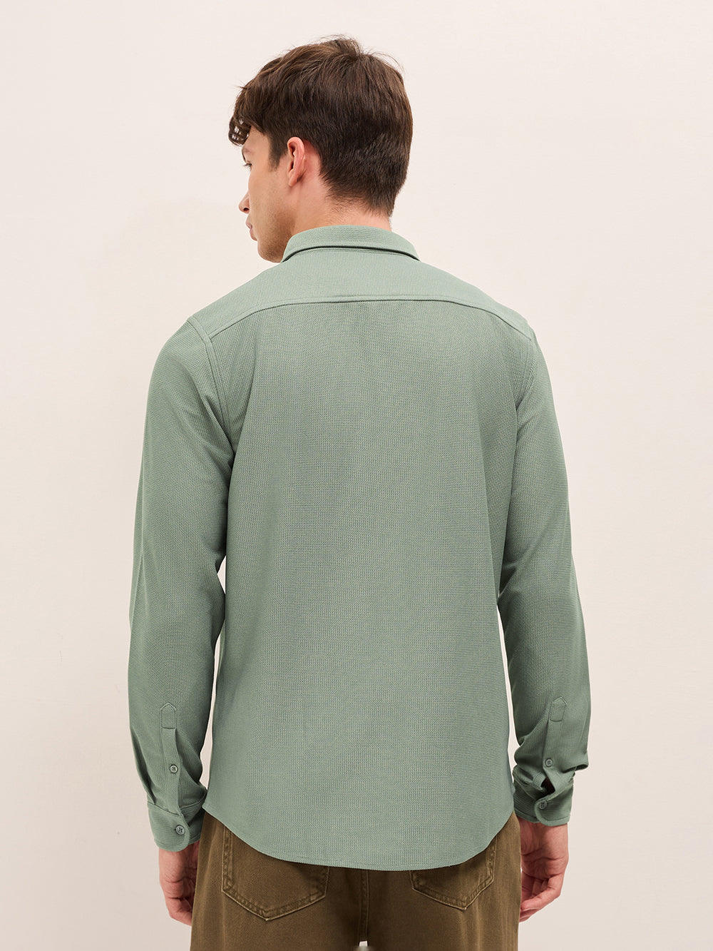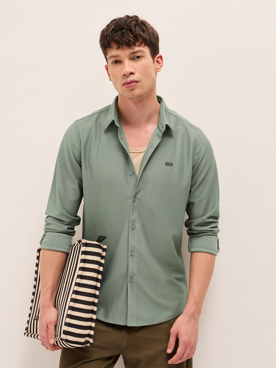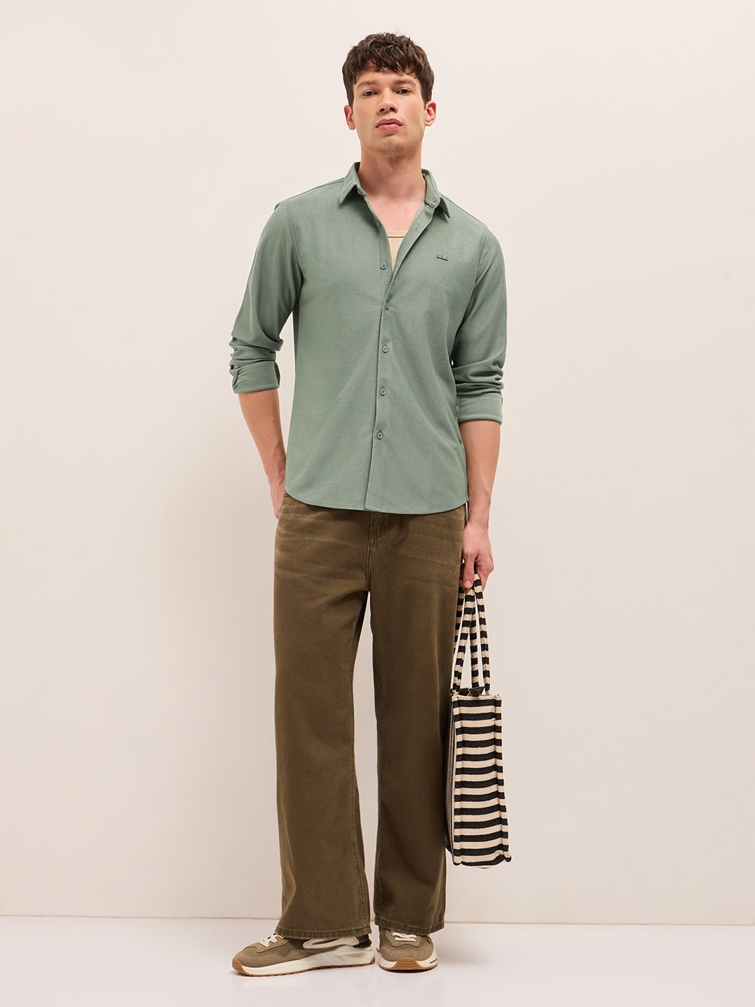 Shop Green Woven Textured Regular Fit Casual Shirt Online.