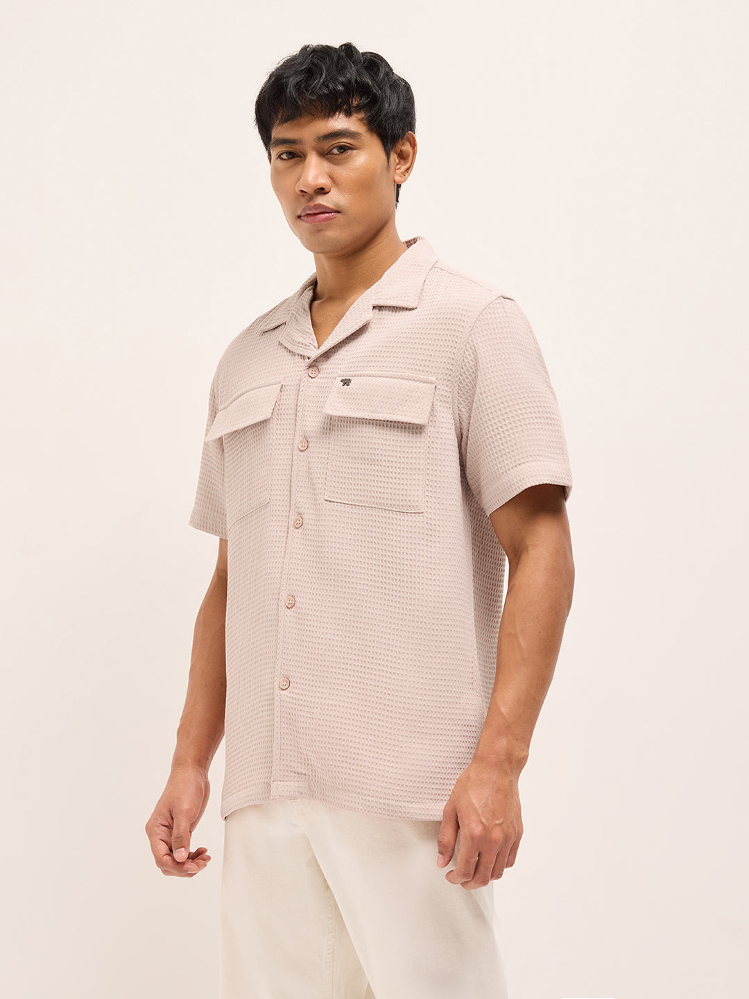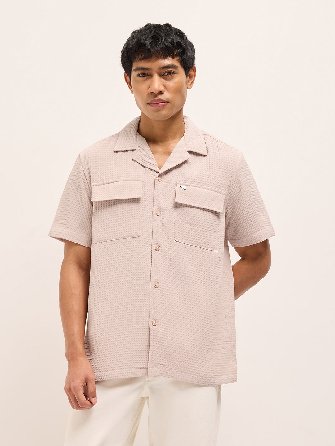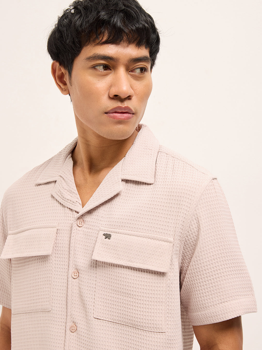 Peach Textured Woven Relaxed Fit Casual Shirt with Flap Pockets