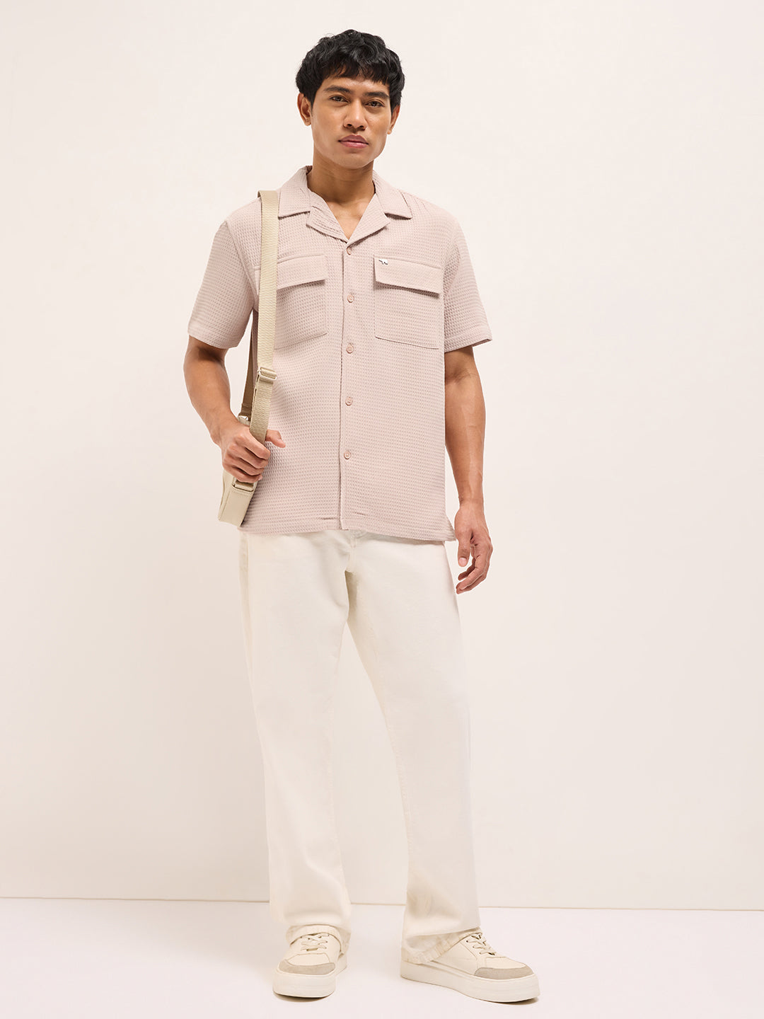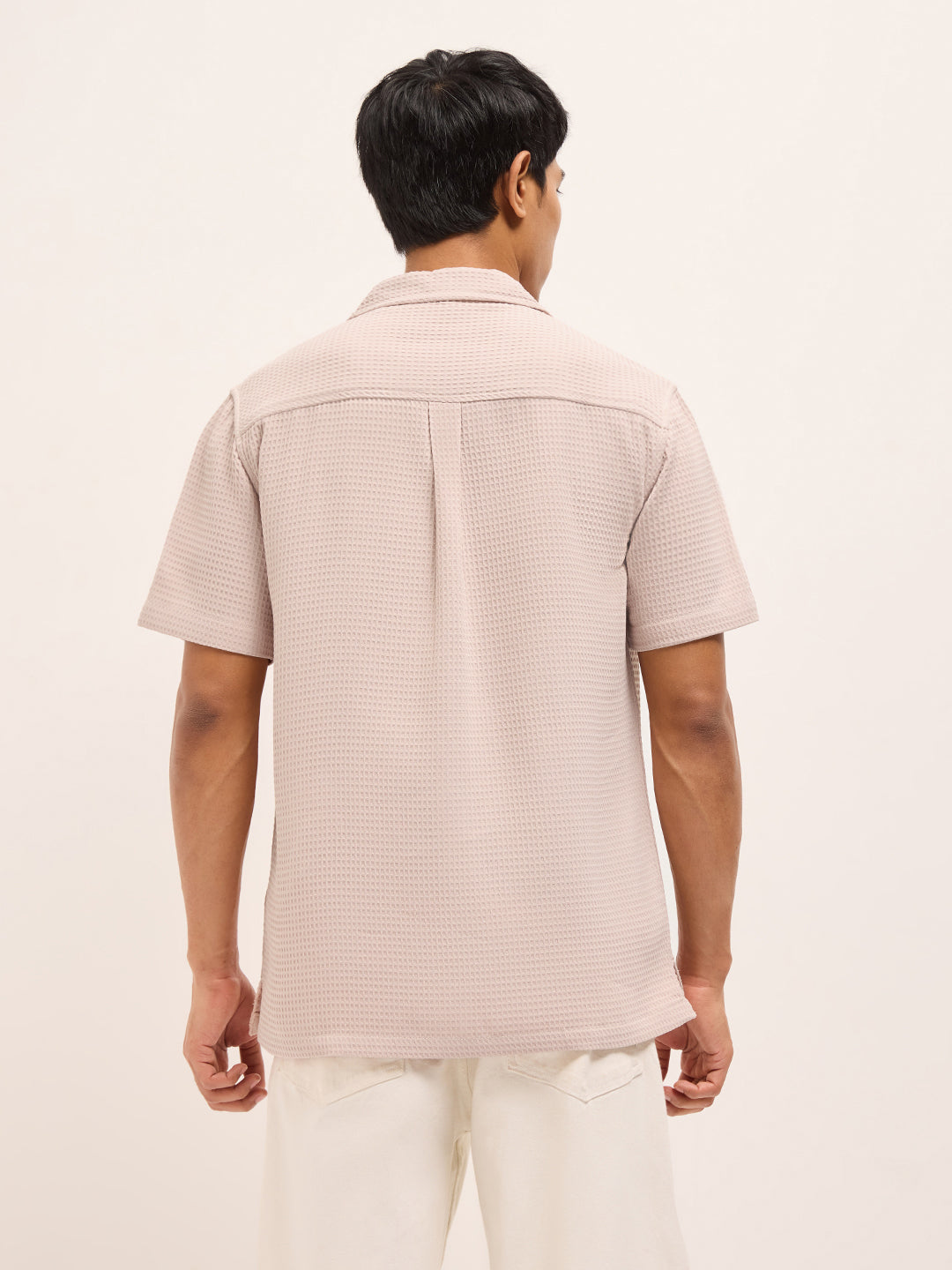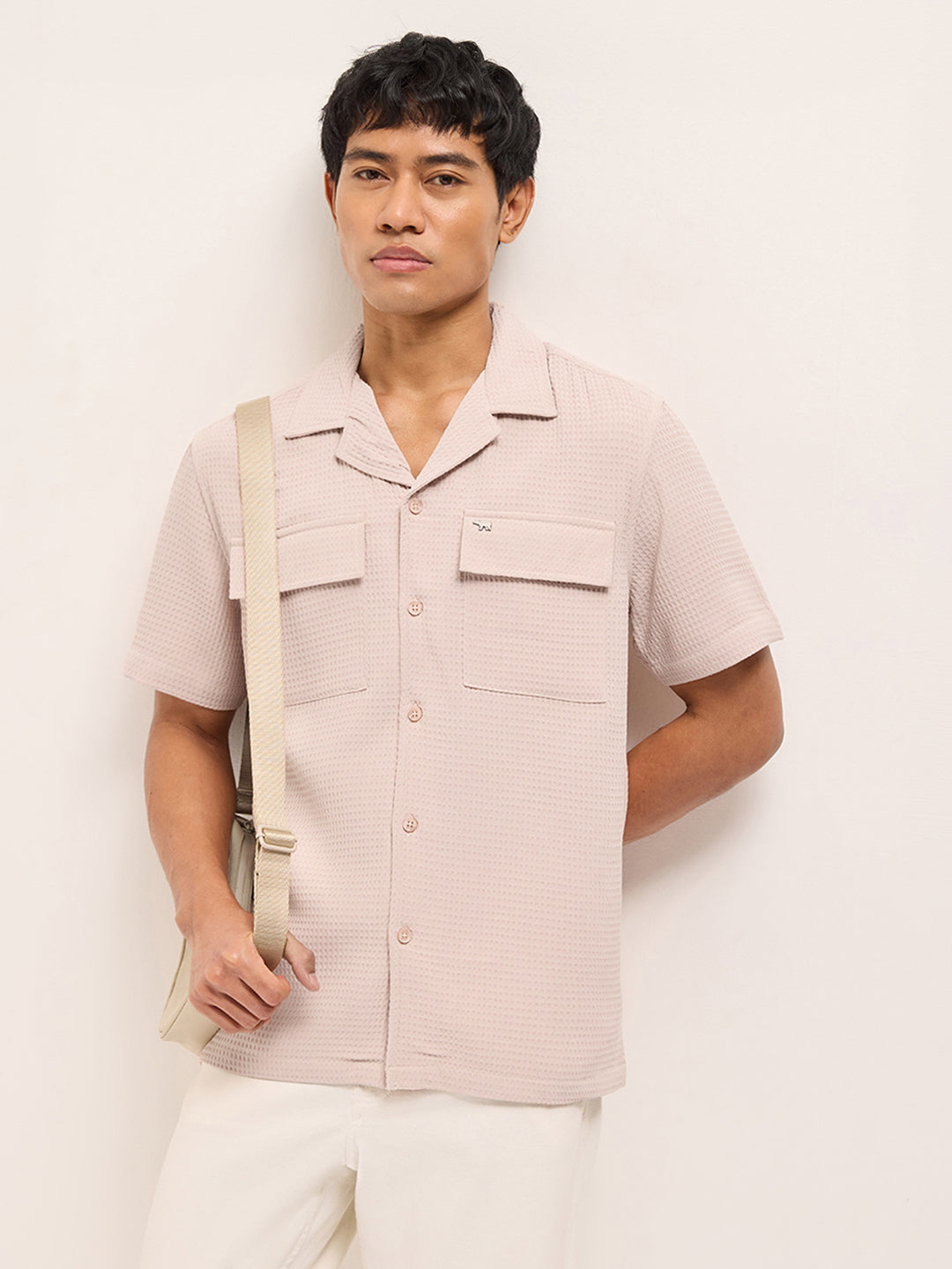 Peach Textured Woven Relaxed Fit Casual Shirt with Flap Pockets
