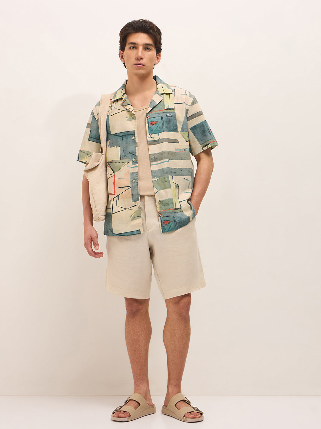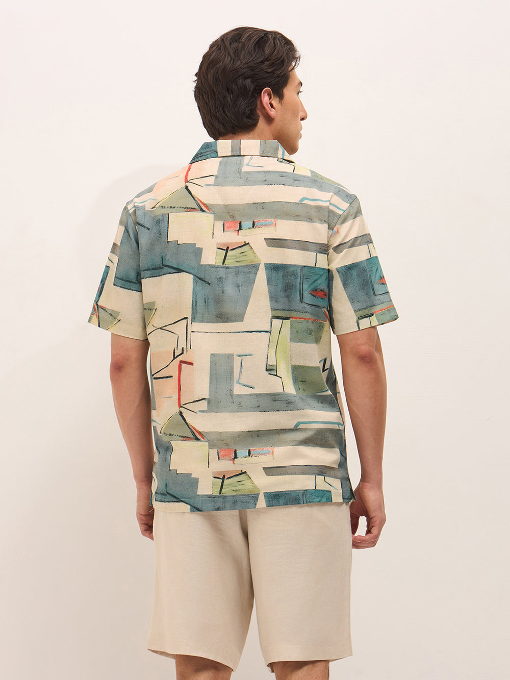 Shop Multicolor Relaxed Fit Cuban Collar Shirt with Abstract Geometric Print Online.