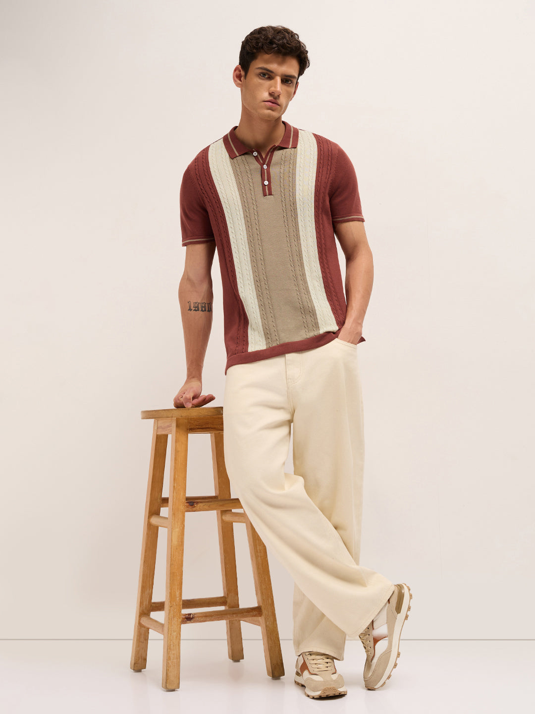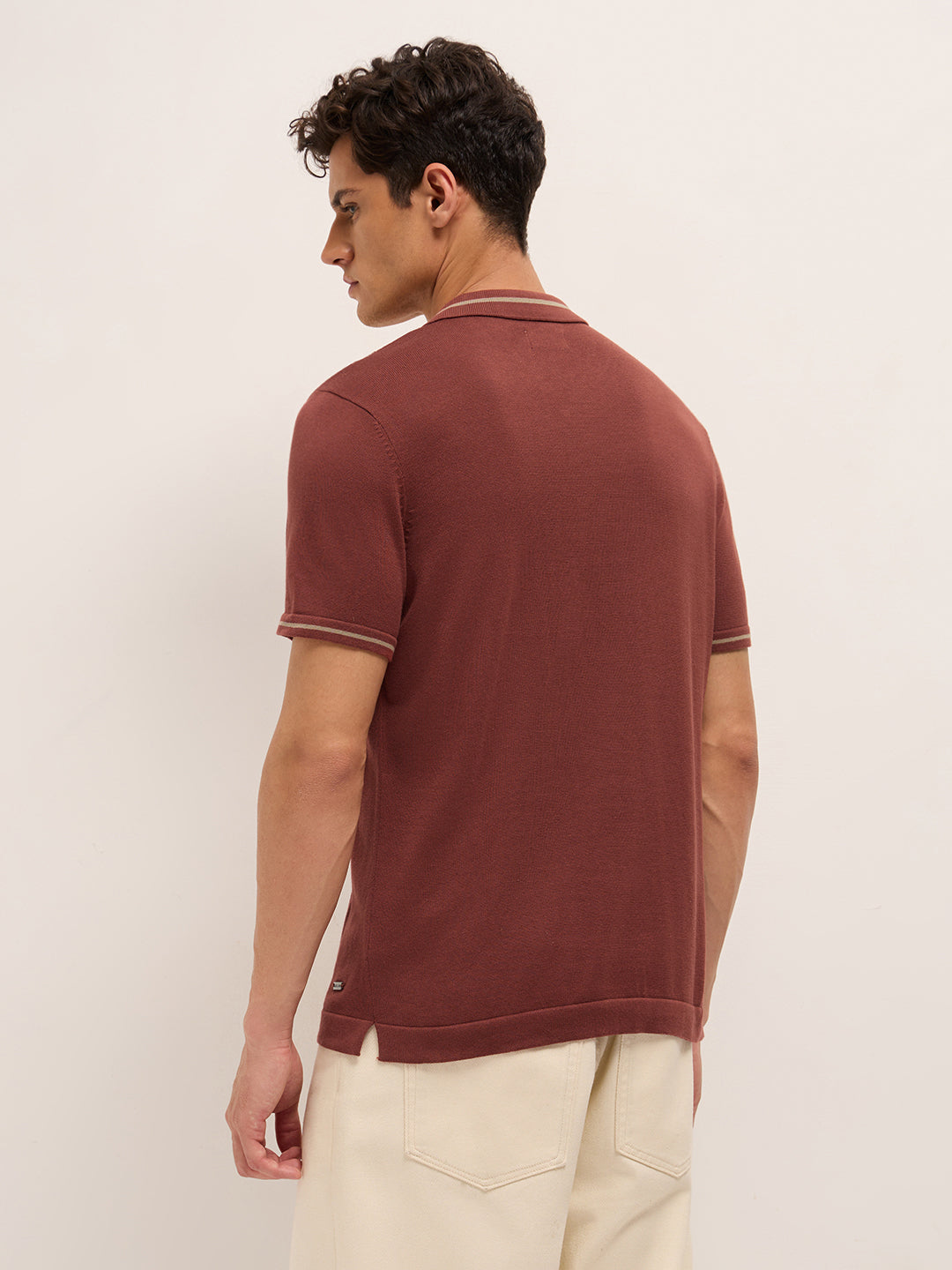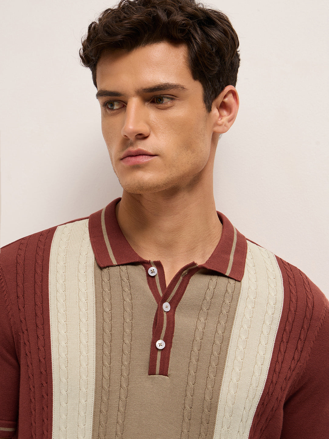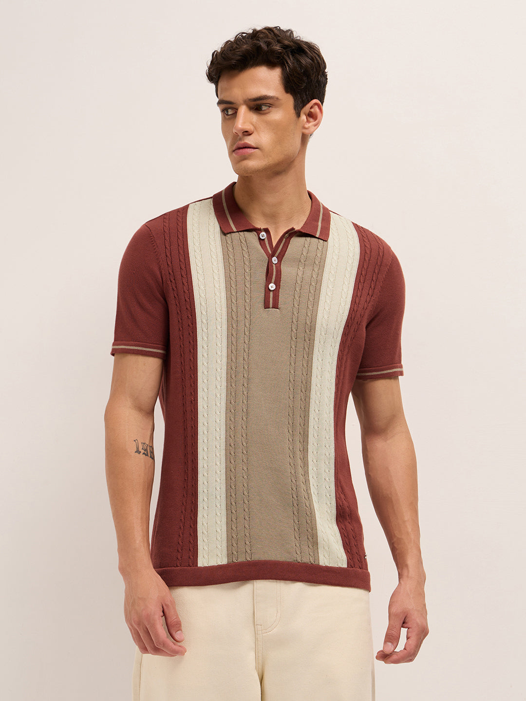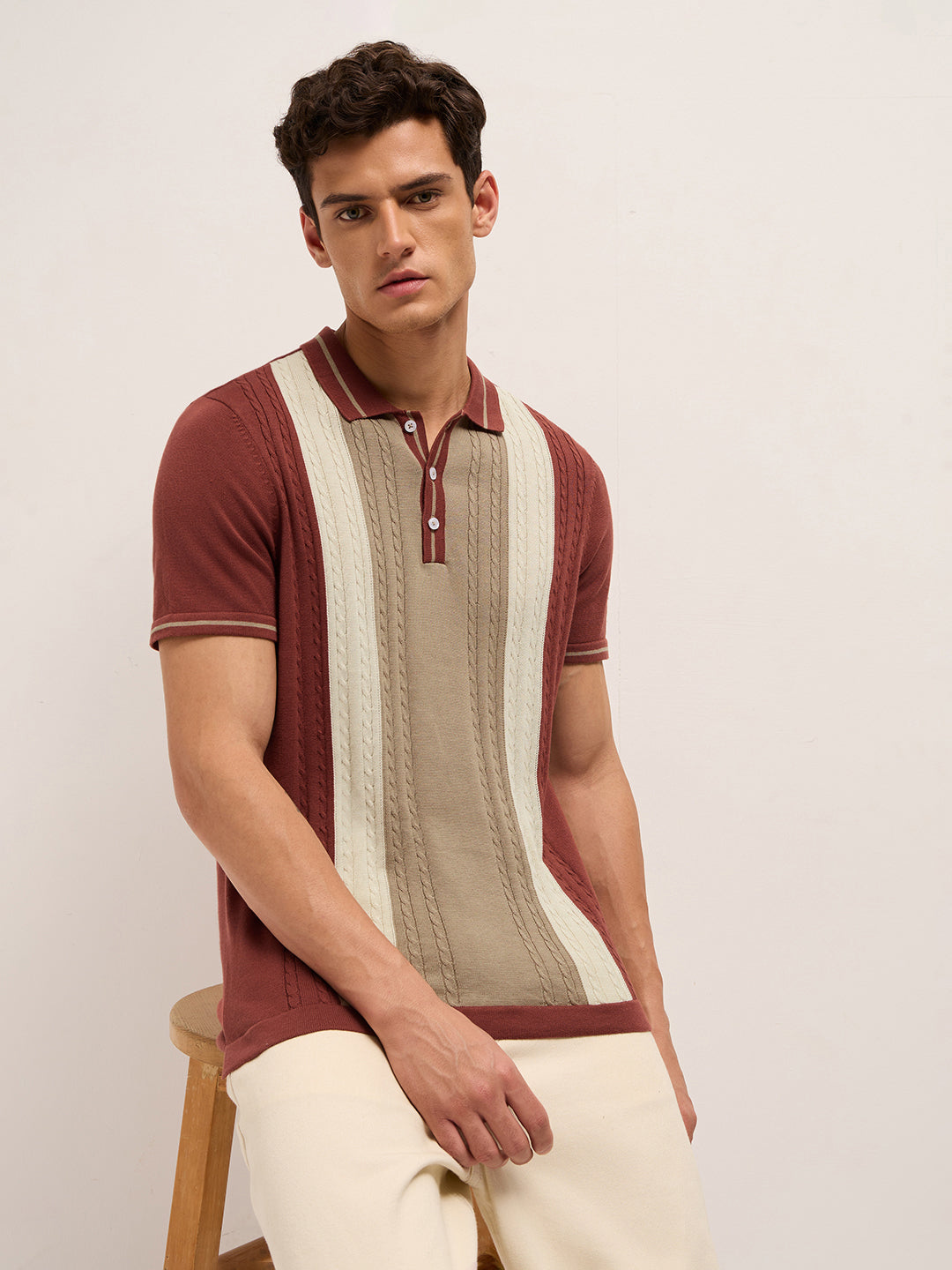 Shop Multicolor Regular Fit Textured Vertical Panel Knit Polo Online.