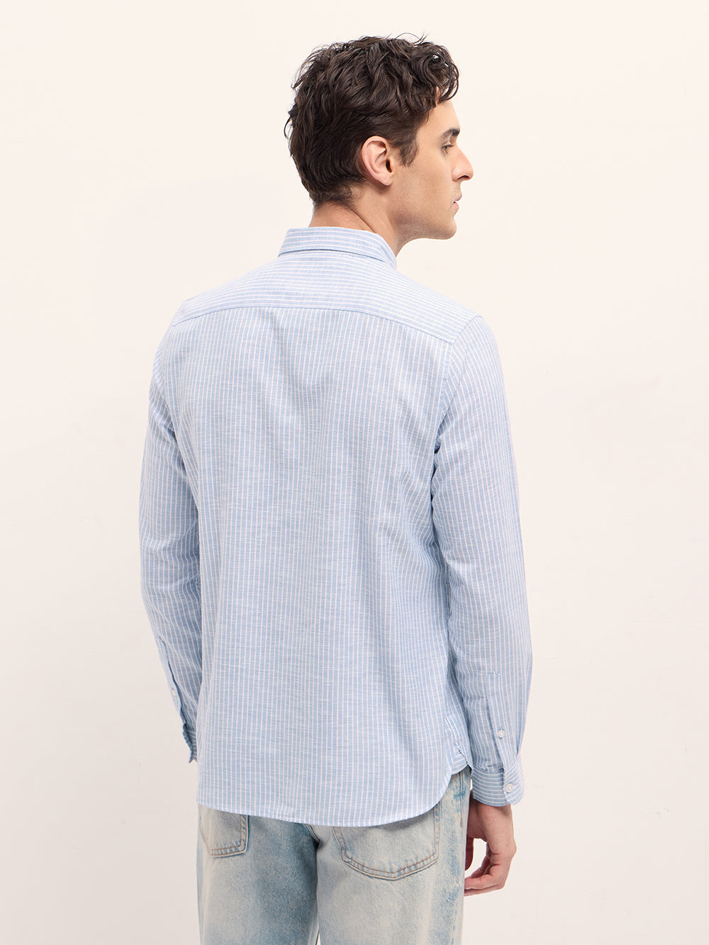 Light Blue Vertical Pin Stripes Slim Fit Casual Shirt