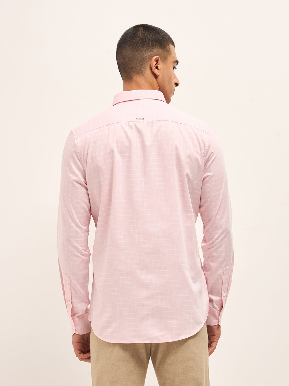 Pink Windowpane Checks Tailored Fit Formal Shirt
