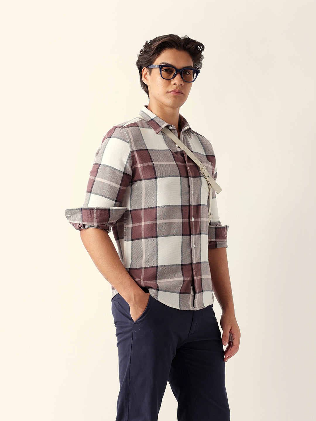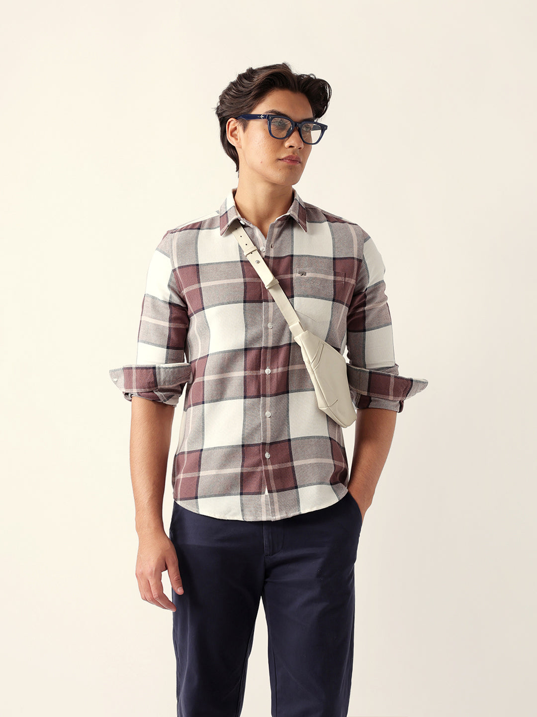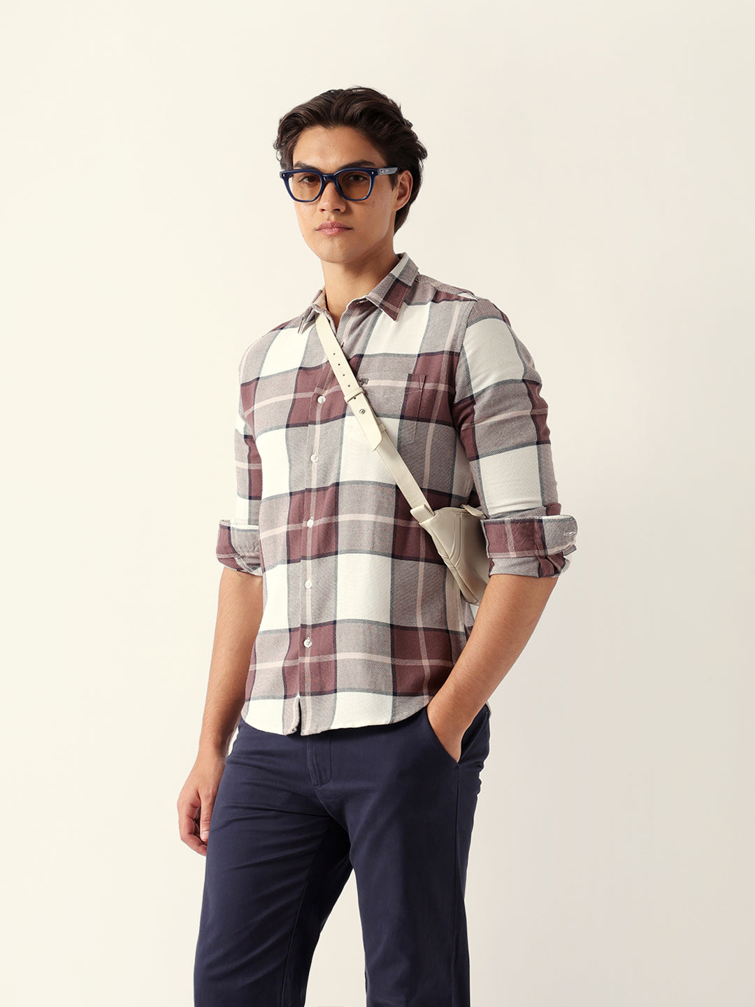 Shop Multicolor Slim Fit Casual Shirt with Woven Check Pattern Online.