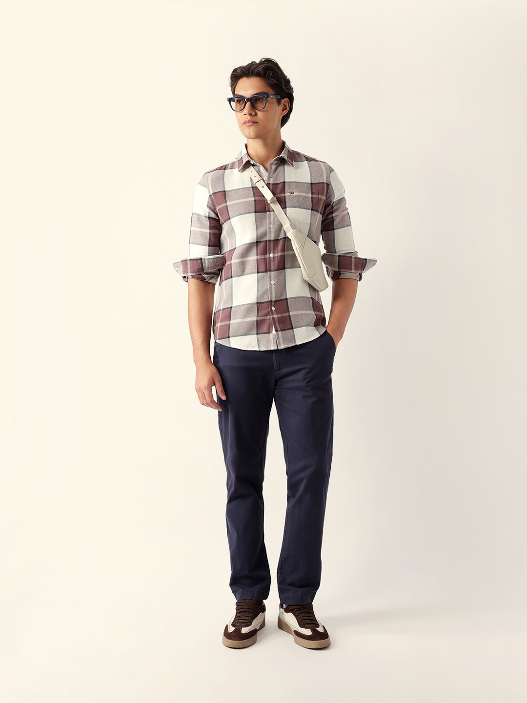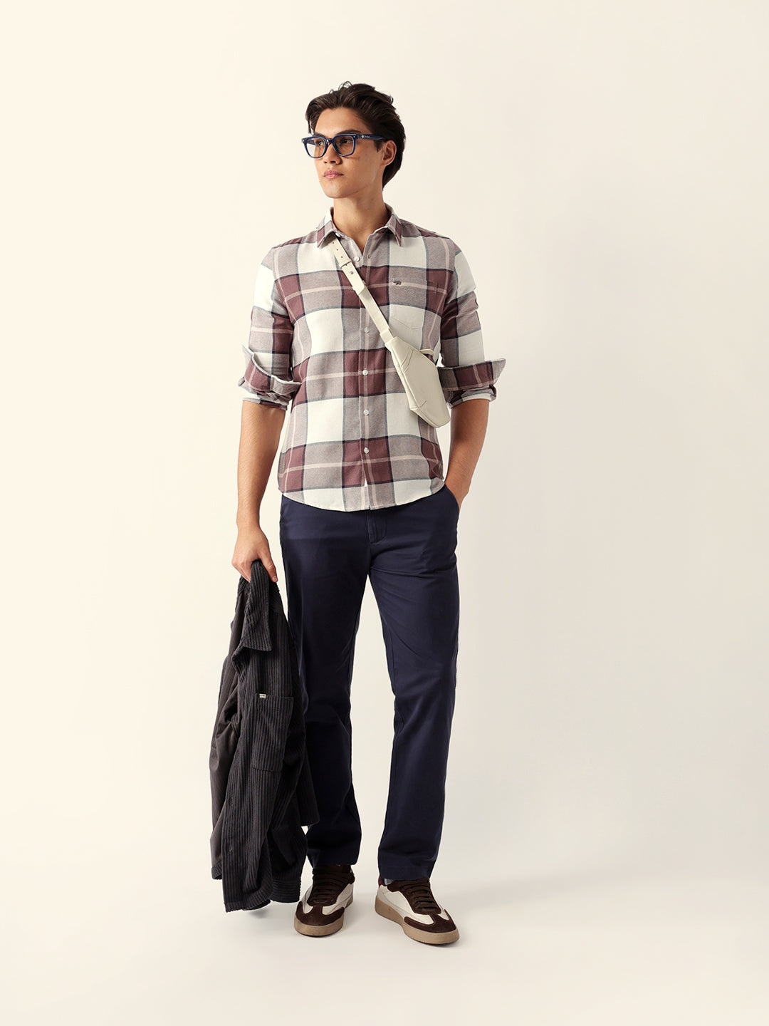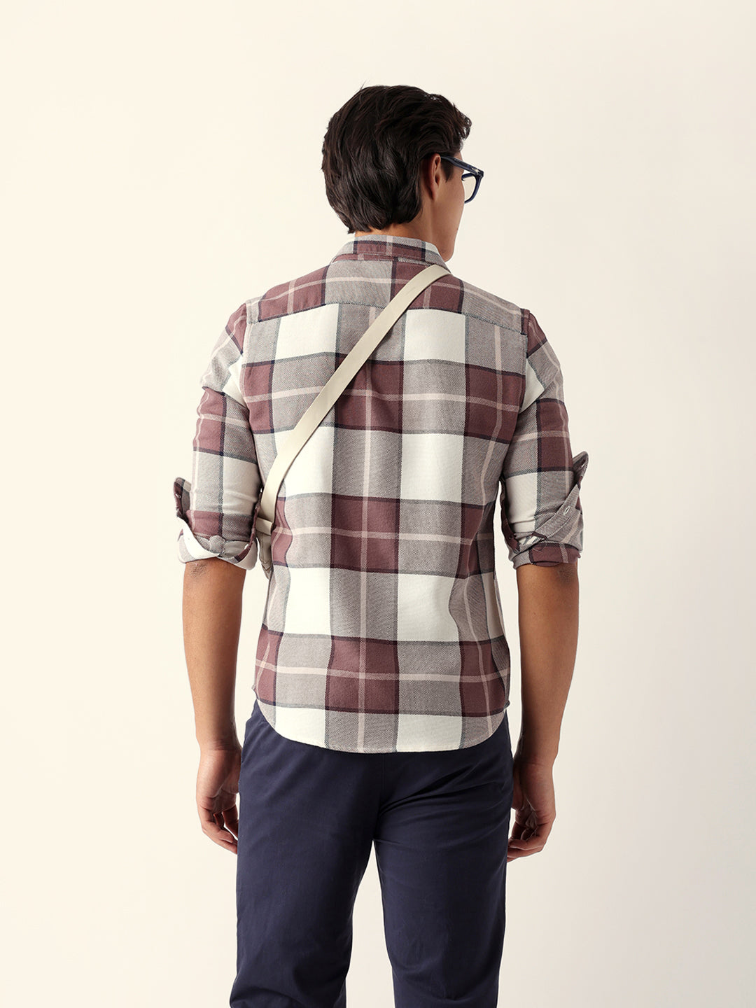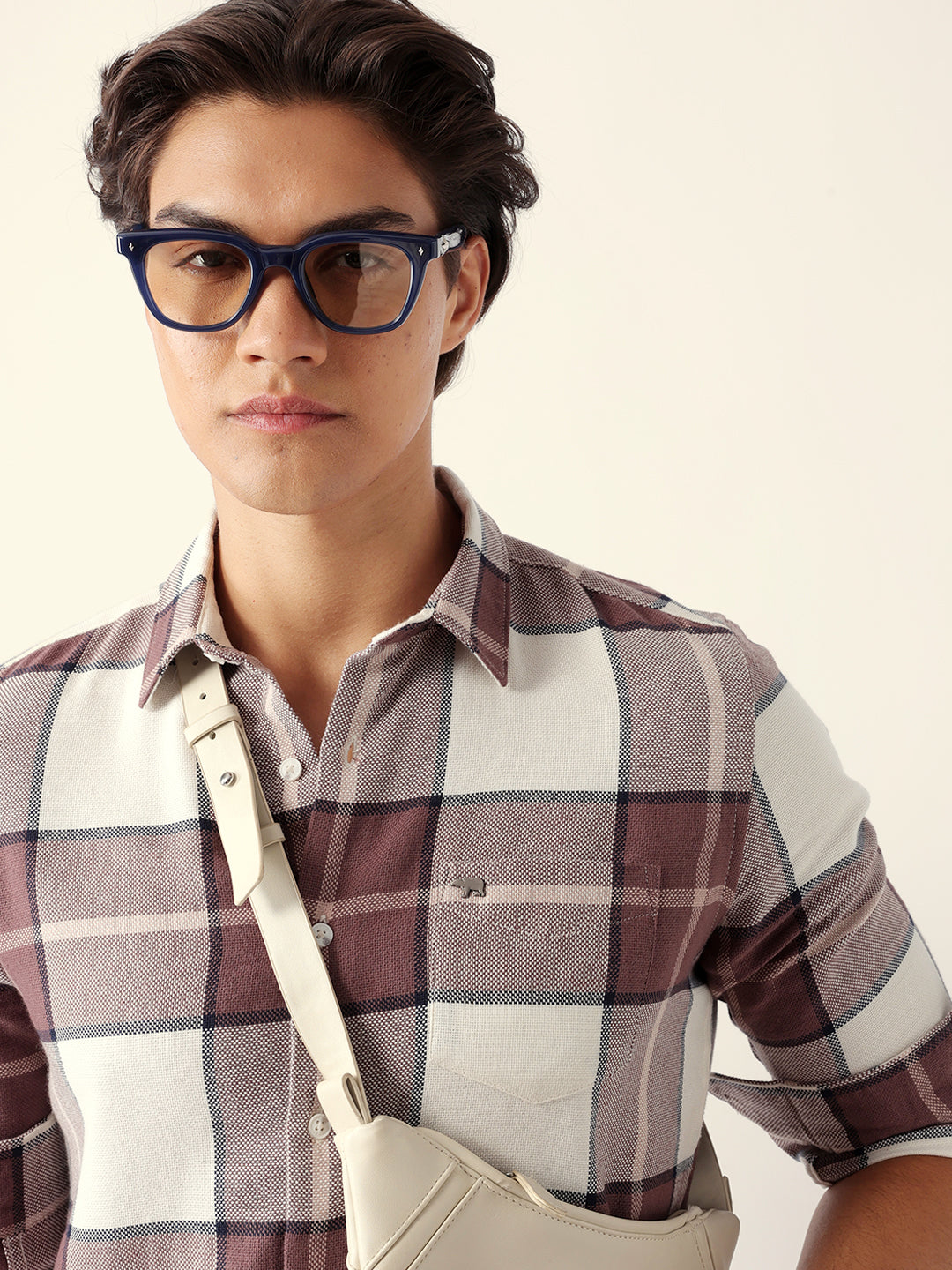 Shop Multicolor Slim Fit Casual Shirt with Woven Check Pattern Online.