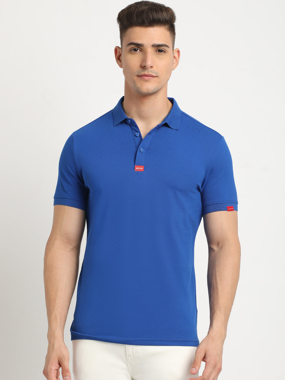 Men Royal Blue Solid Slim Fit Polo Collar Tshirt