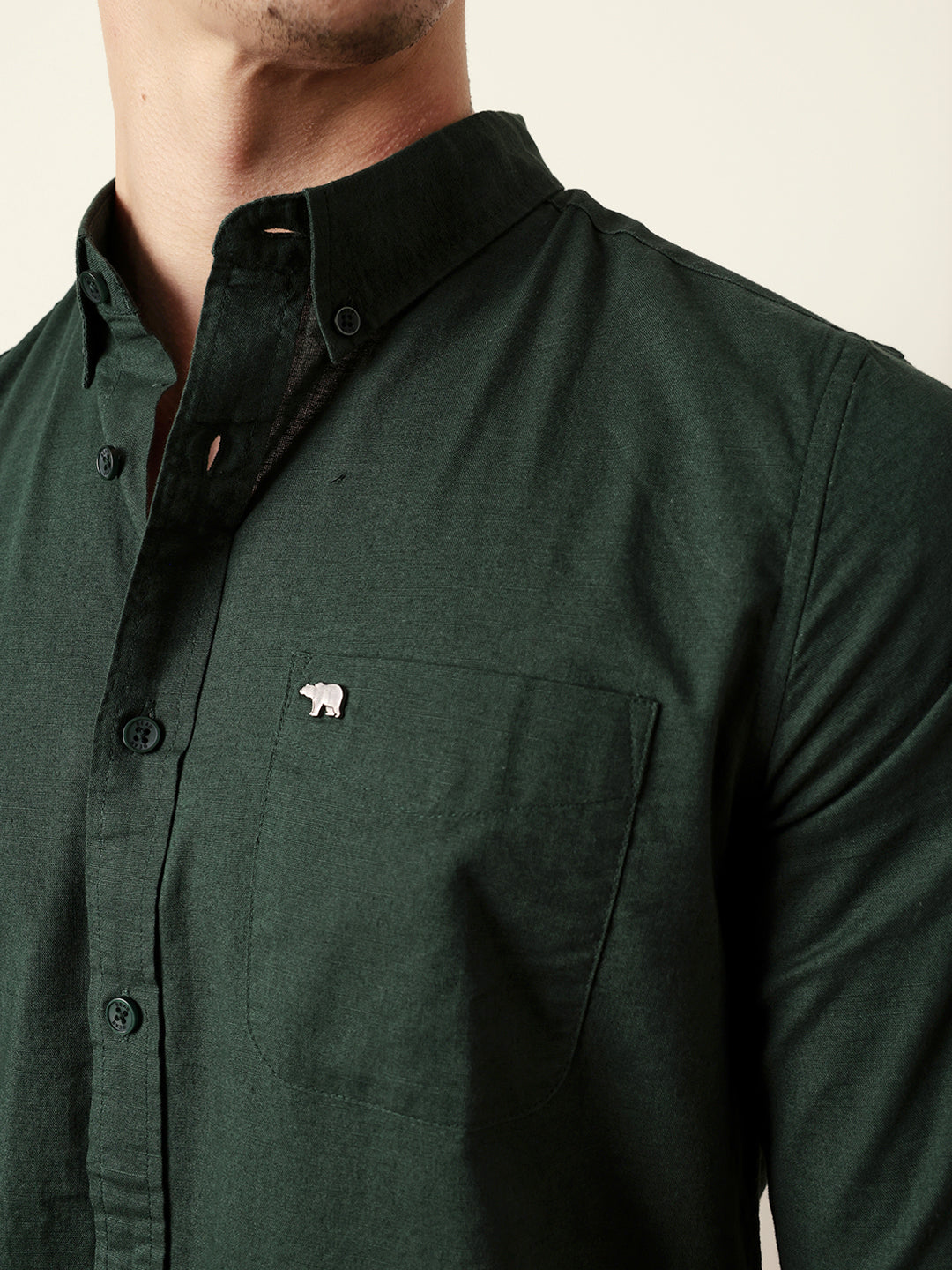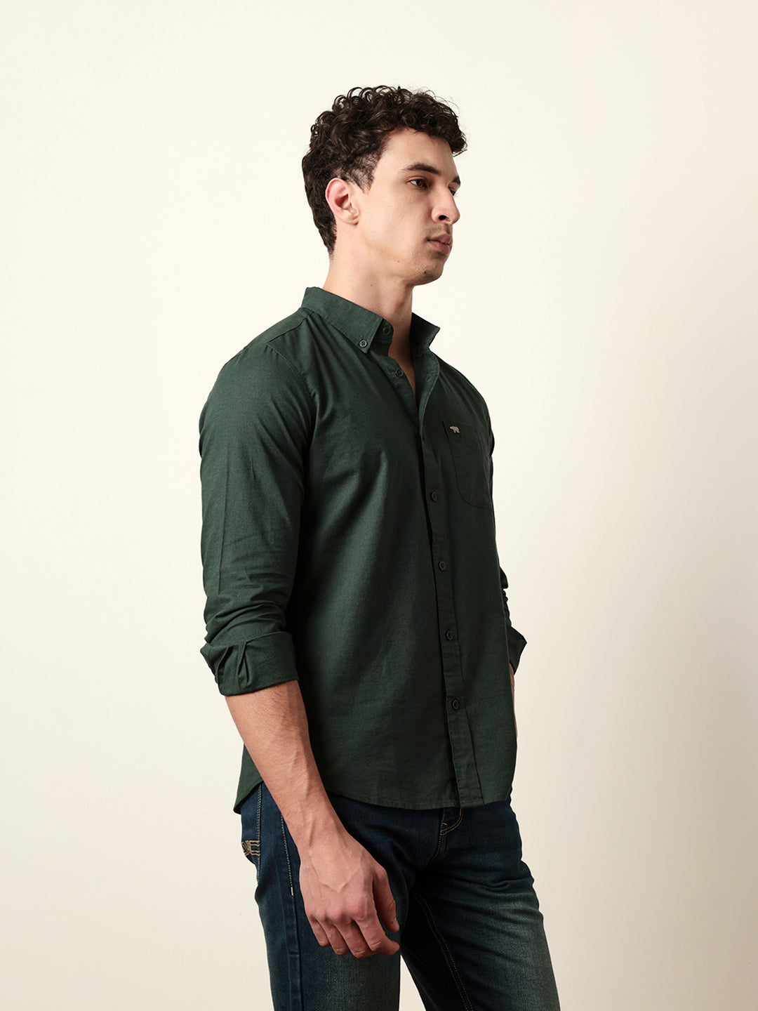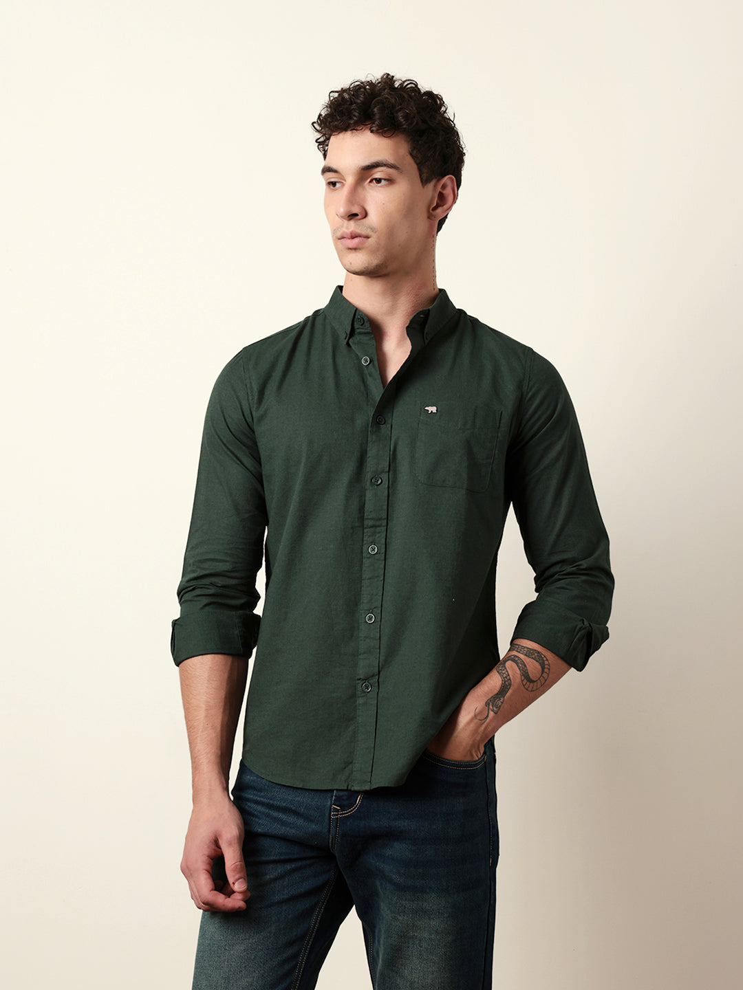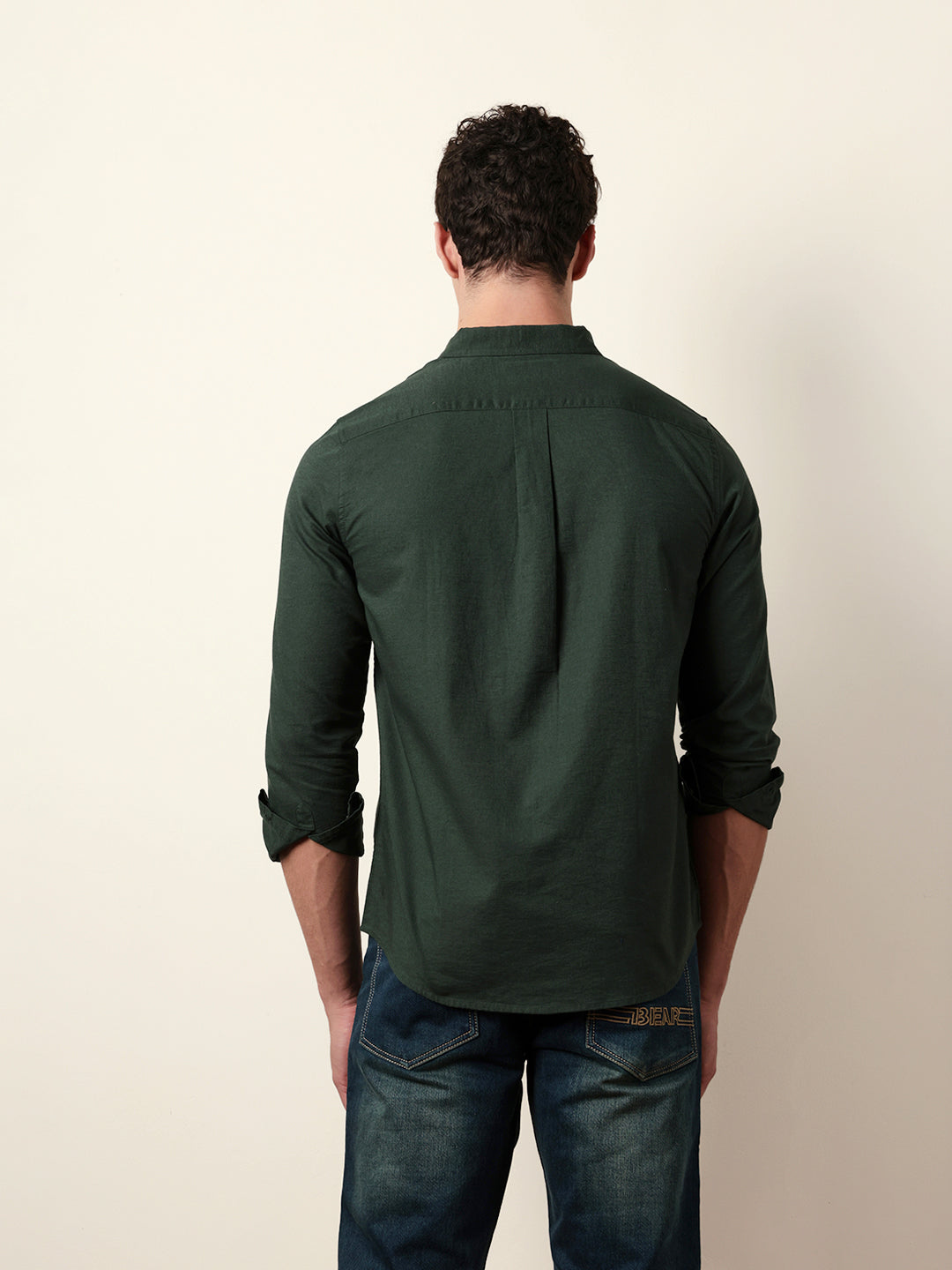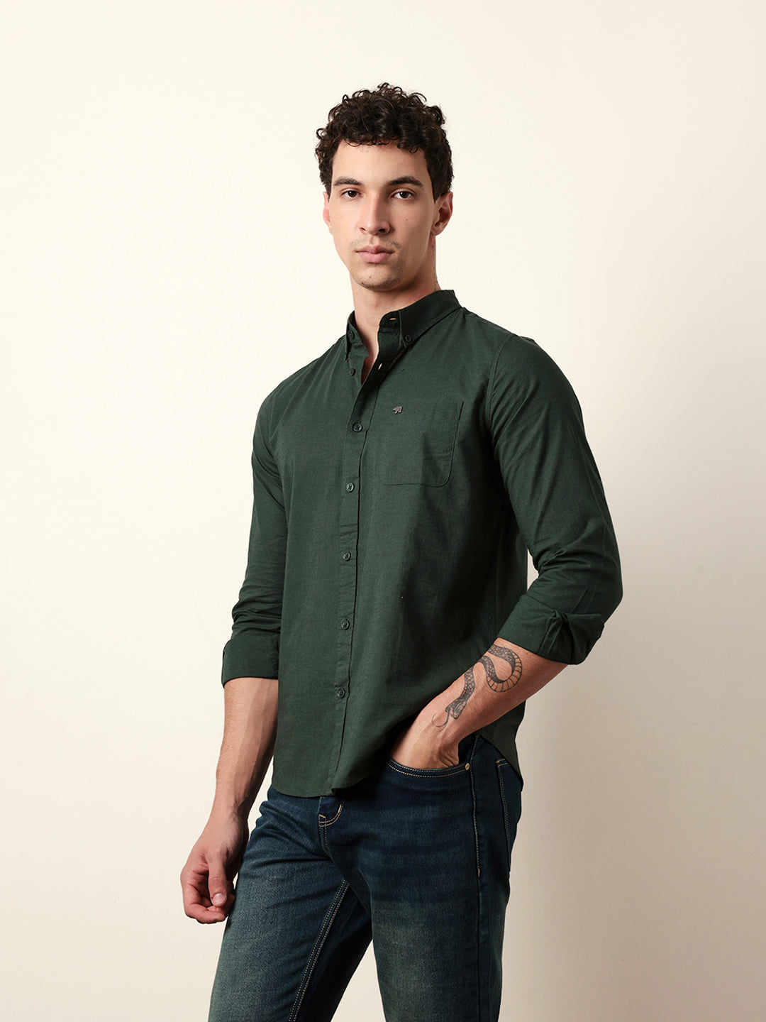 Green Solid Regular Fit Casual Shirt