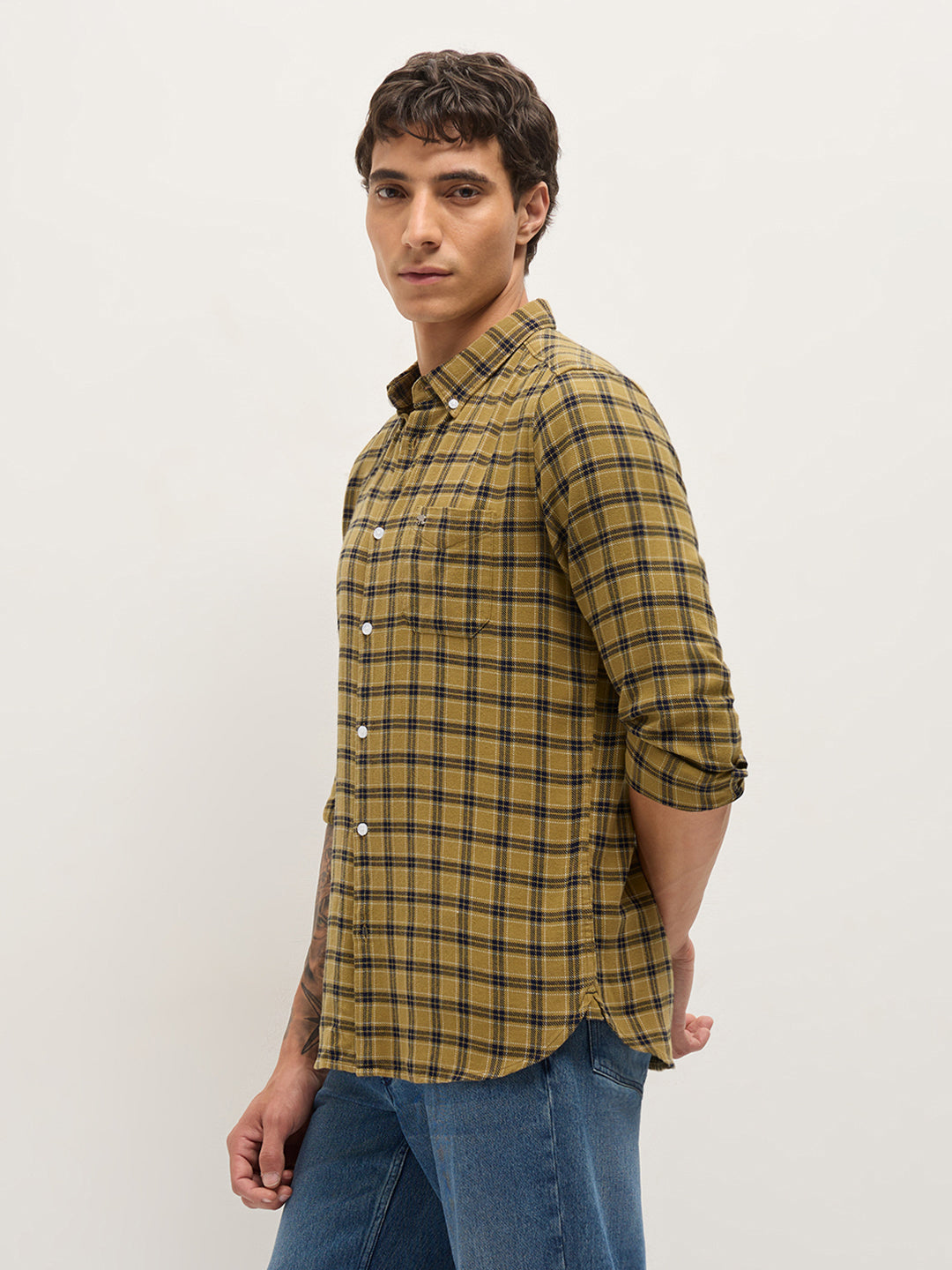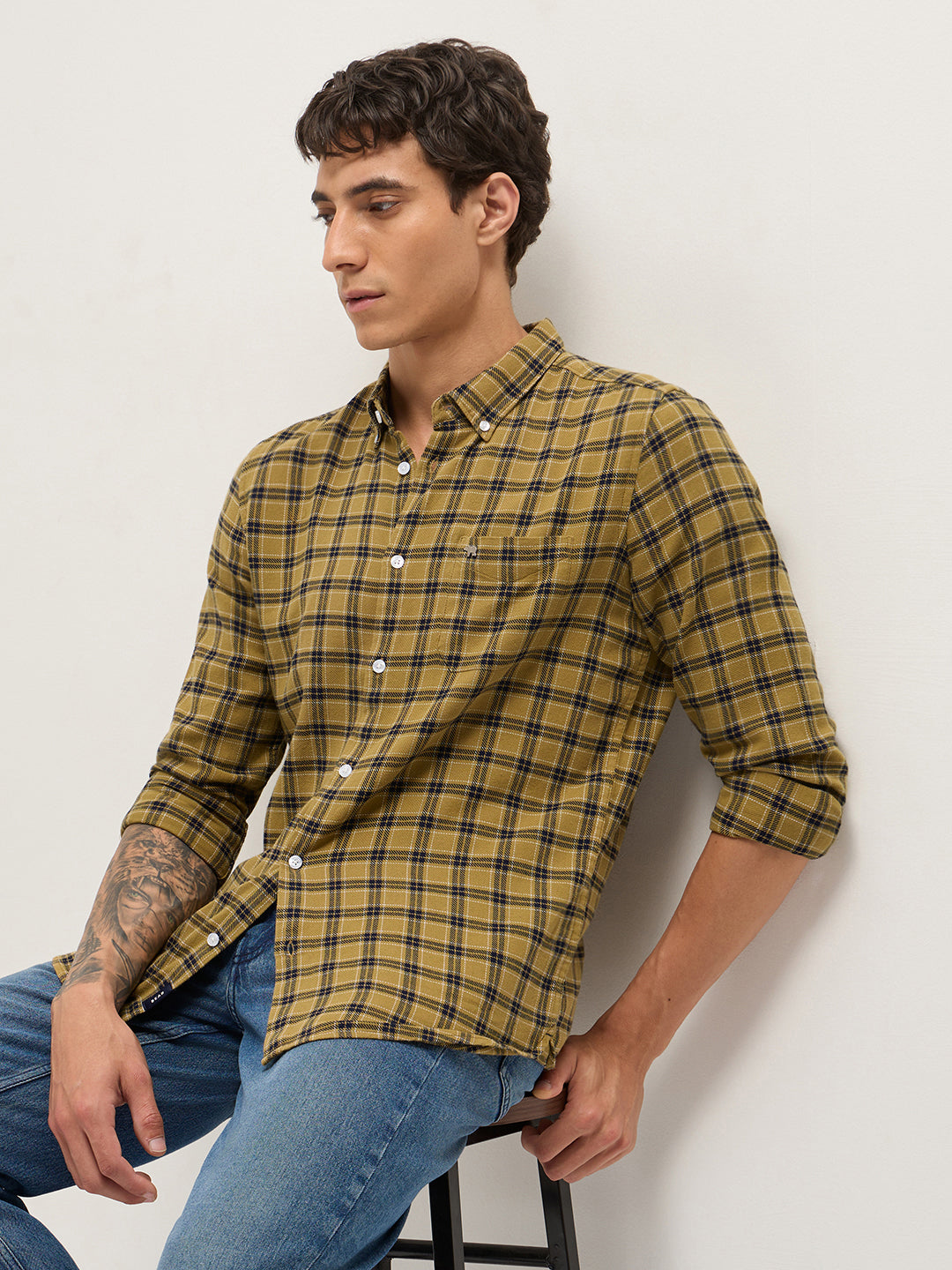 Shop Mustard & Navy Blue Flannel Check Slim Fit Casual Shirt Online. Explore our wide range of men's clothing collections. Free Shipping Hassle-free returns