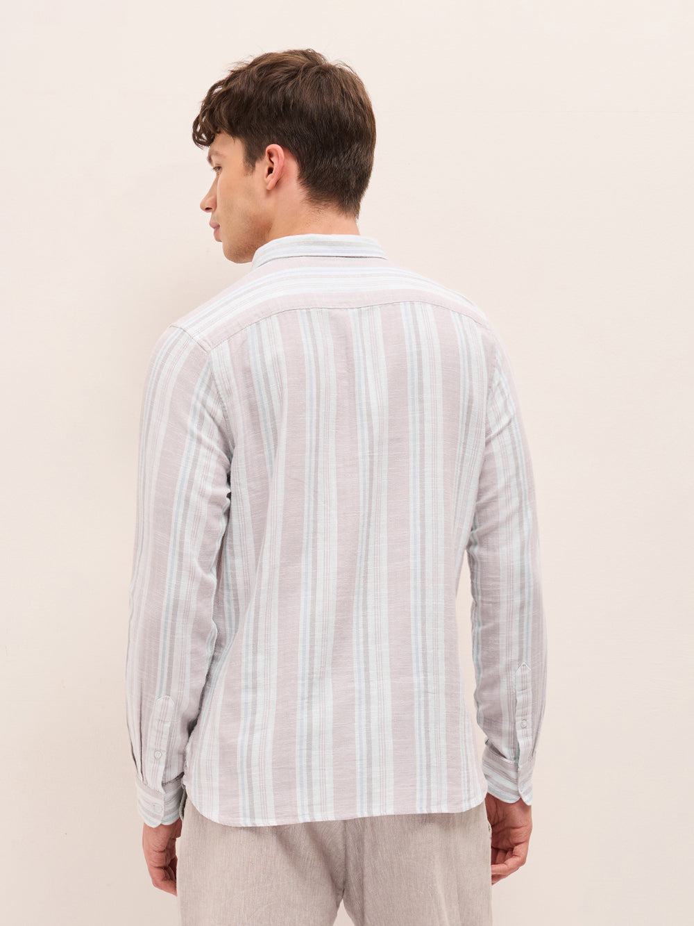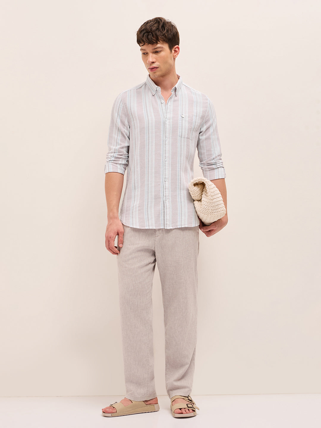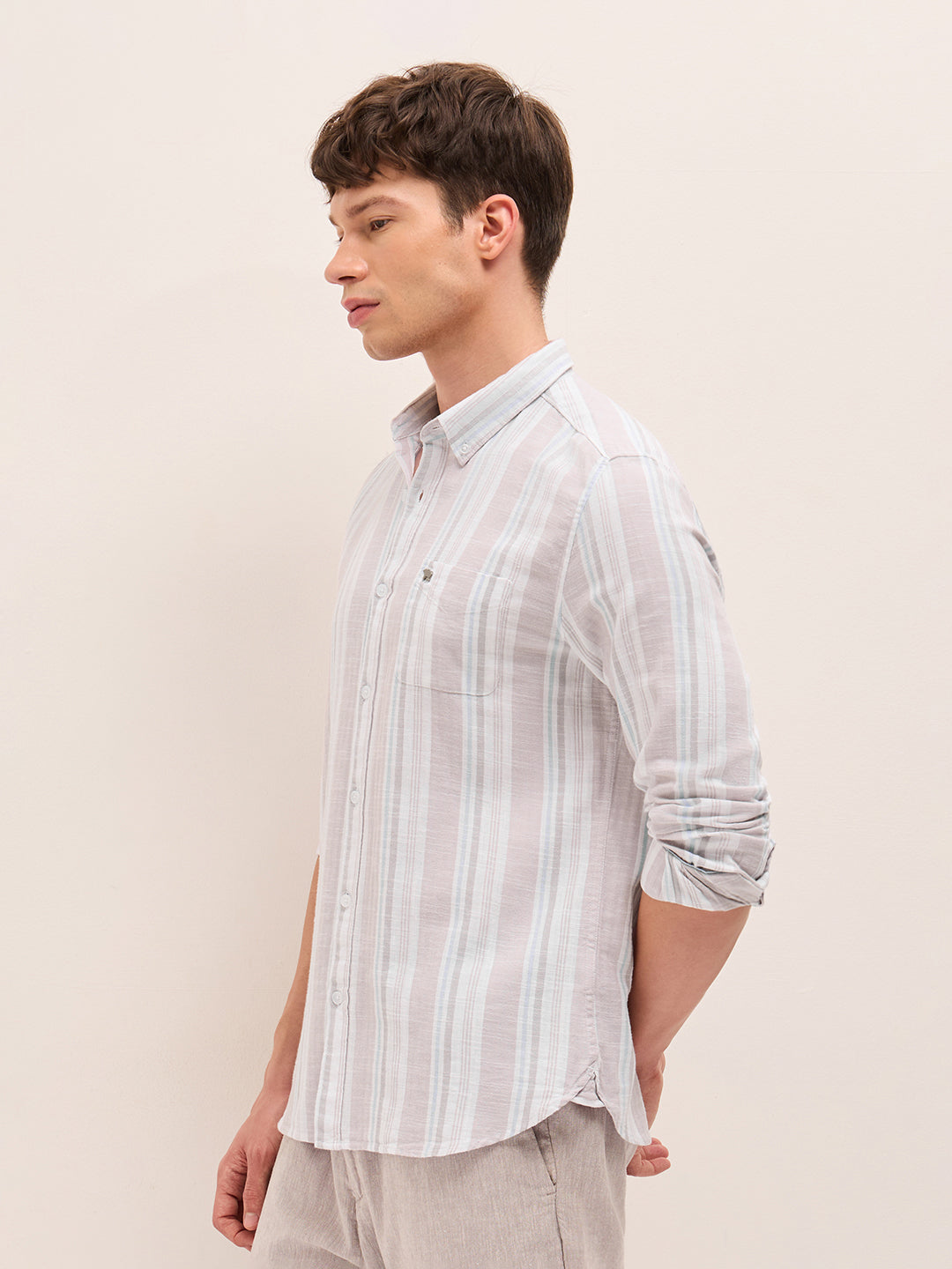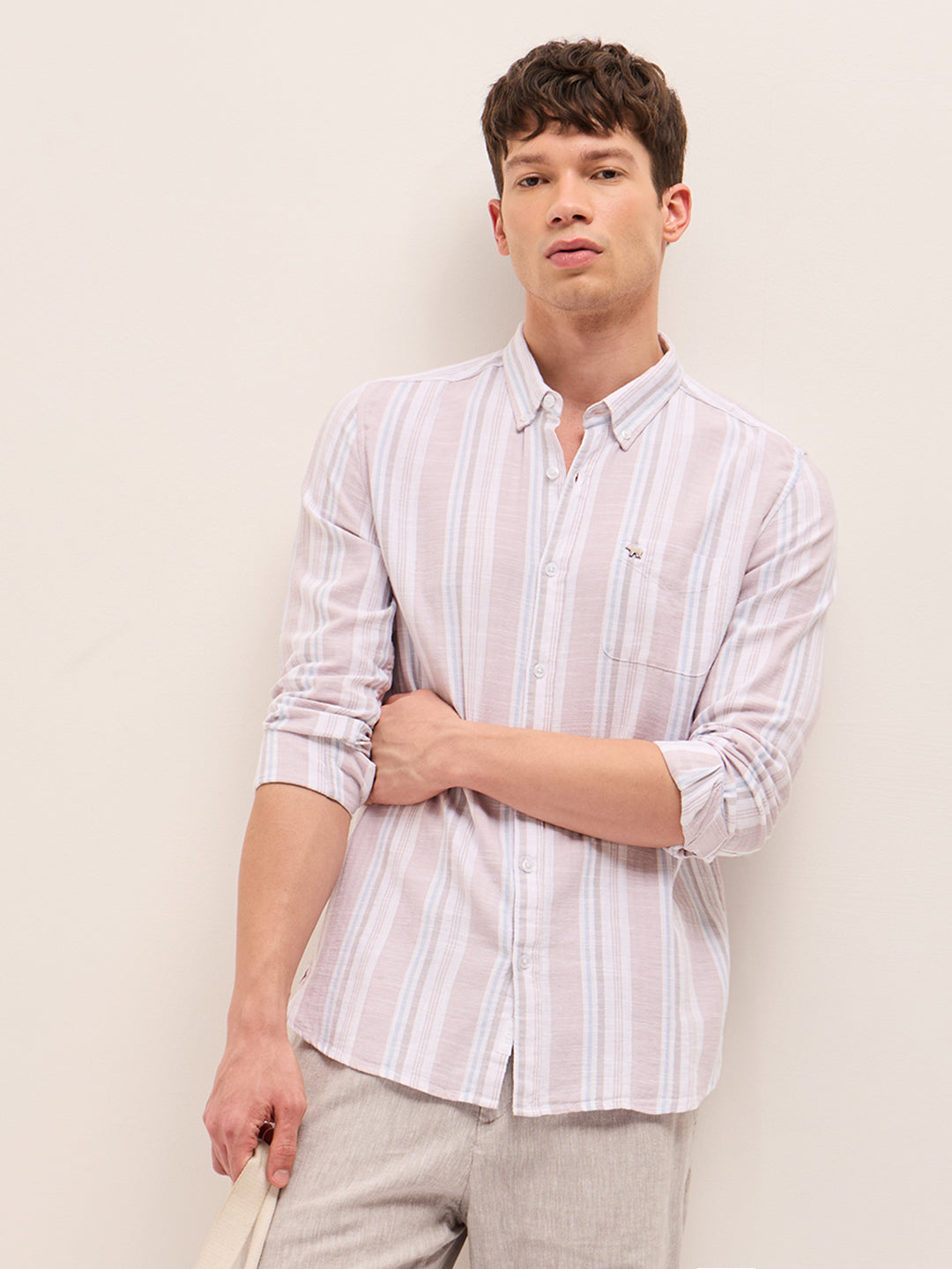 Multicolor Woven Vertical Stripe Slim Fit Casual Shirt