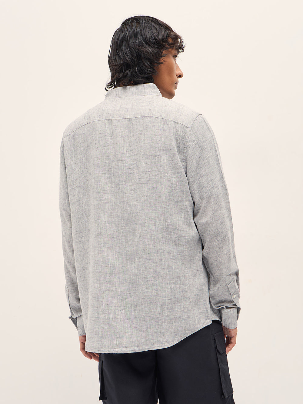 Grey Linen Blend Solid Slim Fit Casual Shirt