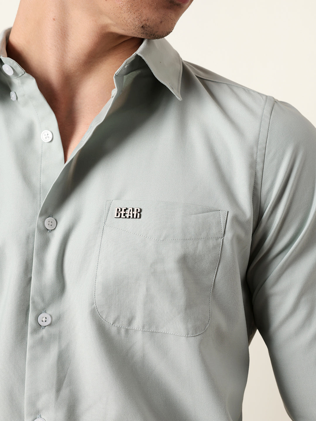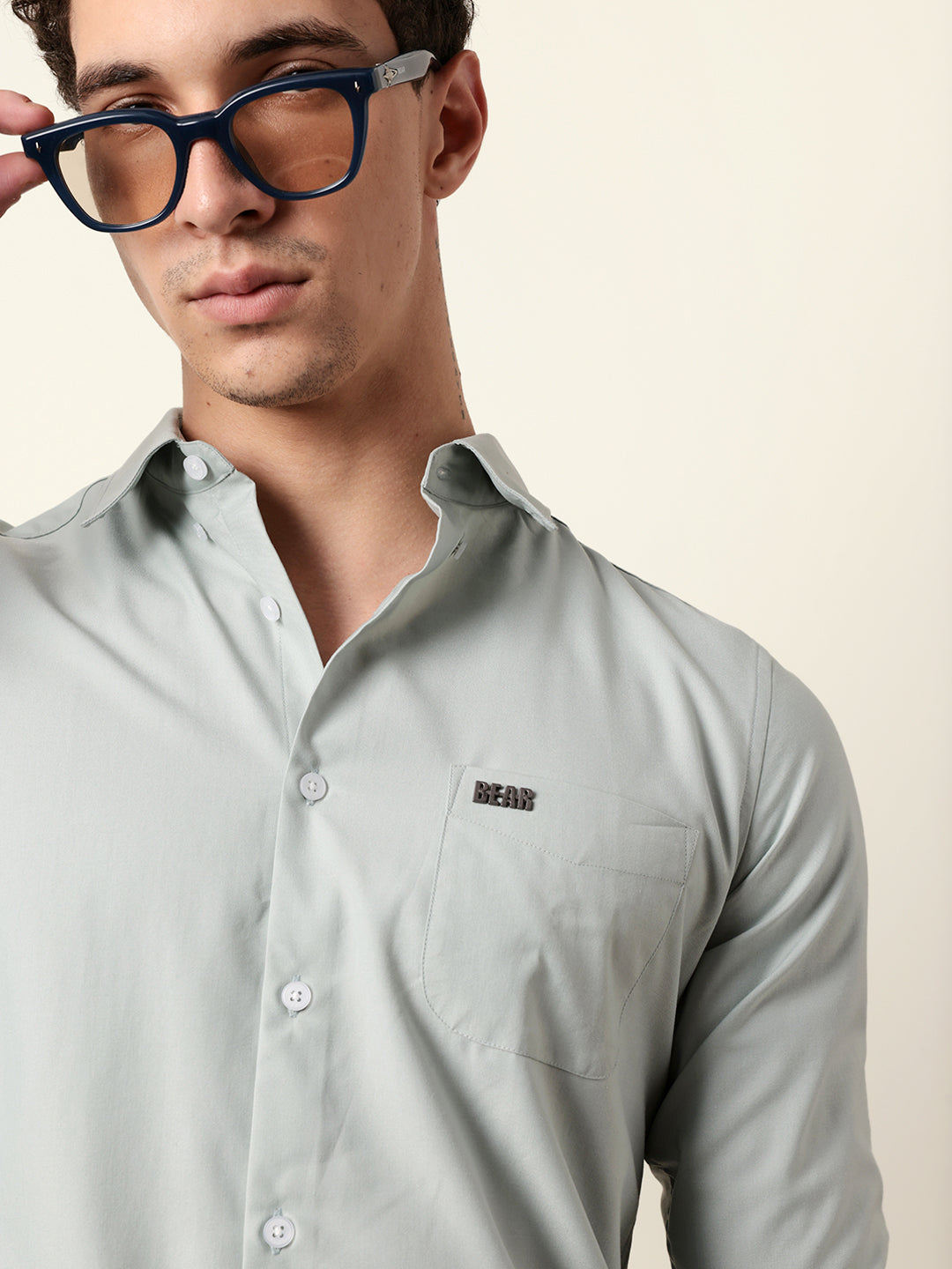 Light Green Solid Slim Fit Casual Shirt with a Classic Semi-Formal Look