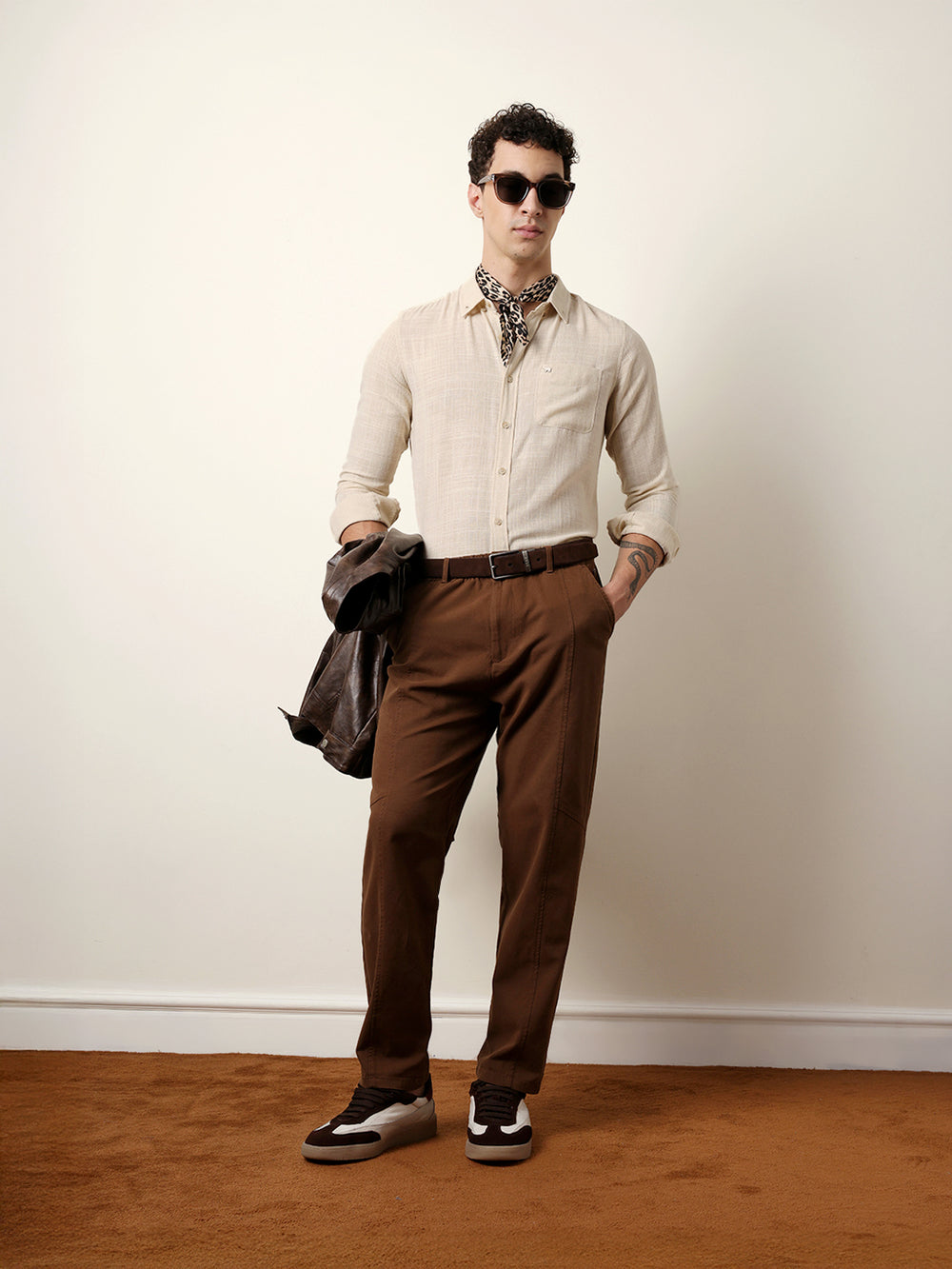Shop Cream Slub-Textured Woven Slim Fit Casual Shirt Online.