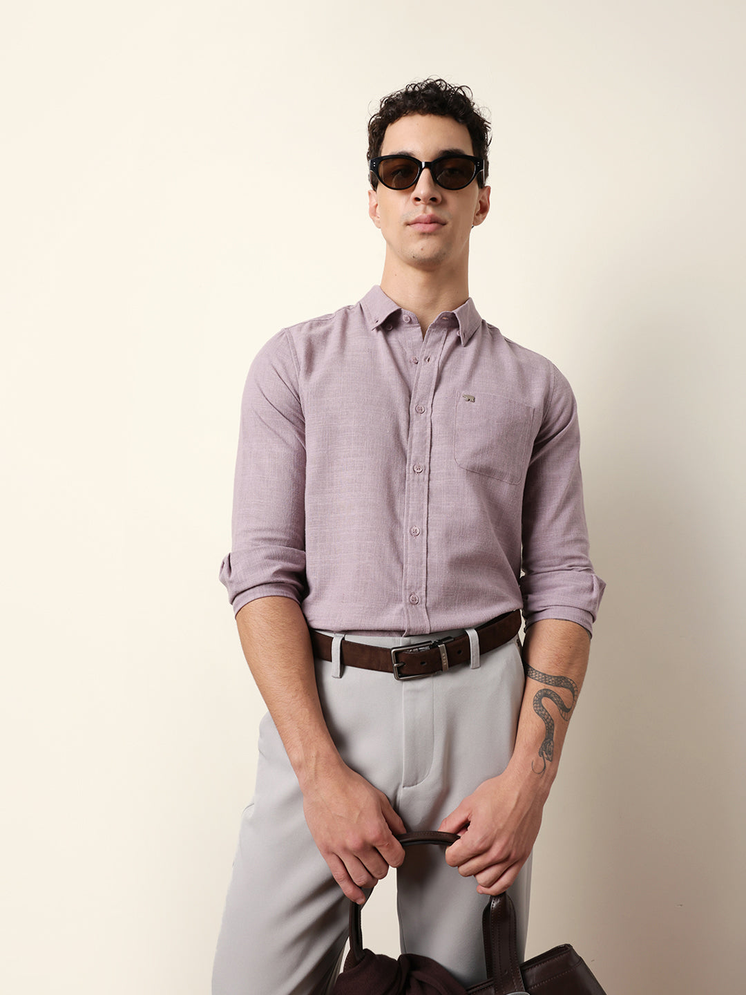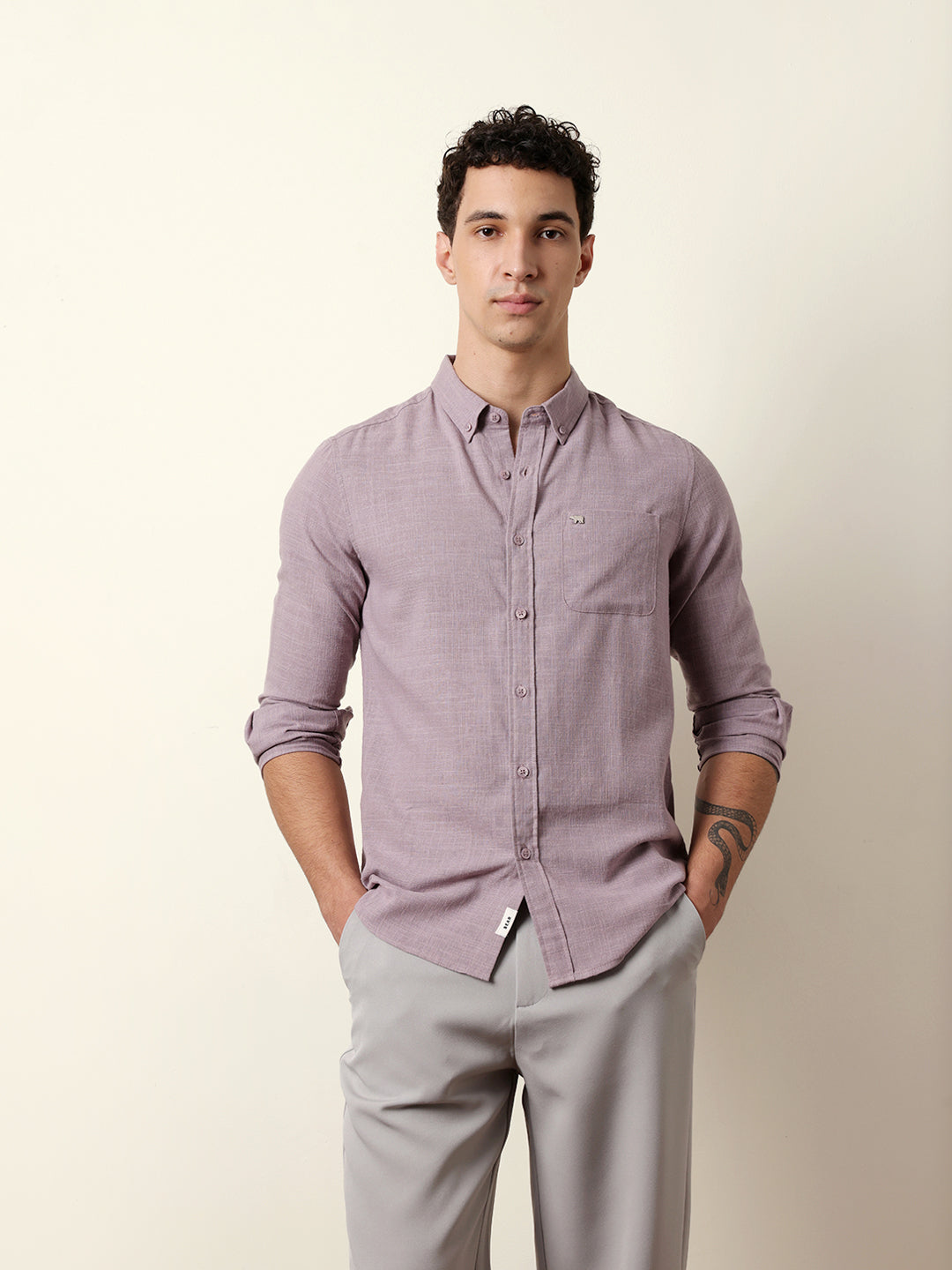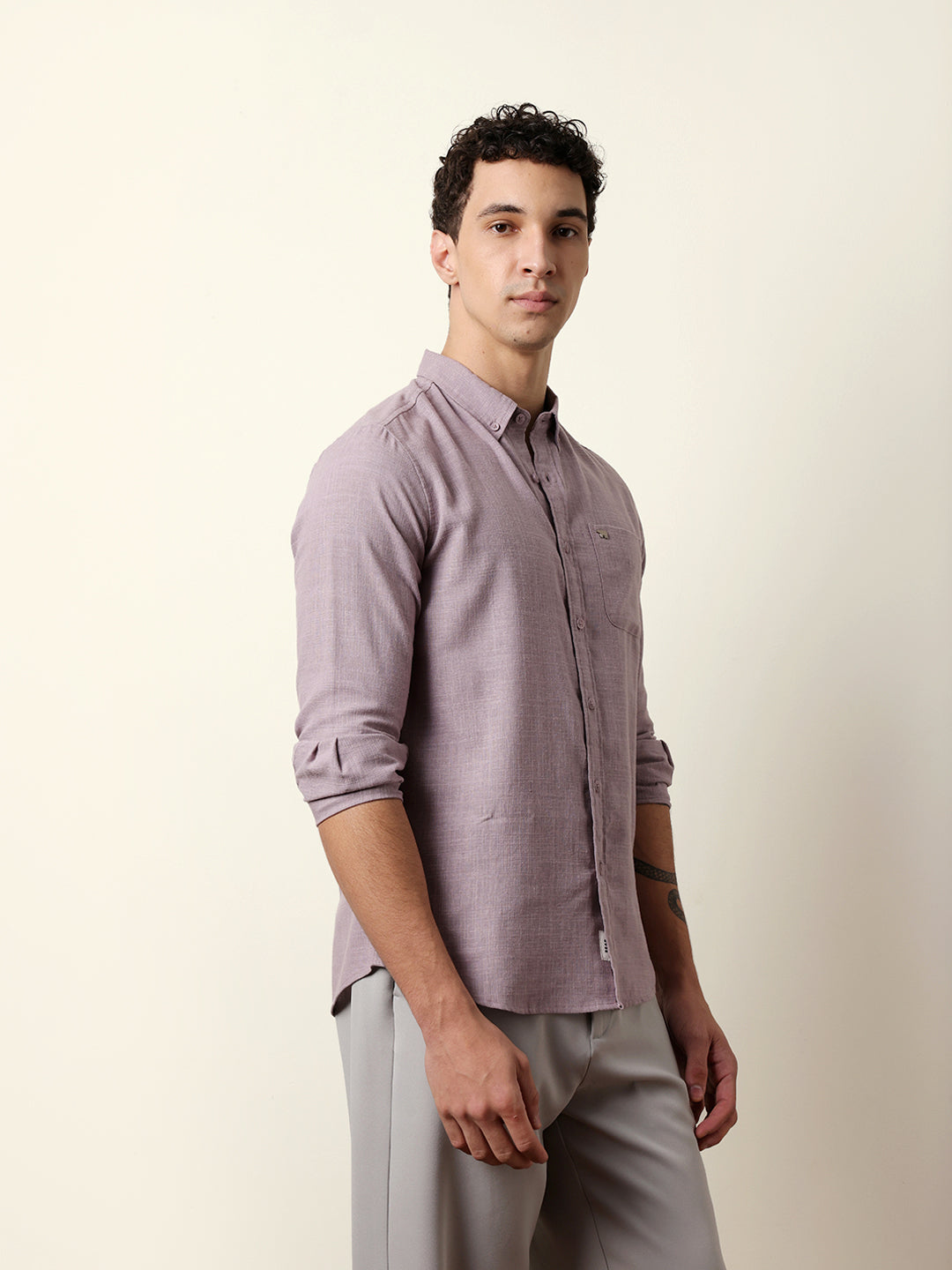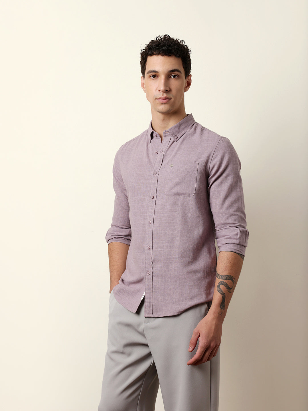 Purple Slub-Textured Woven Slim Fit Casual Shirt