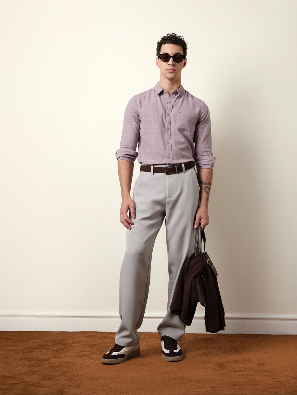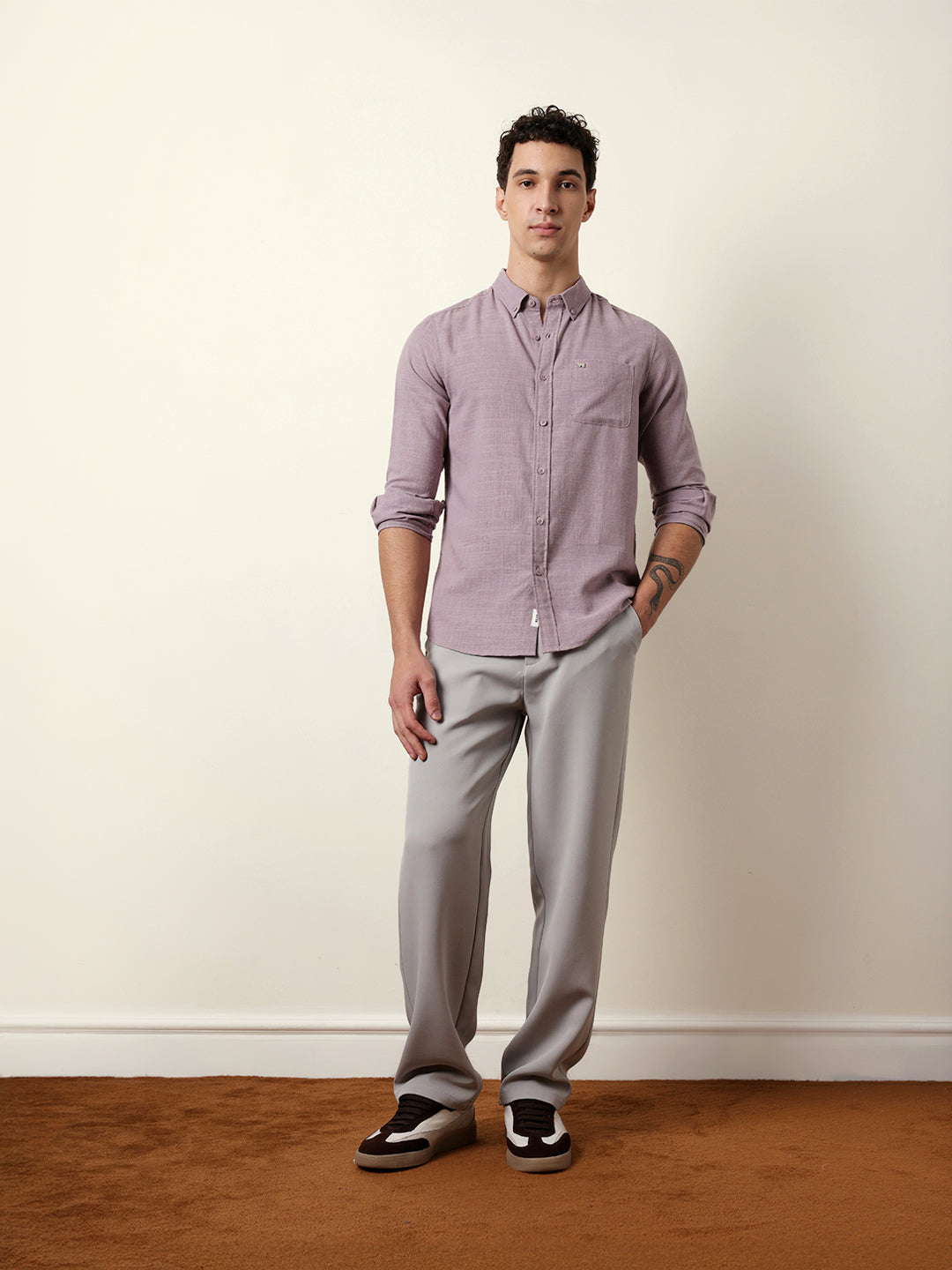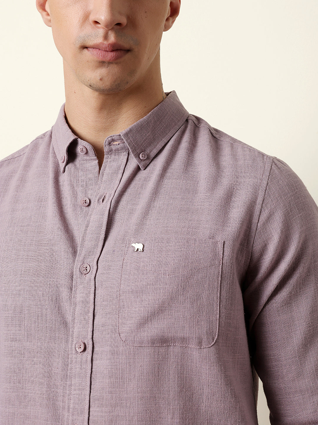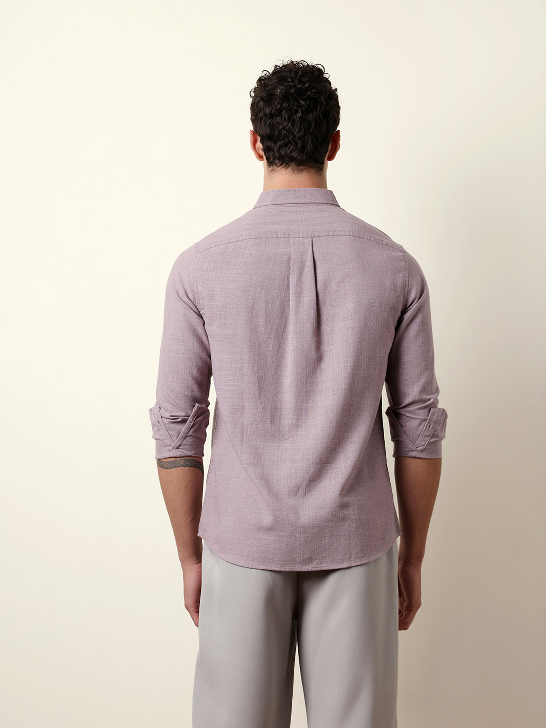 Purple Slub-Textured Woven Slim Fit Casual Shirt