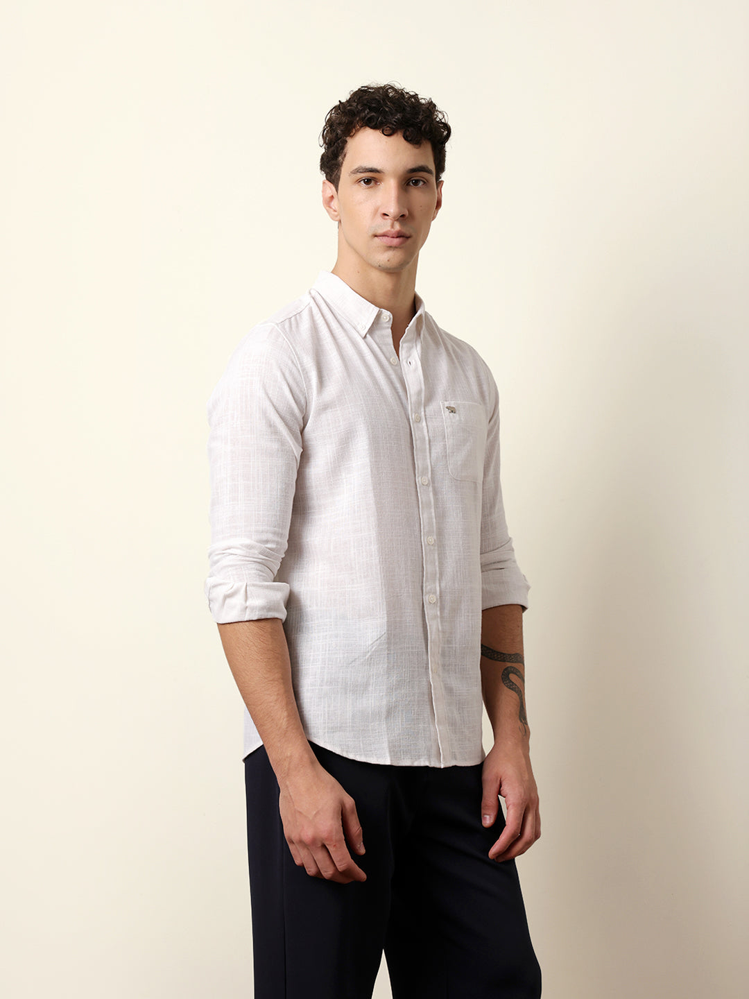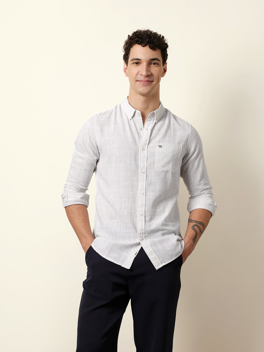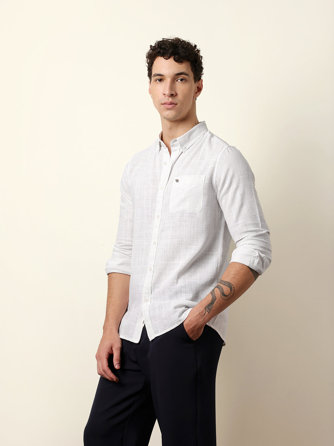 Shop White Slub-Textured Woven Slim Fit Casual Shirt Online.